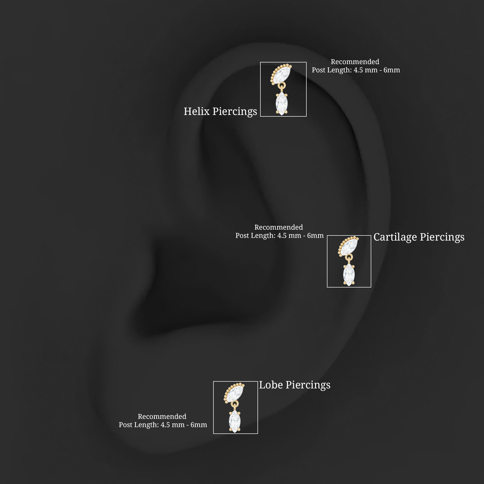 Certified Marquise Diamond Drop Earring for Helix Piercing