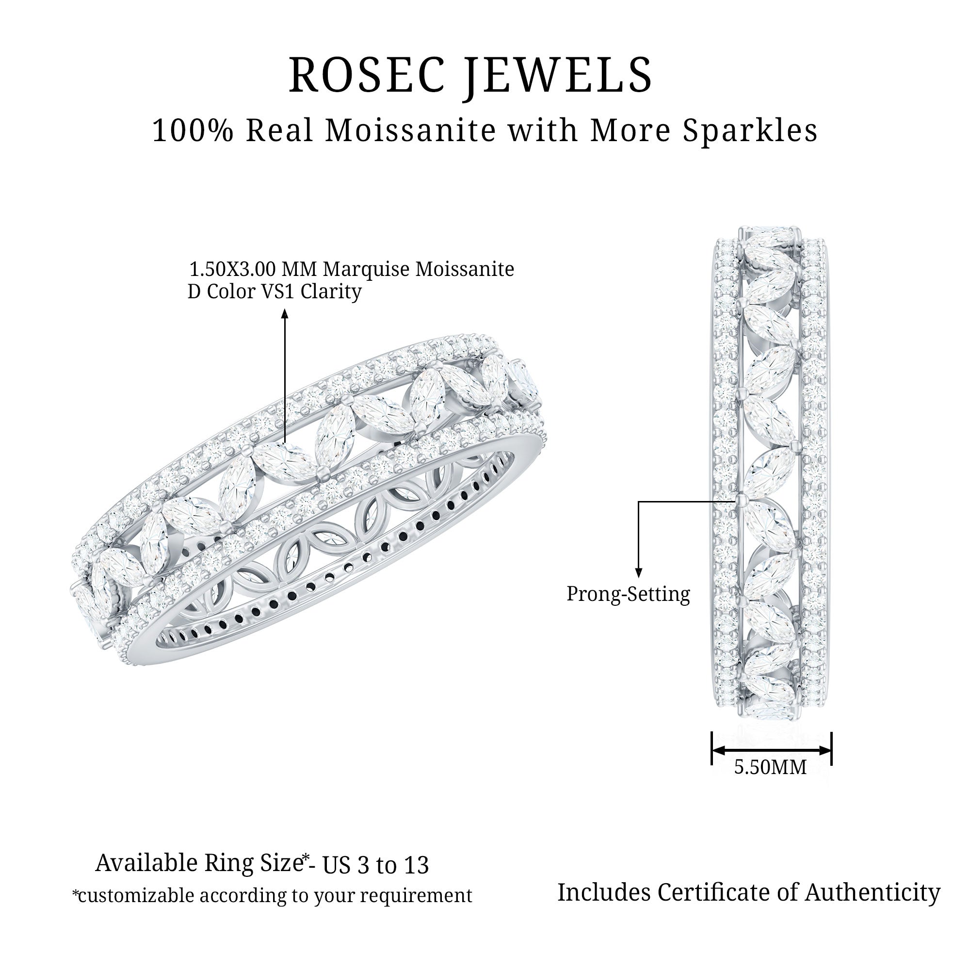 Certified Marquise Moissanite Wedding Band