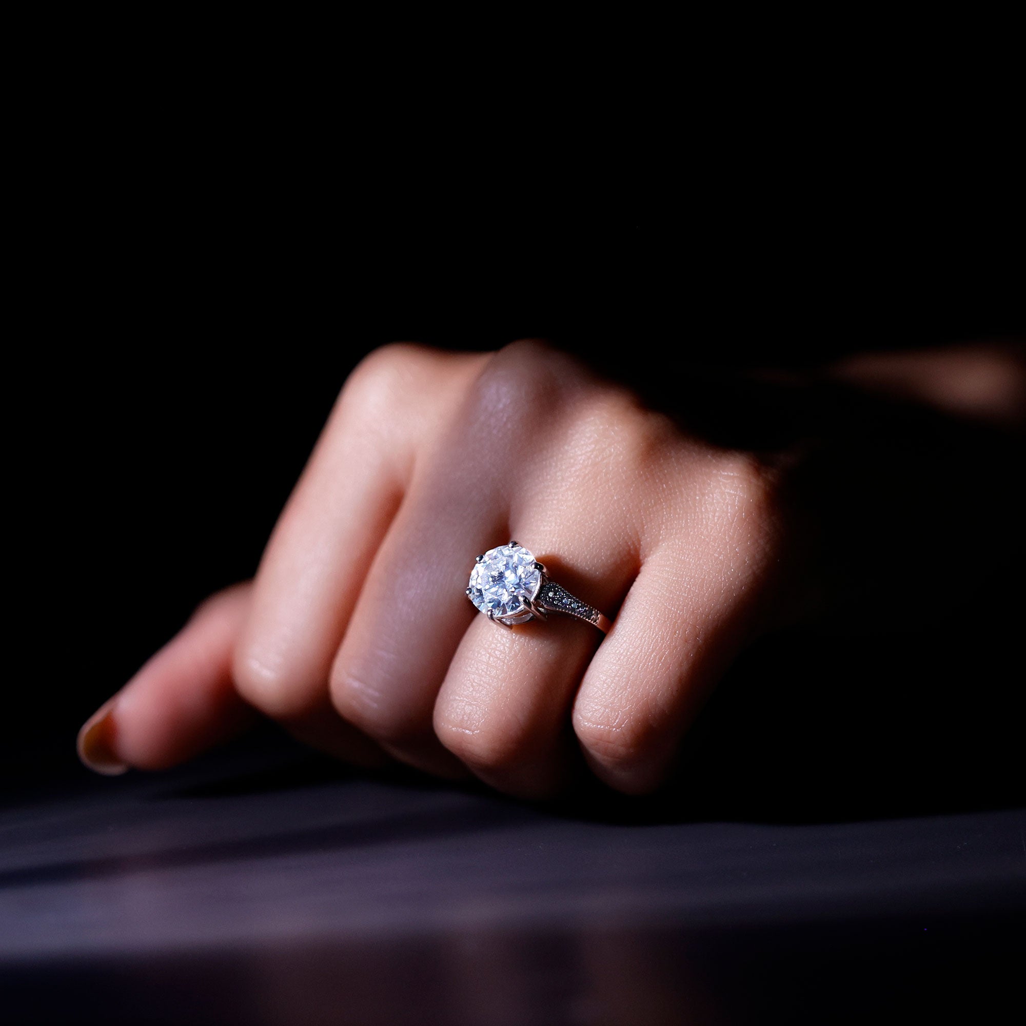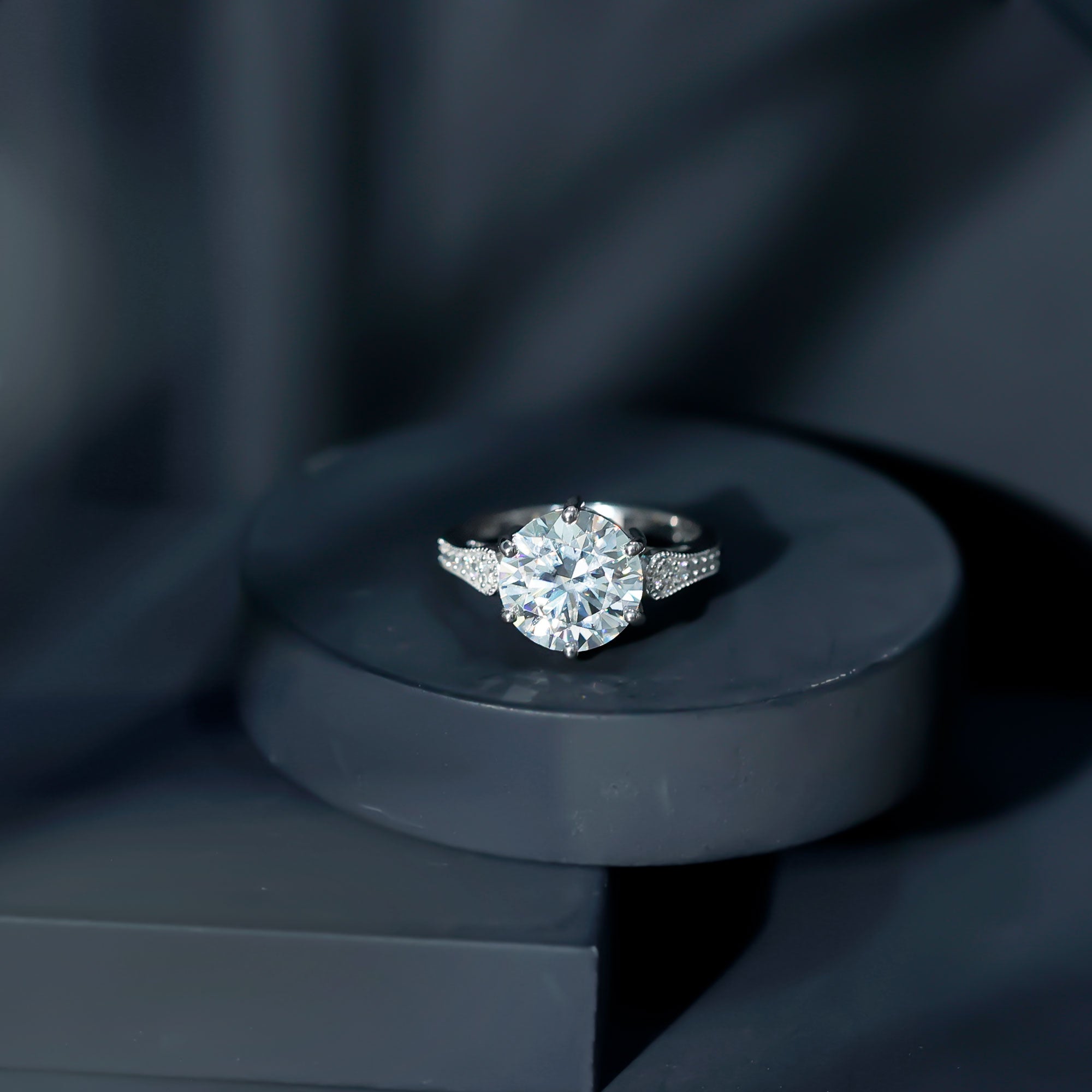 Certified Moissanite 10MM Round Engagement Ring For Women
