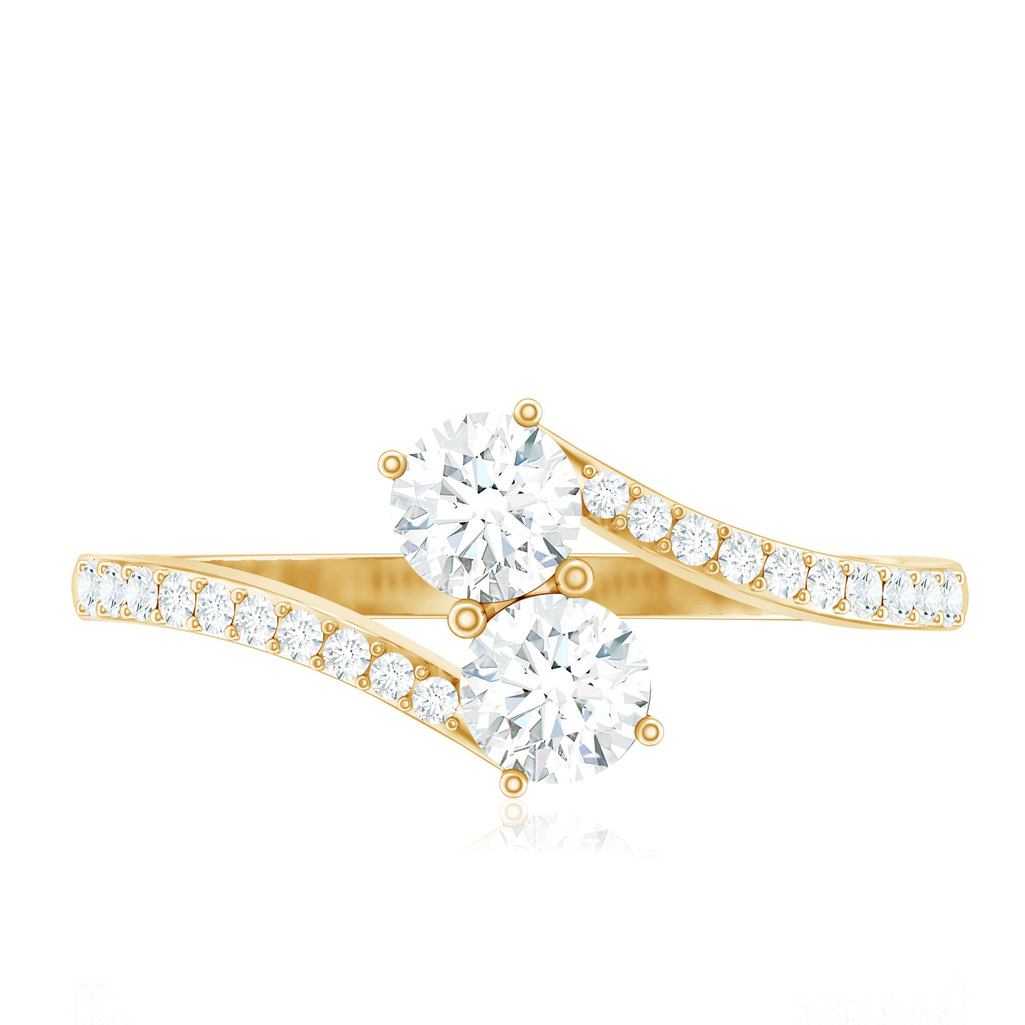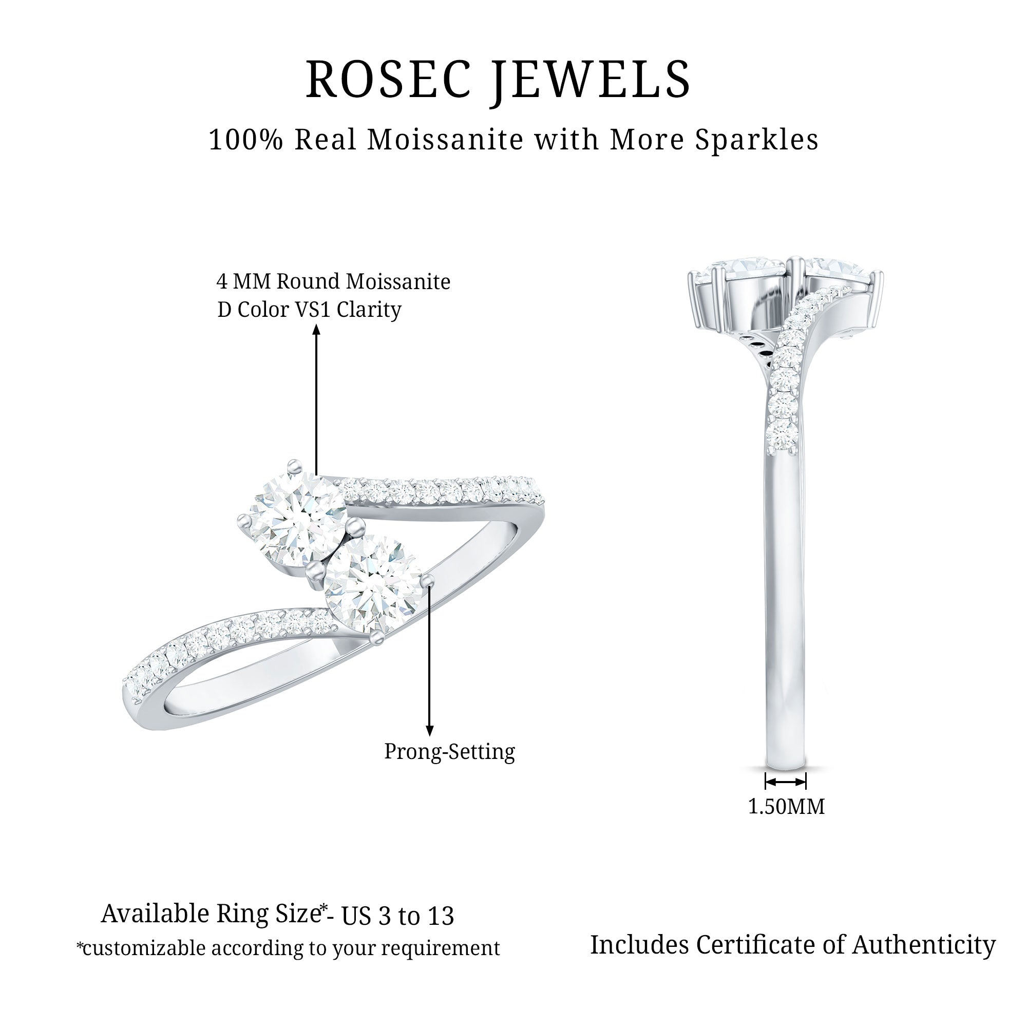 This unique and meaningful Two Stone Promise Ring is a symbol of love and unity. Designed to represent the bond between two people, this elegant Toi Et Moi Ring is a beautiful way to show your love. At the center are two sparkling round moissanite stones, securely held in prong setting. The Moissanite Pre Engagement Ring features a curved bypass band, giving it a sleek, modern feel. Small moissanite stones are carefully set along the shank, adding just the right amount of sparkle and elegance. The smooth curves of the band gently wrap around the center stones, creating a flowing and graceful design that is both romantic and stylish. Crafted with D-VS1 quality moissanite, this Bypass Ring shines brilliantly from every angle, offering a luxurious look while being ethical and budget-friendly. With its minimalist beauty and thoughtful design, it is perfect for the modern bride who appreciates simplicity with meaning. It beautifully represents the love, unity, and promise you share. Available in multiple metal options and ring sizes, it also comes in a stylish jewelry box, ready to make your big moment unforgettable.