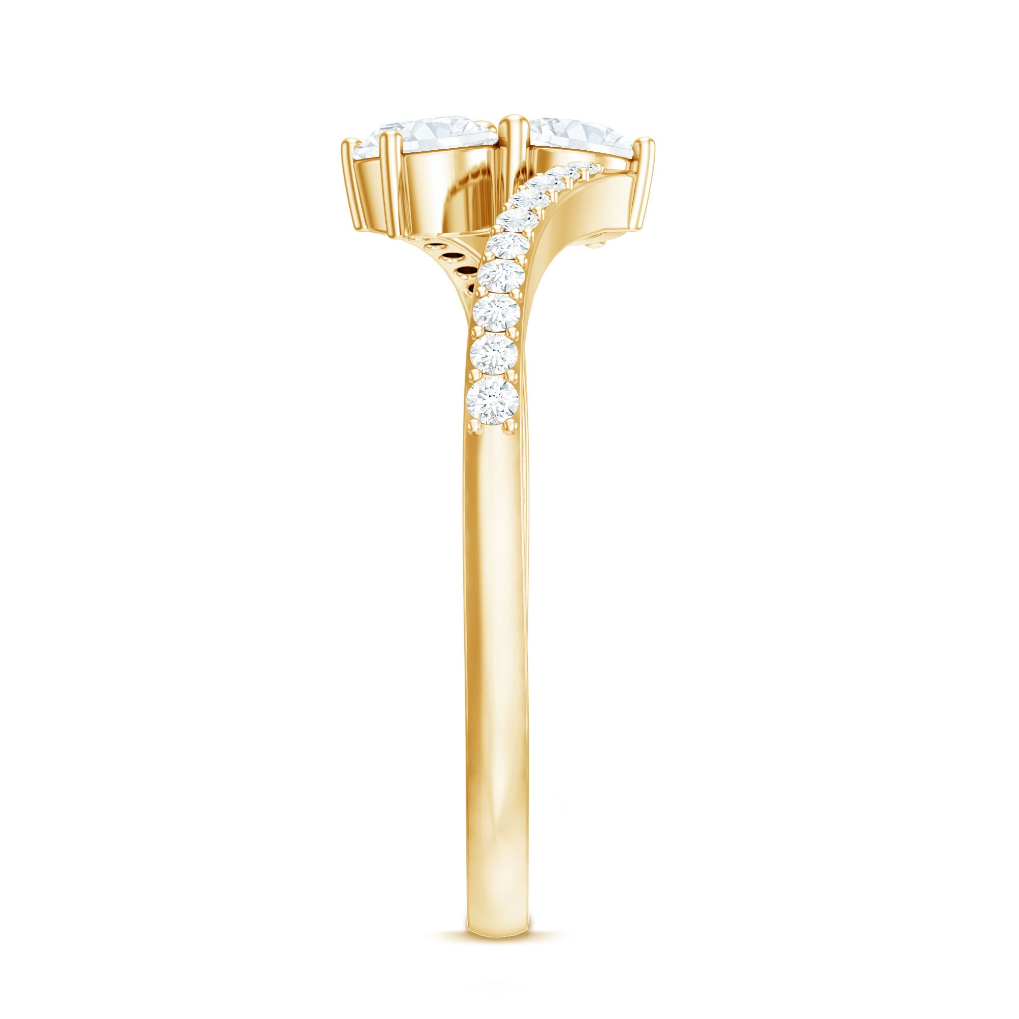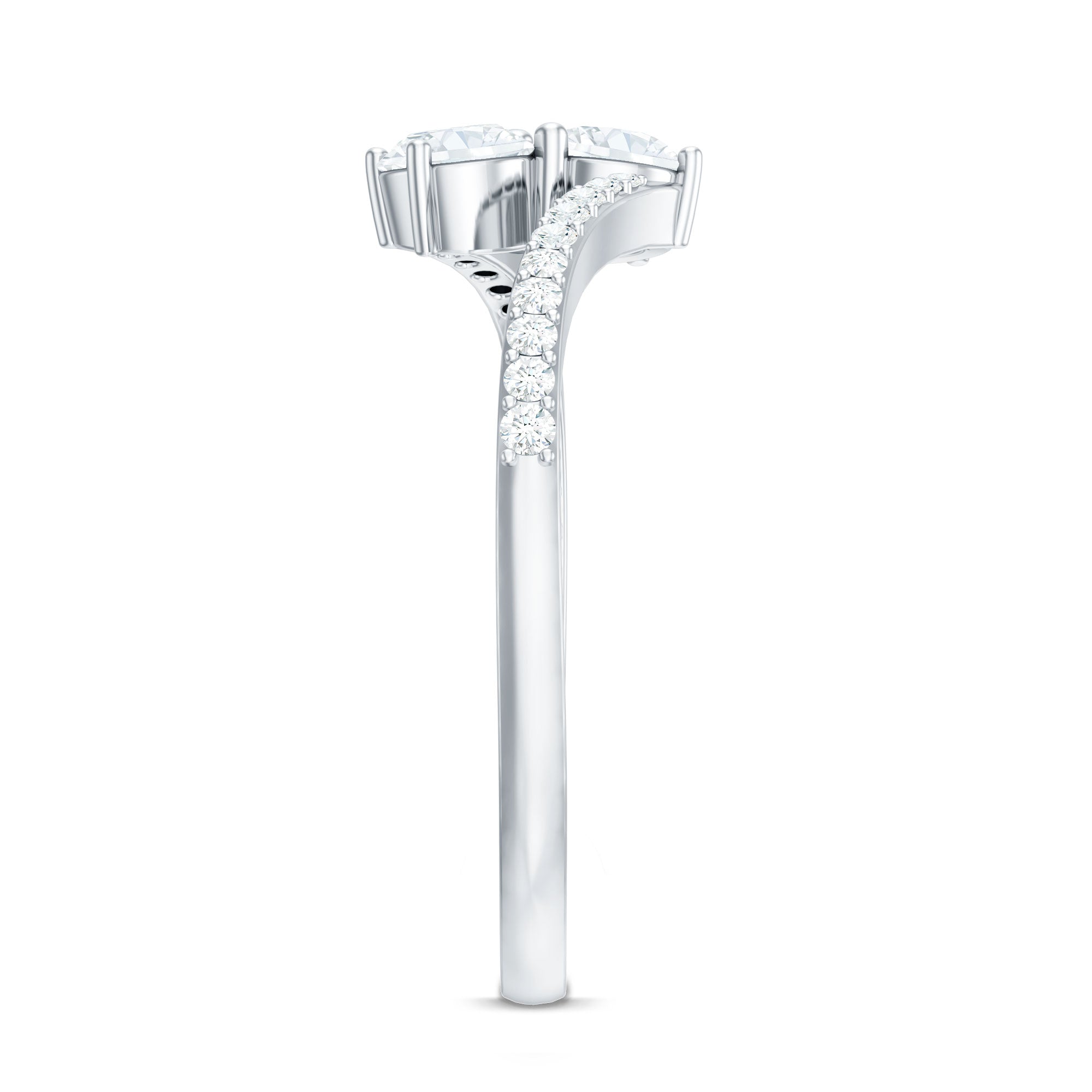 Certified Moissanite 2 Stone Promise Ring in Bypass Shank