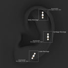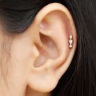 The Moissanite Three Stone Tragus Earring is designed to upgrade your overall look. Crafted with Metal, this piercing earring features a Pear Shaped Moissanite, and two Round Cut Moissanites secured in Prong Setting. It can be worn on your Helix, Tragus, Cartilage, or Upper Lobe Piercing.