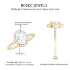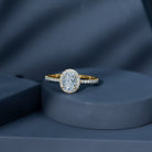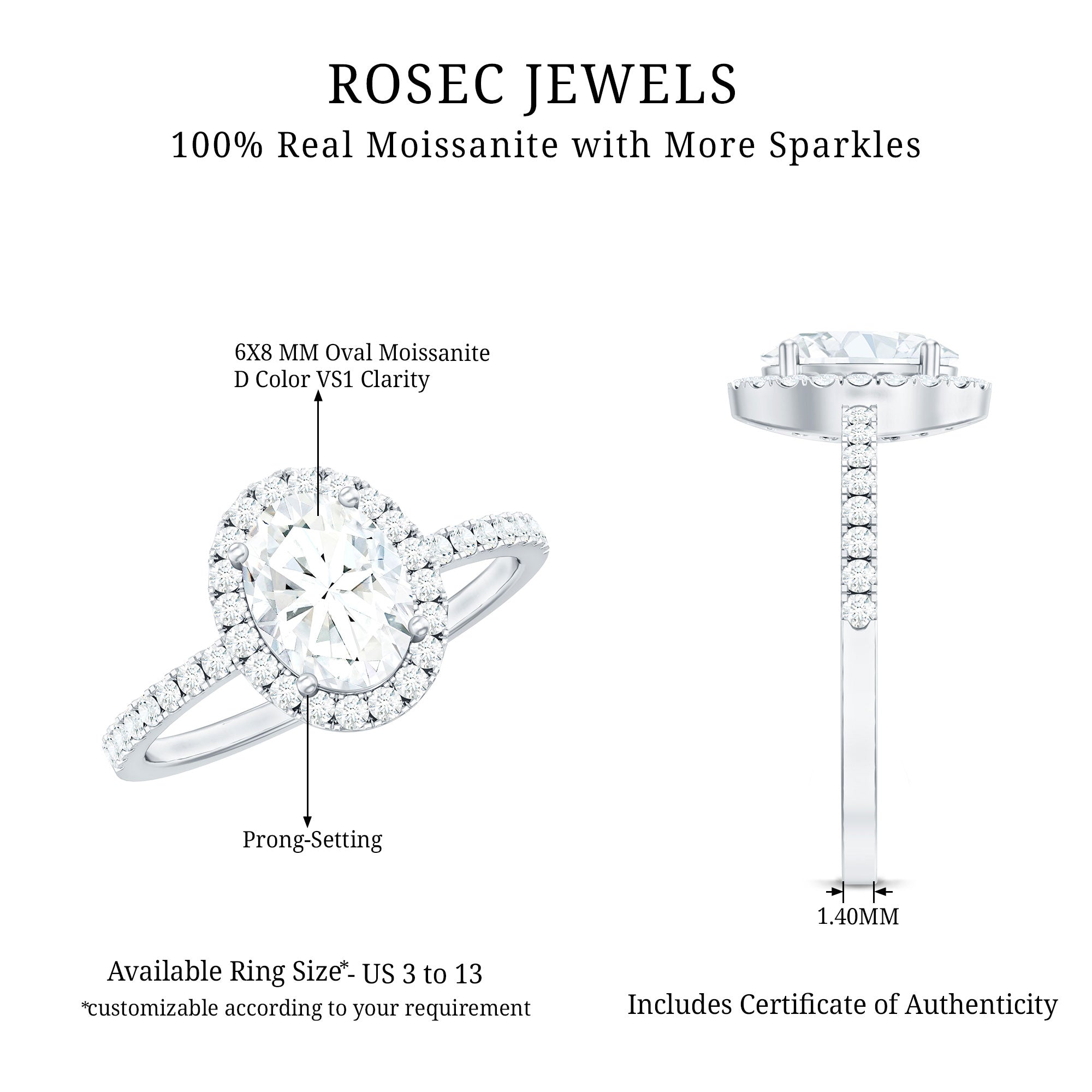 Capturing the allure, this Oval Shape Moissanite Engagement Ring is a testament to timeless beauty. The 6X8 MM Oval Shape Moissanite center stone of 1 carat is embraced by a glittering Halo, creating an enchanting radiance. The D-VS1 Quality Moissanite is secured in Prong Setting which increases the allure of the ring. This Halo Engagement Ring is the ideal choice for those looking for an enduring symbol of love. This Oval Engagement Ring will always remind her about the symphony of love and the elegance of relationships.