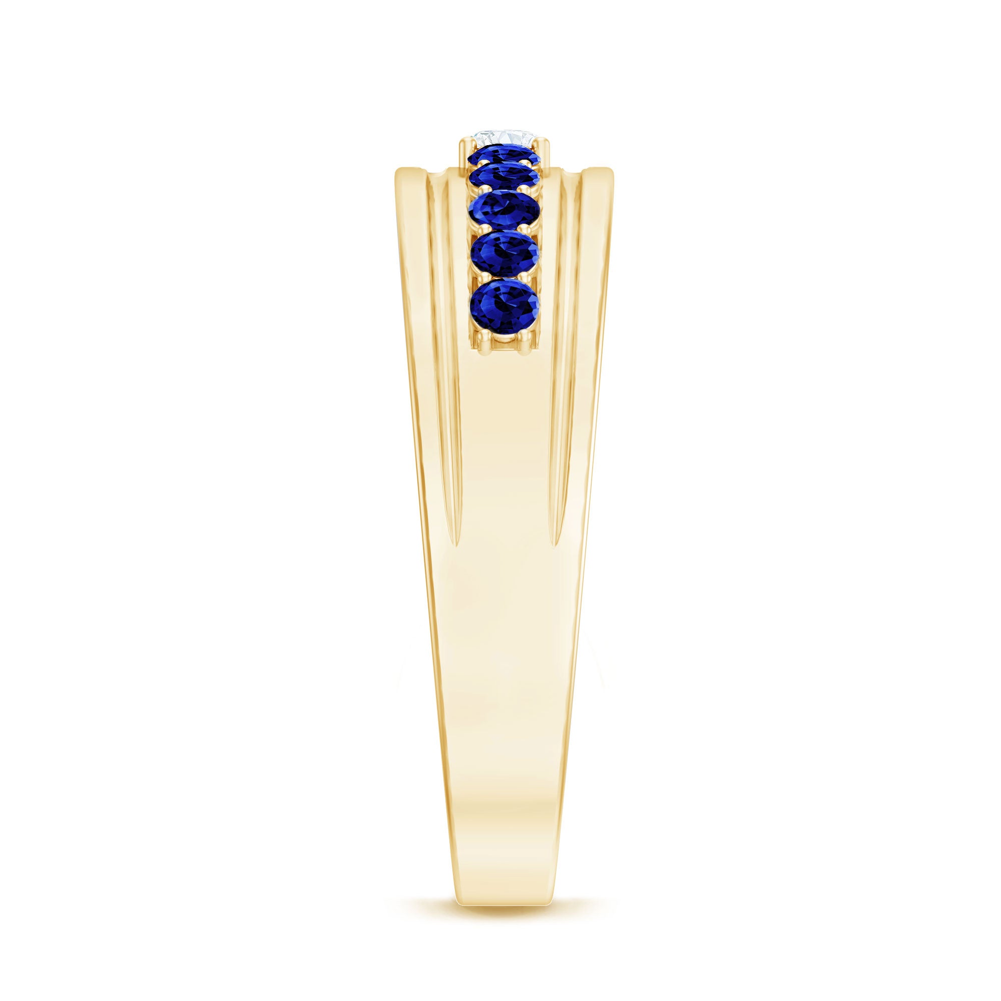 Certified Moissanite and Lab Created Blue Sapphire Anniversary Band