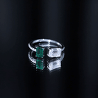 Celebrate the union with your lover with this Emerald Moissanite Ring, crafted with 14K White Gold Plated Silver for your big day. The ring features a 7X5 MM Emerald Cut Lab Grown Emerald and a 4X6 MM Emerald Cut Moissanite securely placed in Prong Setting. This Two Stone Engagement Ring is adorned with smaller Moissanite. This Toi et Moi Ring beholds the classic shine of D-VS1 Quality Moissanite and AAAA Quality Lab Created Emerald. This ring is the symbol of the union of two distinct personalities coming together for love, and that makes a perfect symbol to celebrate the big day with your special one.