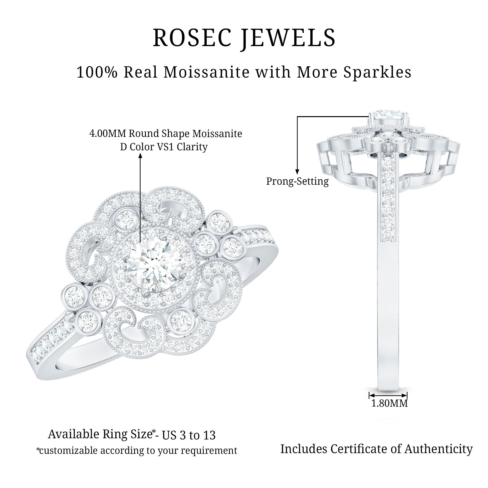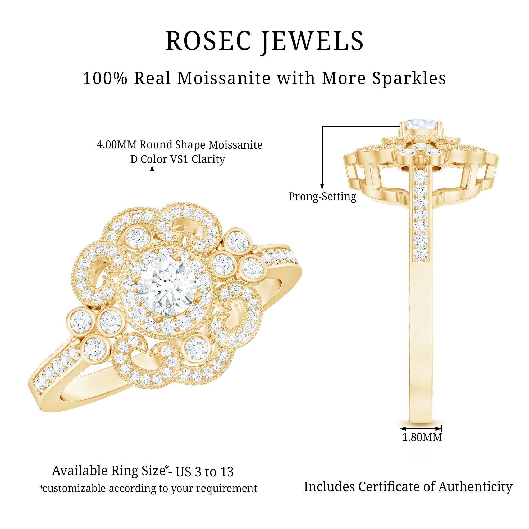 Certified Moissanite Antique Looking Engagement Ring for Women