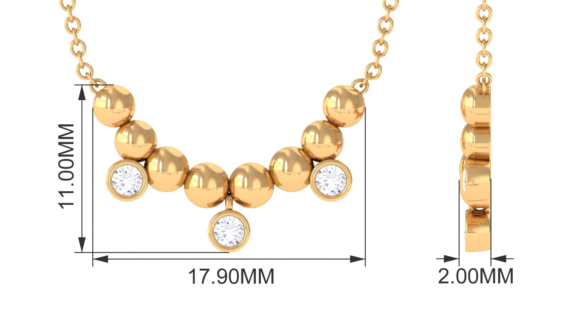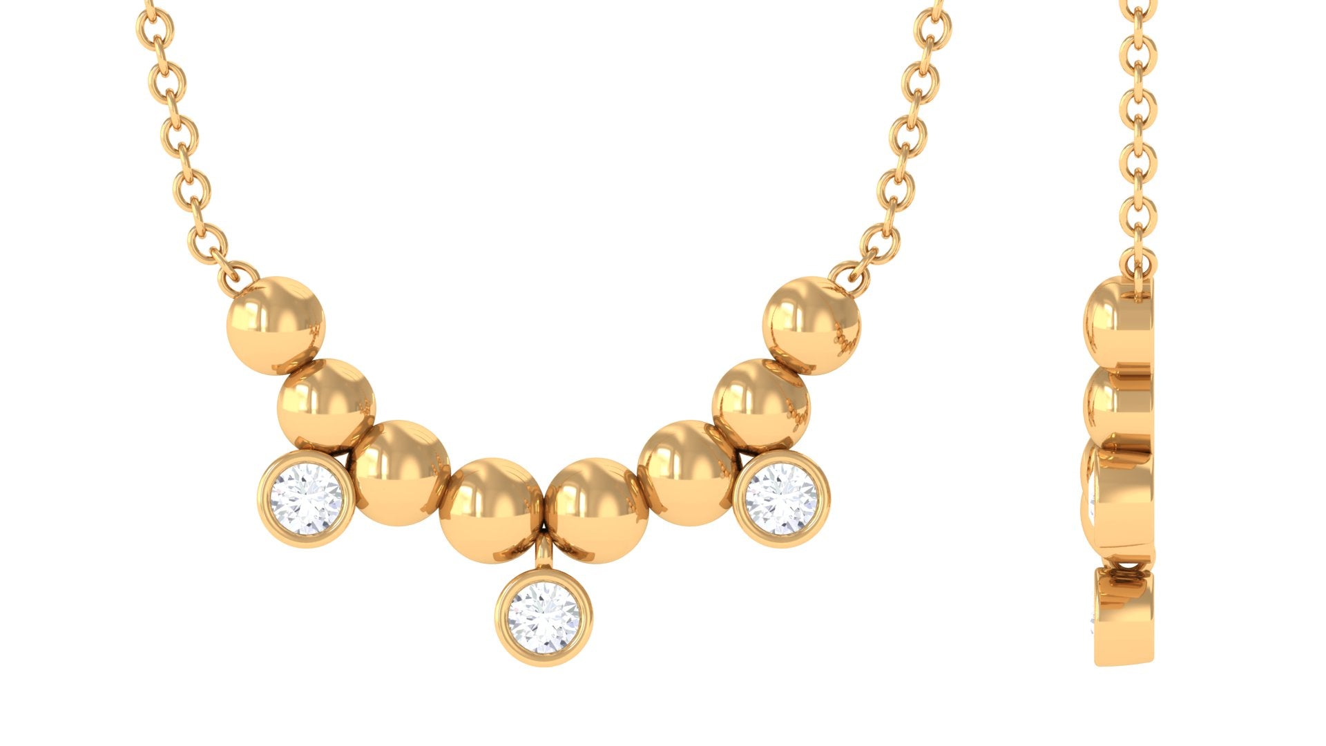Glam up your bridal ensembles with this shimmering Wedding Necklace that showcases a series of lustrous beads, accompanied by round moissanite. The bezel setting frames the moissanite providing a modern twist to the overall design. Whether it is worn on your wedding day, gifted as an anniversary keepsake, or presented as a heartfelt gesture on a special occasion, this Moissanite Necklace is the perfect symbol of love and commitment. Designed for women who appreciate sophistication with a touch of contemporary elegance, this piece will forever be a cherished reminder of a moment filled with love, beauty, and unforgettable memories.