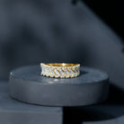 - On the sides are the beautifully set Round Cut Moissanites in pairs of three.