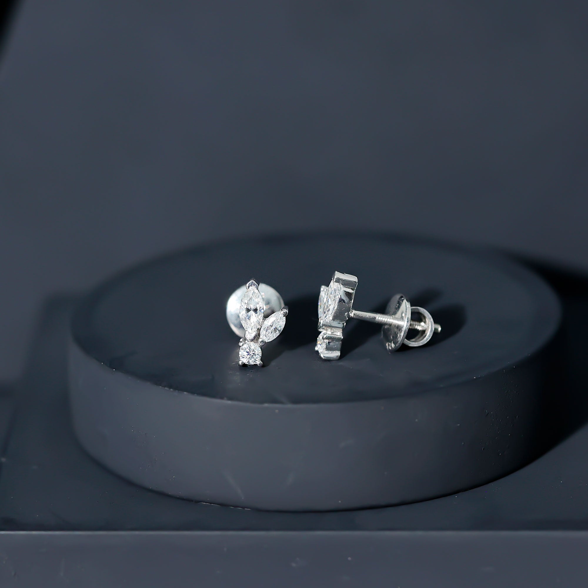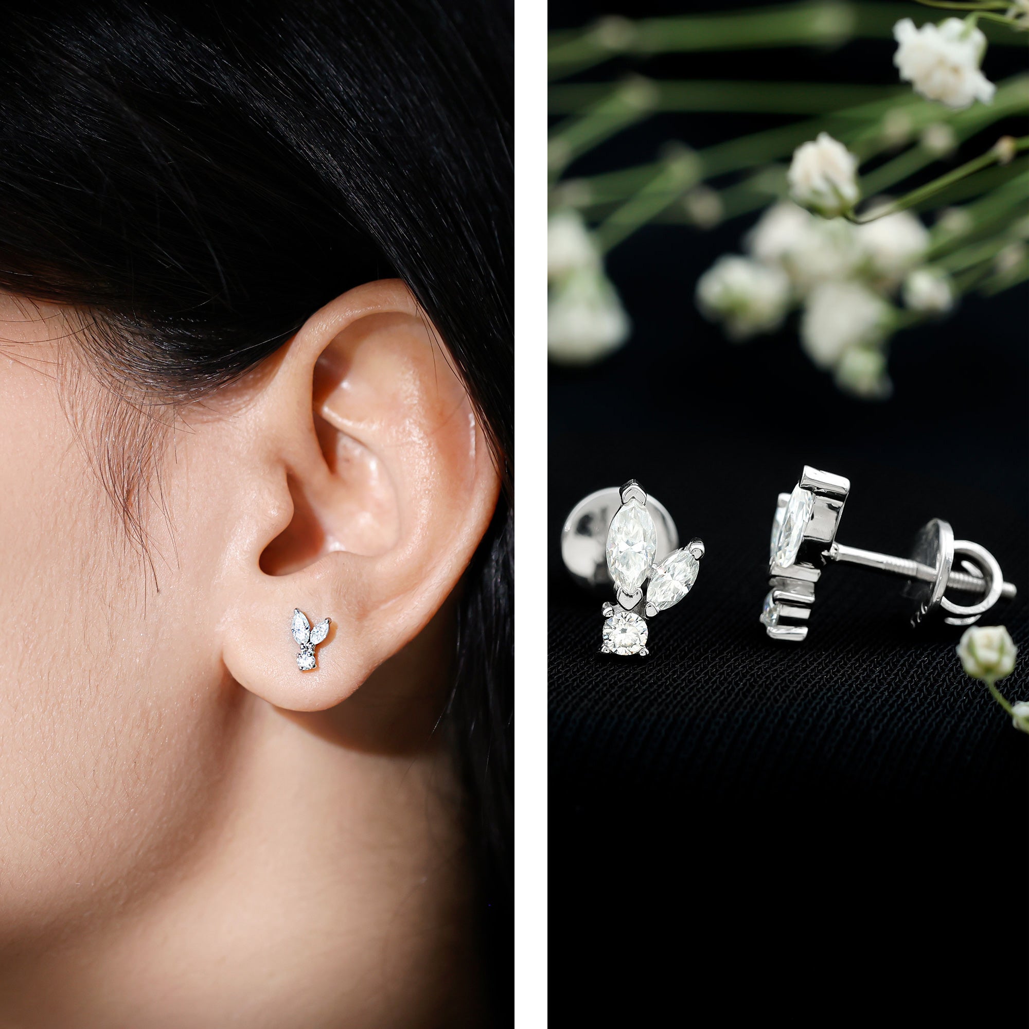 Cherish your playful side with these Moissanite Bunny Rabbit Earrings crafted with 14K White Gold Plated Silver. These studs feature a cute bunny ear design crafted with Marquise and Round Shape Moissanite Stones securely placed in Prong Setting. The earring beholds the classic shine of D-VS1 Quality Moissanite which perfectly reflects your playful and bubbly nature. These Moissanite Stud Earrings can be presented as a birthday present to your special lady or best friend. These Cute Earrings with Screw on Backs will stay in place throughout the day and will be shipped to you in premium quality packaging along with the certificate of authenticity.