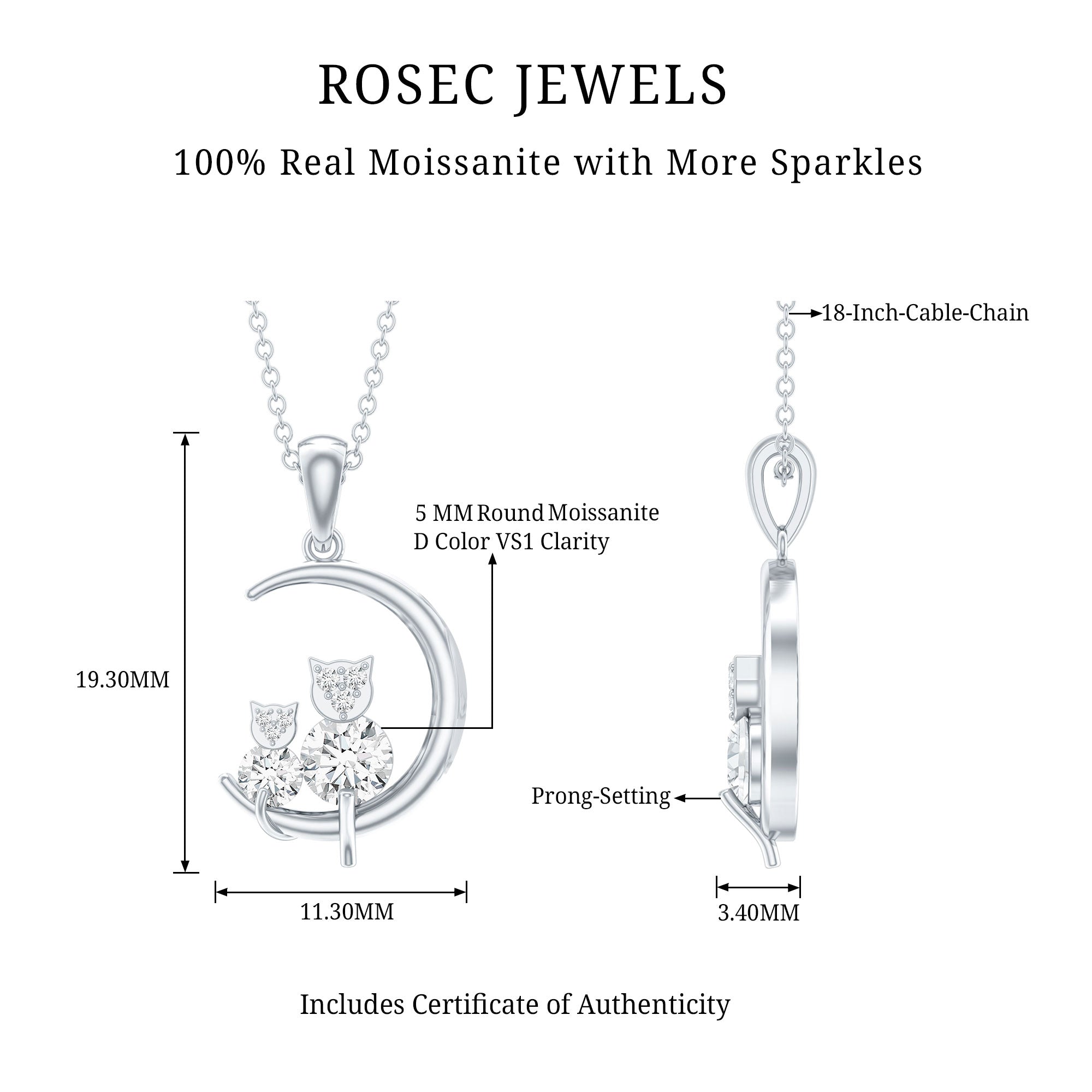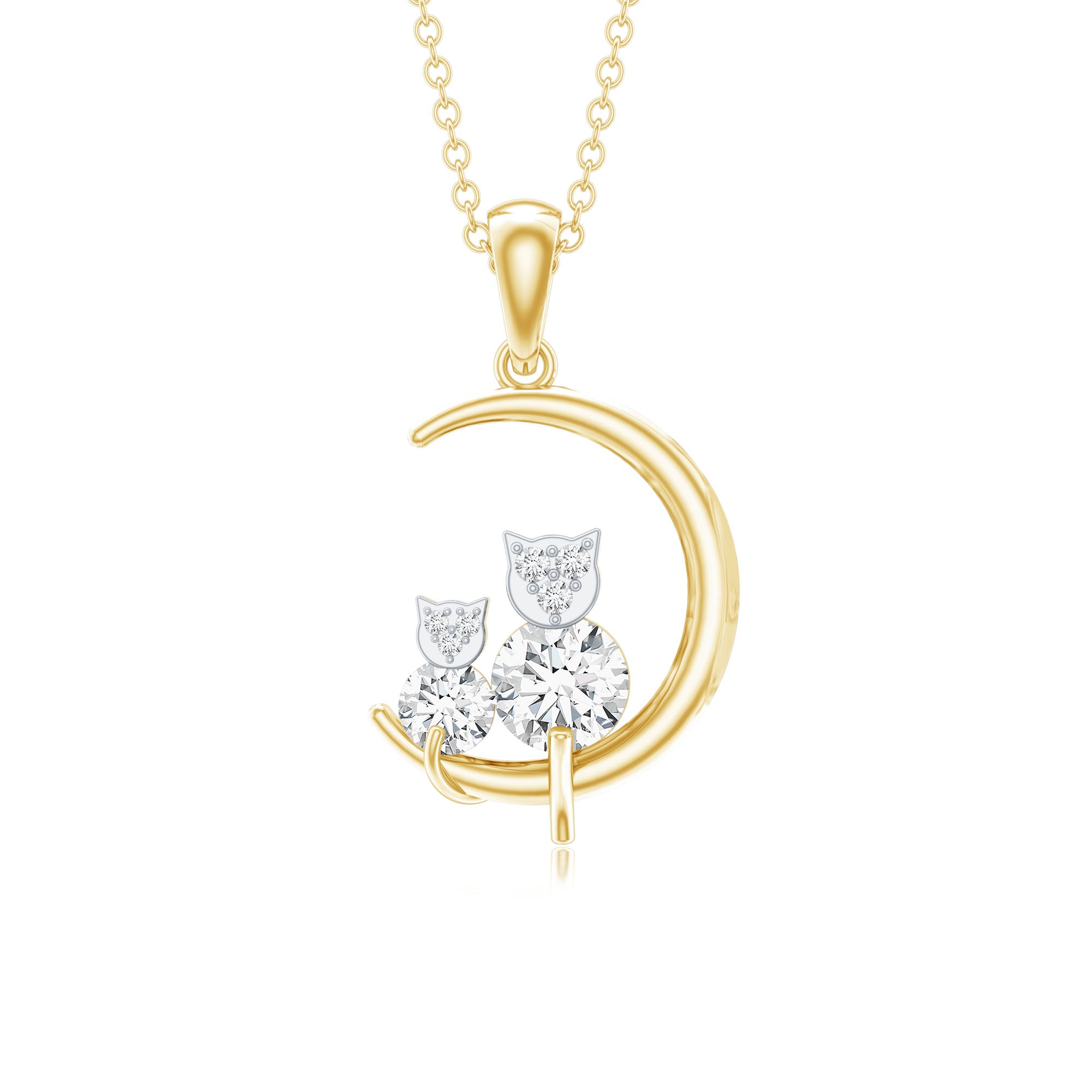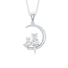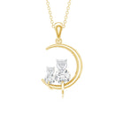 This Cat on Moon Pendant is a charming pendant necklace that will complement your attires effortlessly. Showcases Round Cut Moissanite studded as a cat design, sitting on a crescent moon. The Moissanite Pendant is gracefully crafted with Hallmarked Metal to make an extraordinary gift for her. Grab this Simple Pendant for your close one to give them as a birthday gift.