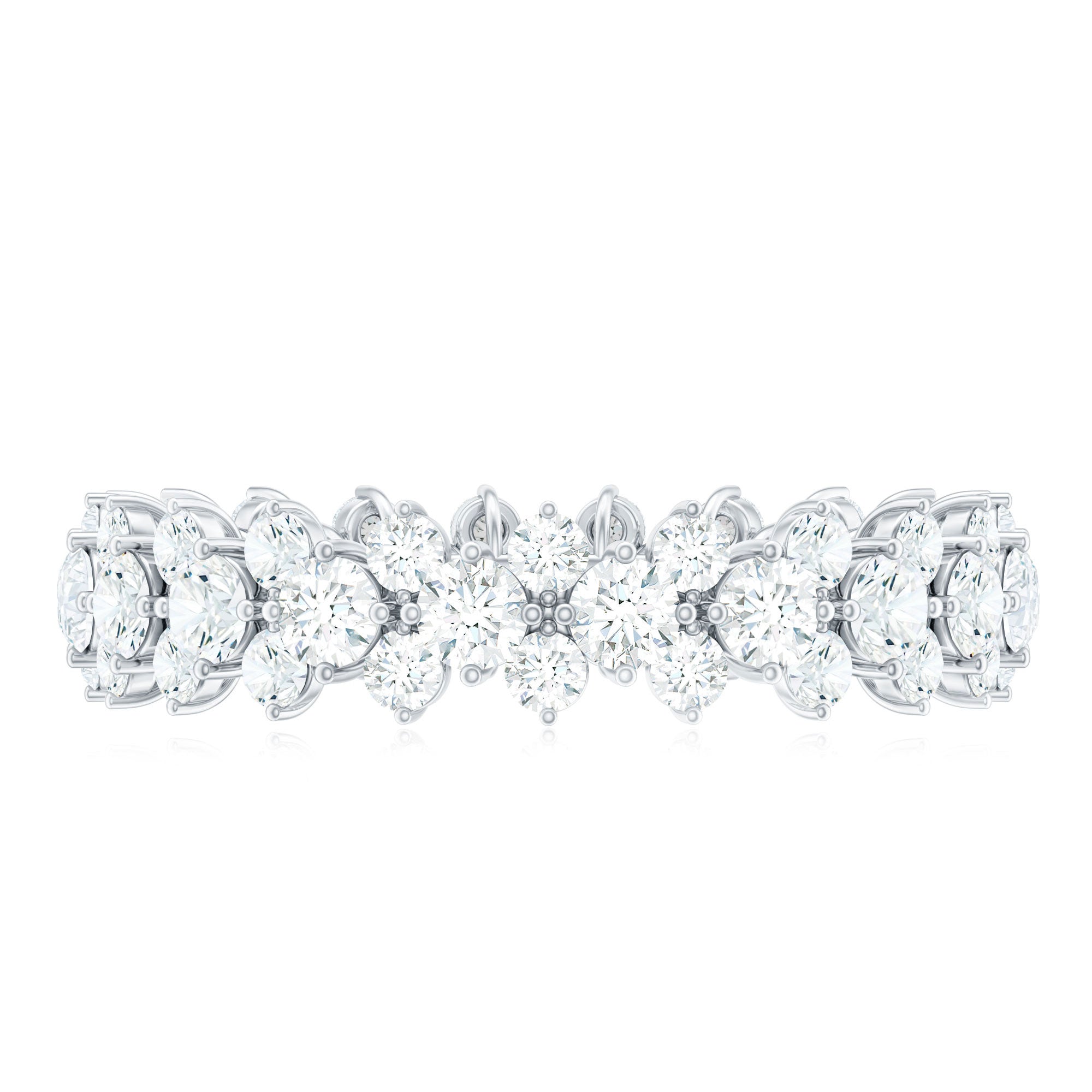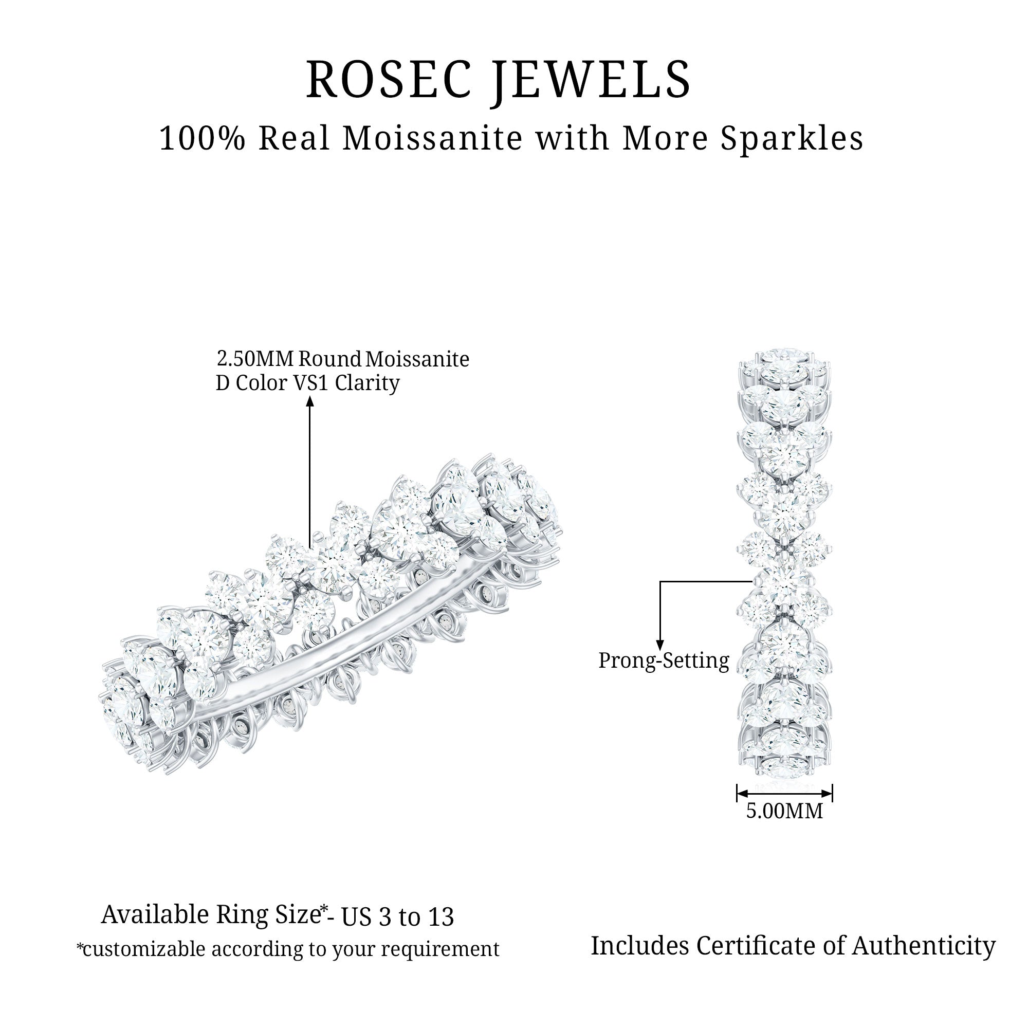 Emanate uniqueness and capture the spotlight from every angle with this captivating Moissanite Eternity Ring. Featuring brilliant Round Shape Moissanite stones securely set in Prong Setting and creating a breathtaking cluster on a Full Eternity Band Ring, this piece promises to garner endless compliments. Its versatility shines as it can be stacked elegantly with wedding bands or engagement rings or worn solo for a minimalist allure. Whether paired with a casual or formal outfit, this Cluster Wedding Band Ring adds a touch of glamour and sophistication to any ensemble, making it the perfect accessory for various occasions. Representing your love, this Moissanite Anniversary Ring and encircles the finger in a full eternity design, stirring up feelings of romance and nostalgia. This Eternity Wedding Band lets you commemorate your union with a symbol of stunning beauty that sparkles more with each glance. Its detailed craftsmanship, when combined, creates a wedding ring that will genuinely connect with you.