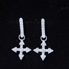 Certified Moissanite Cross Drop Earrings in 14K Gold Plated Silver