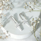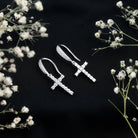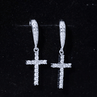 Certified Moissanite Cross Drop Earrings in Gold Plated Silver