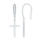 Show off your faith with these Moissanite Cross Earrings that represent spirituality and belief. They features prong set smaller round cut Moissanite stones set on the cross, hanging from moissanite-studded fish hook made of 14K White Gold Plated Silver. These Drop Dangle Earrings are a stylish way to keep your religious values close while looking fashionable. Designed for women, these Silver Cross Earrings shine with D Color and VS1 Clarity Moissanite, making them a great addition to your outfit for any special event. They also make a thoughtful gift for someone special to celebrate their faith. Plus, these Religious Earrings will arrive in a high-quality velvet pouch for safe storage when you are not wearing them.