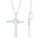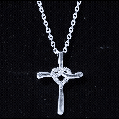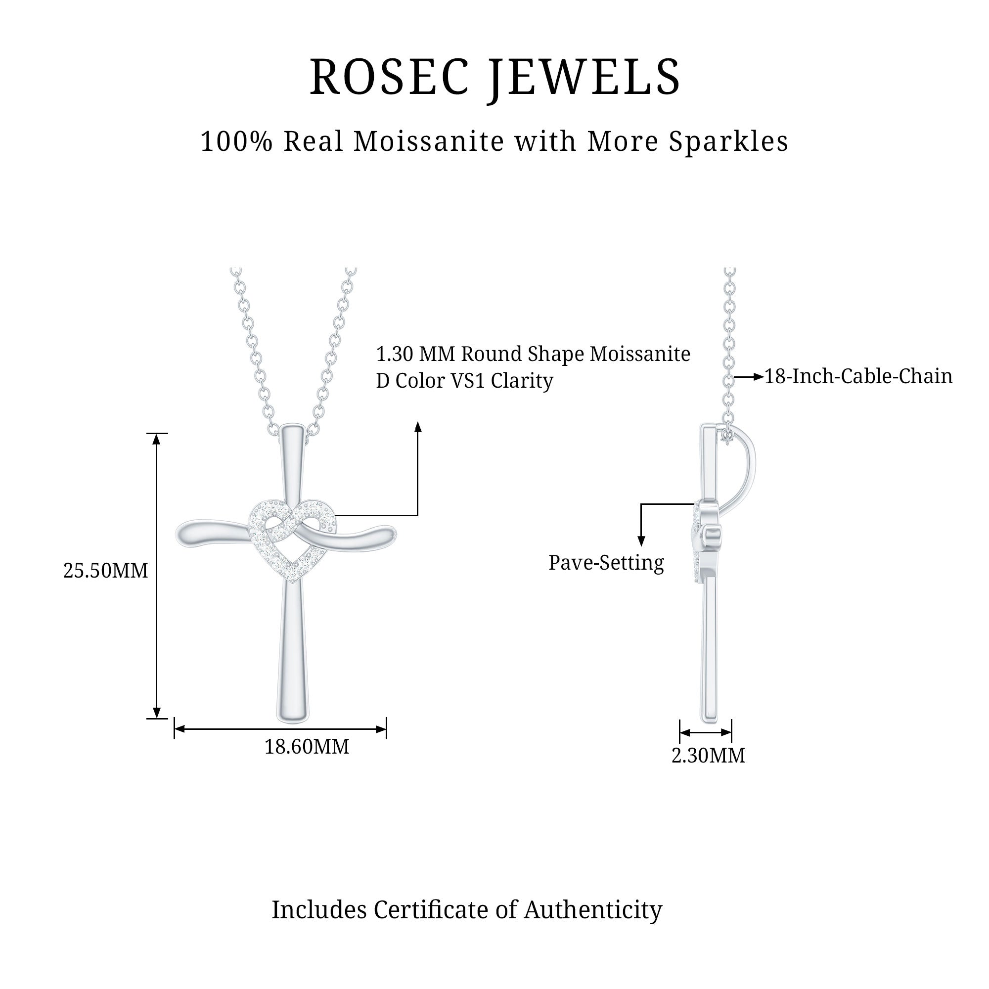 Certified Moissanite Cross Heart Pendant Necklace with Silver Chain
