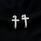 Certified Moissanite Cross J Hoop Earrings in Sterling Silver