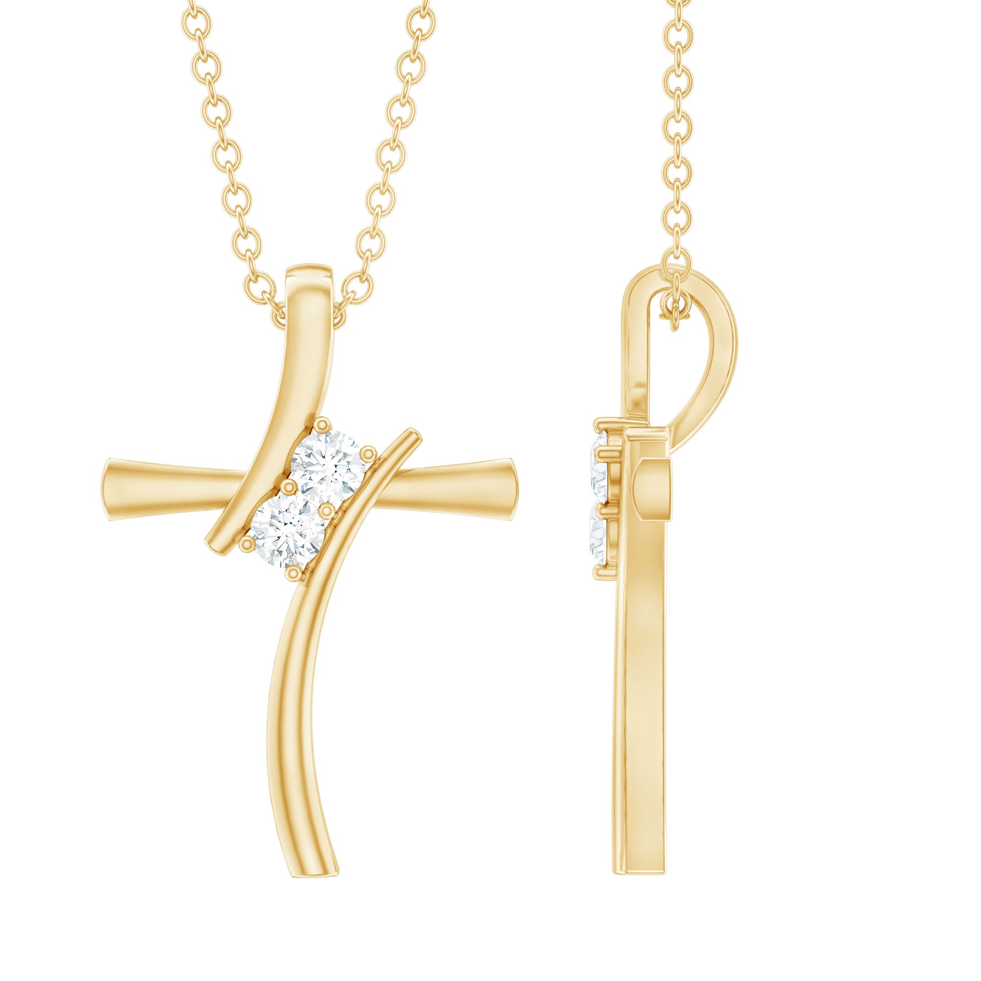 Faith and style come together beautifully in this elegant Moissanite Cross Necklace, designed to inspire and shine every day. This Religious Necklace features a modern cross with a graceful bypass design, highlighted by two sparkling round cut moissanite stones at its center. Hanging delicately from a fine chain, this piece offers a simple yet striking look that complements any outfit. More than just a piece of jewelry, this Christian Cross Pendant is a meaningful symbol of faith and hope. It serves as a reminder of love, forgiveness, and strength, keeping your beliefs close to your heart. Its modern design makes it perfect for everyday wear, whether you are dressing up for a special occasion or adding a subtle touch of elegance to your daily look. This Moissanite Pendant Necklace blends tradition with contemporary style, making it a thoughtful gift for yourself or a loved one who values faith and beauty. Lightweight and comfortable, it fits effortlessly into your life while carrying deep personal significance. Whether worn alone or layered with other pieces, this Cross Pendant offers timeless charm and inspiration that lasts beyond trends.