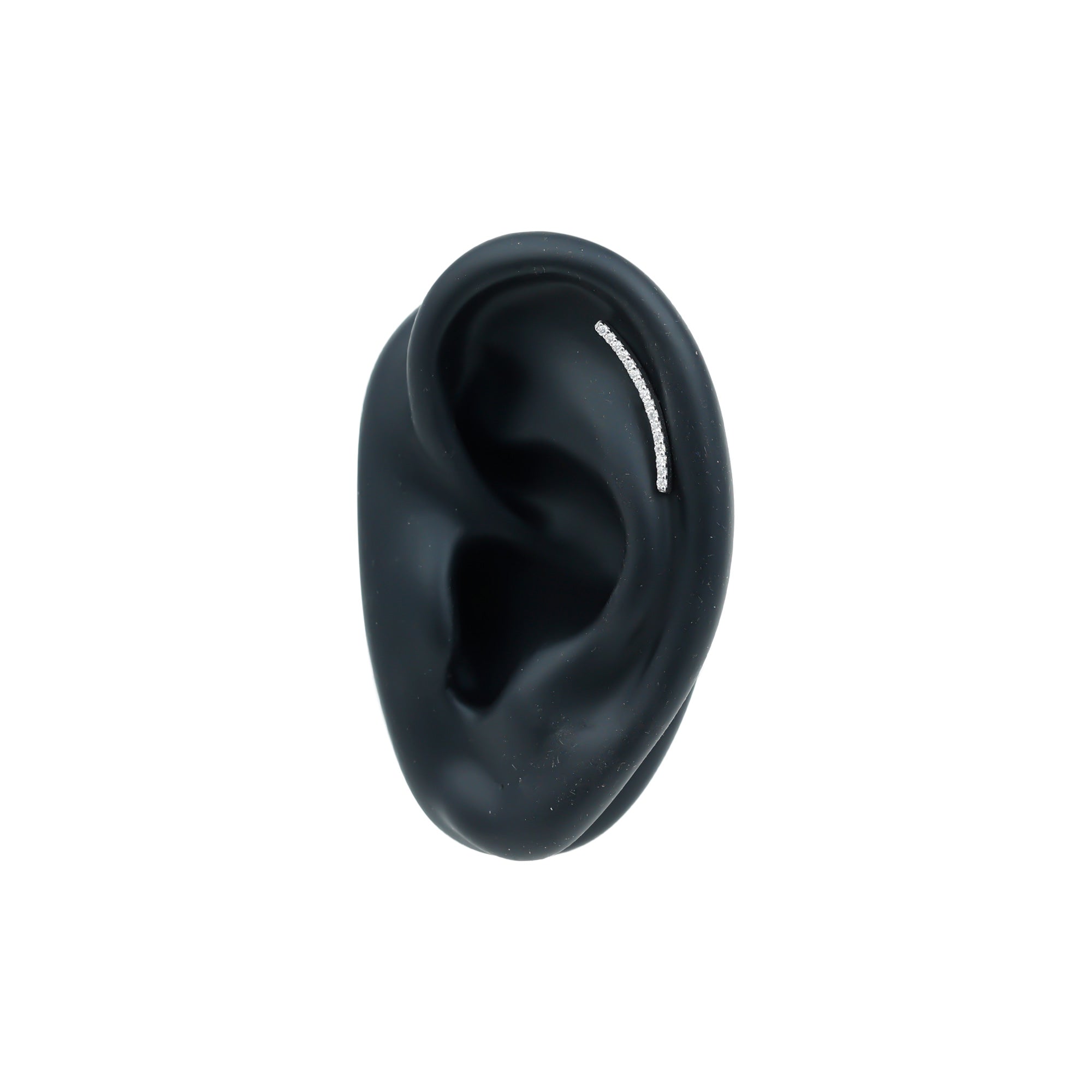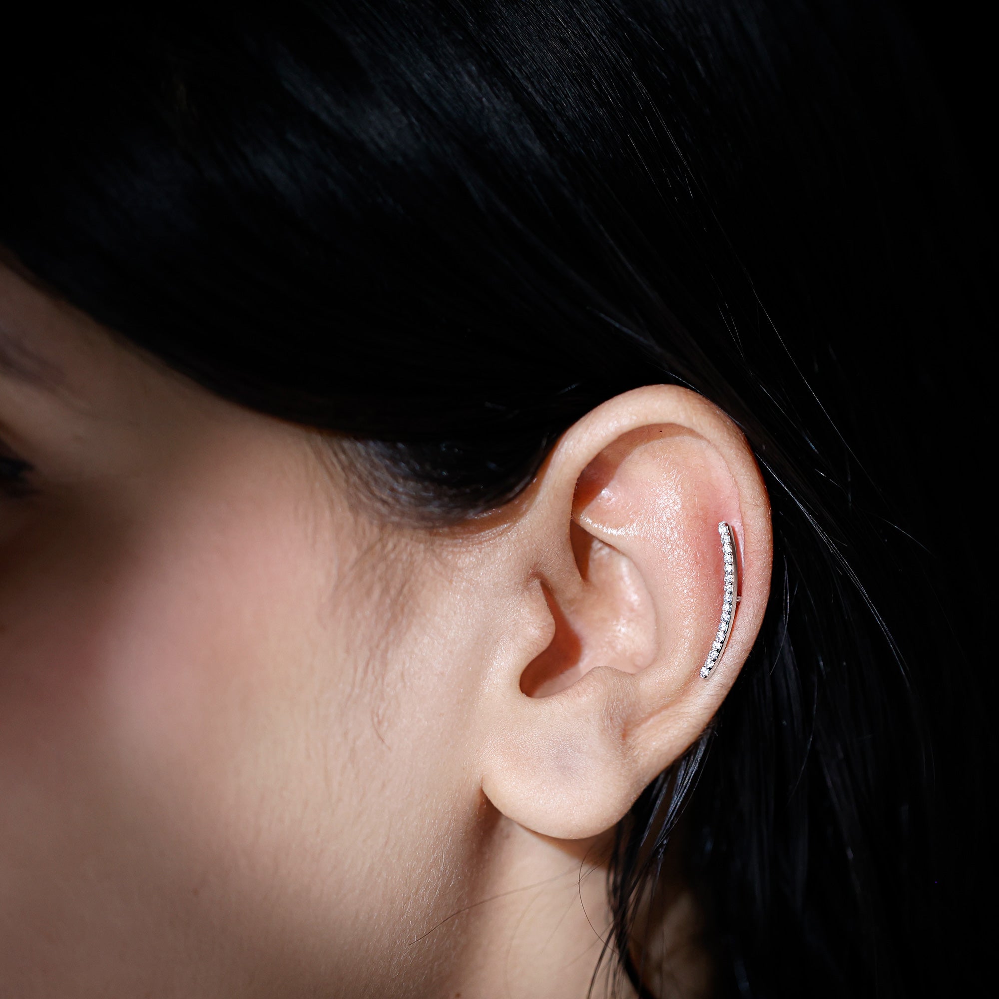 The Moissanite Curved Climber Earring is a dazzling and elegant piece of jewelry that features sparkling Round Cut Moissanites on a curved design, crafted with Gold for a shiny appearance. Style it on your Helix, Cartilage, or Upper Lobe Piercing and pair it with your favorite outfits.