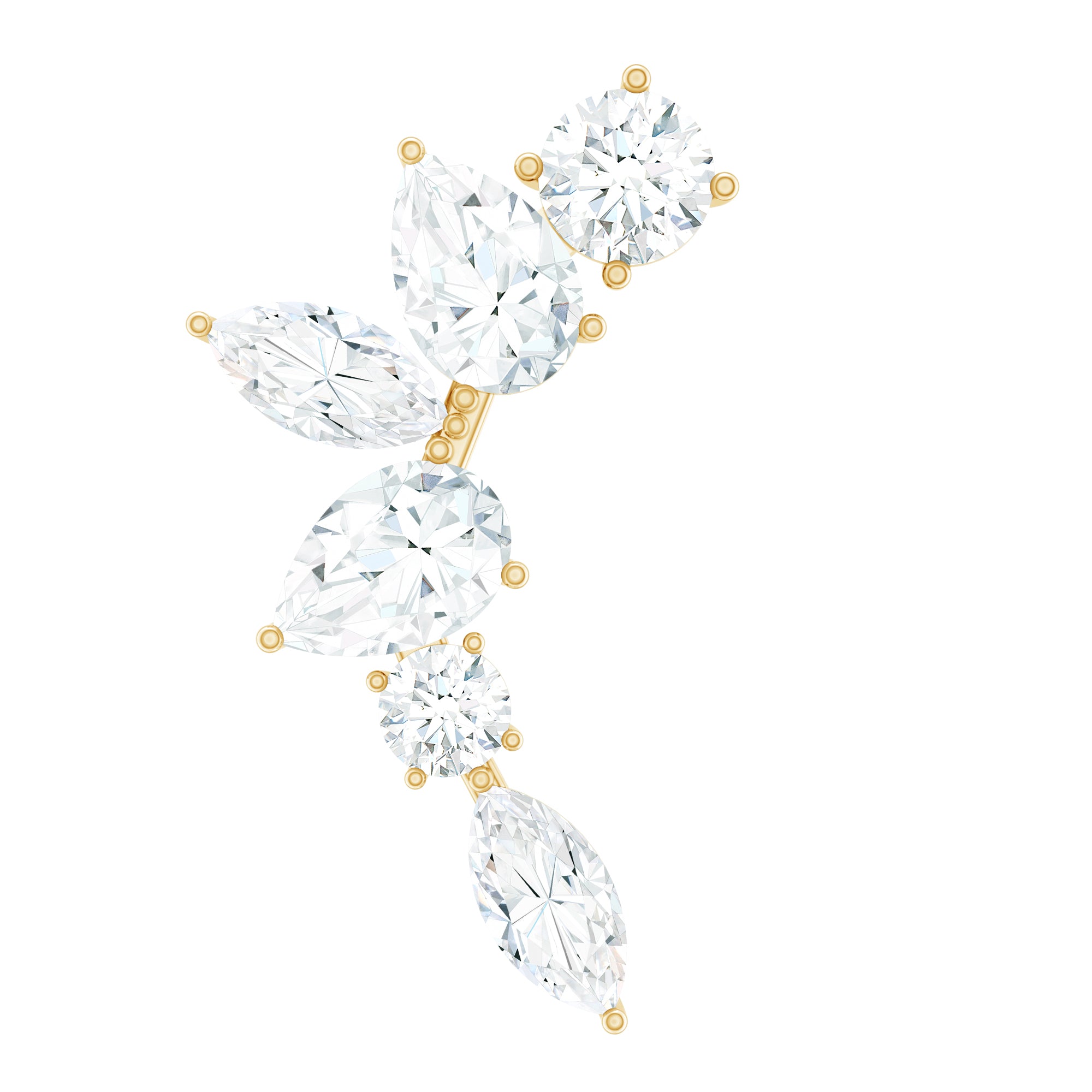 Make a statement with our glamorous Moissanite Crawler Earring, the perfect accessory to add a unique touch to your attire. This stunning piece is embellished with Round, Pear, and Marquise Cut Moissanite arranged in Prong setting. With its dazzling design and high-quality metal, this Moissanite Designer Cartilage Earring is sure to turn heads and elevate your style. This Piercing Earring can be styled on Helix, Cartilage, and Lobe Piercing with statement earrings. Present this Crawler Earring to someone special and help them to make their piercing adorable.