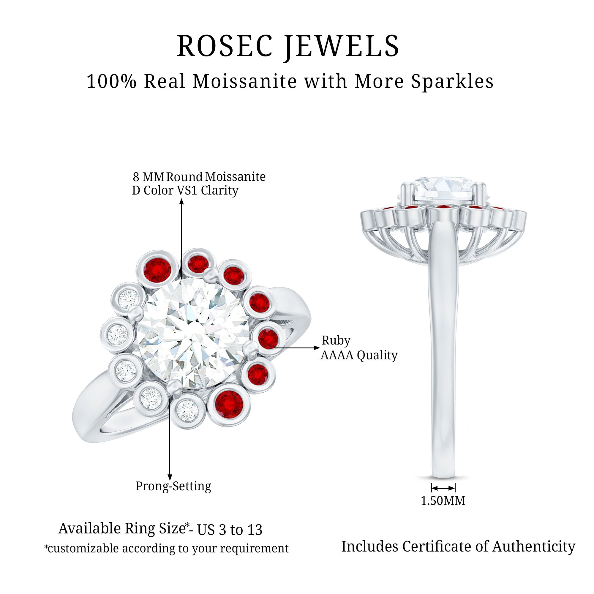 Certified Moissanite Designer Engagement Ring with Lab Ruby