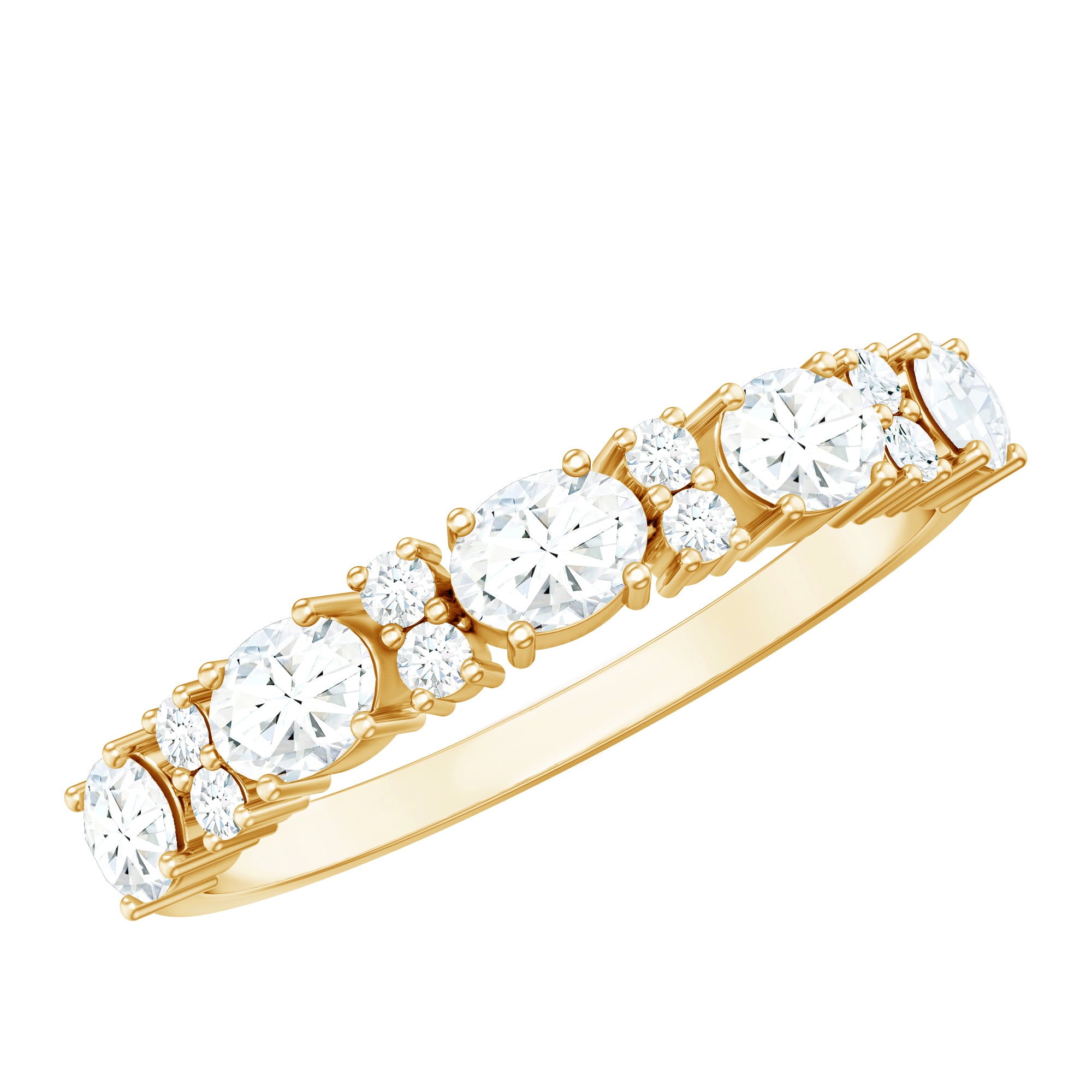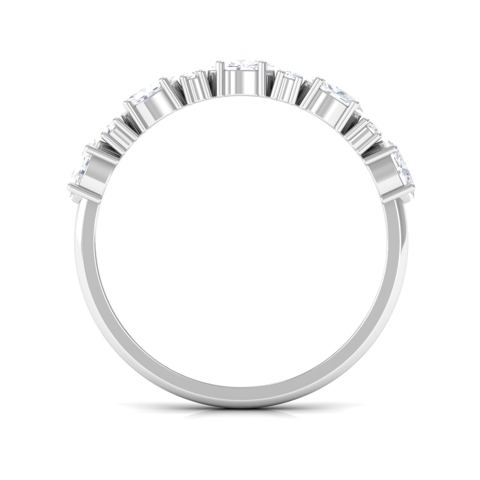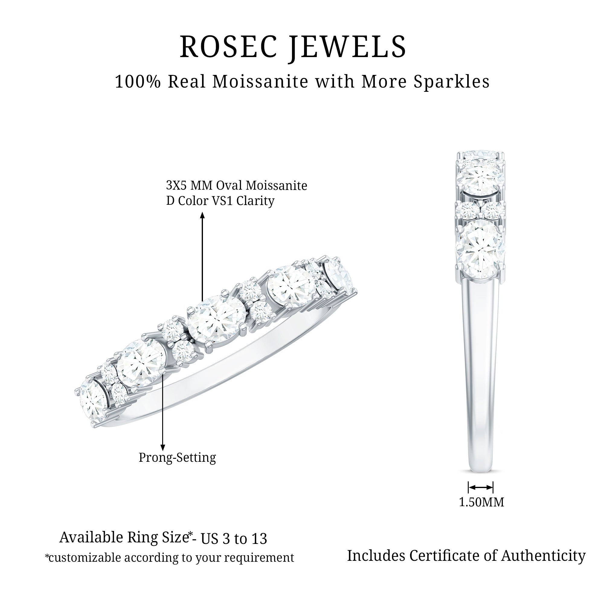 This Moissanite Half Eternity Band is the perfect mix of unique design and everyday elegance. Designed for those who love modern sparkle with a hint of tradition, this Eternity Wedding Band features a beautiful row of alternating oval and round moissanite stones. The oval shaped stones are set horizontally (East West Style), giving the ring a stylish twist, while the smaller round stones add extra shimmer between them. Each stone is D color and VS1 clarity, which means they are super clean and full of sparkle. Carefully prong set, these gems catch the light beautifully from every angle, making this Oval Eternity Ring an eye-catching piece whether worn alone or stacked with other rings. Ideal as a wedding band, anniversary band, or a special stacking ring, this piece is versatile and easy to wear daily. Its half eternity design ensures that the top of the Wedding Anniversary Band sparkles while the back remains smooth and comfortable, making it practical for everyday wear without sacrificing shine. Whether you are celebrating a milestone or just want to treat yourself to something timeless yet trendy, this Moissanite Stacking Ring makes a perfect choice. Its minimal yet striking design makes it a favorite for modern brides and jewelry lovers alike.