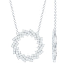 Our Eternity Pendant Necklace serves as a graceful reminder that true love lasts forever, beautifully and endlessly. It features a breathtaking display of timeless elegance. With its sleek open circle frame, the real allure comes from the delicate arrangement of sparkling Moissanite stones set over small curved bars. This design embodies the spirit of eternity - infinite and radiant. Made from 14K white gold plated silver, the Moissanite Circle Necklace is both lightweight and sturdy, making it ideal for everyday wear or to add a special touch for an occasion. It is classically stylish and utterly chic. This gorgeous Round Necklace offers a timeless appeal with its modern circle design. Accompanied by a fine cable chain, this Silver Circle Necklace sits gracefully on the neckline, infusing any outfit with a touch of everlasting love. Simple yet captivating, this piece honors eternal love, quiet strength, and beauty that endures through time.