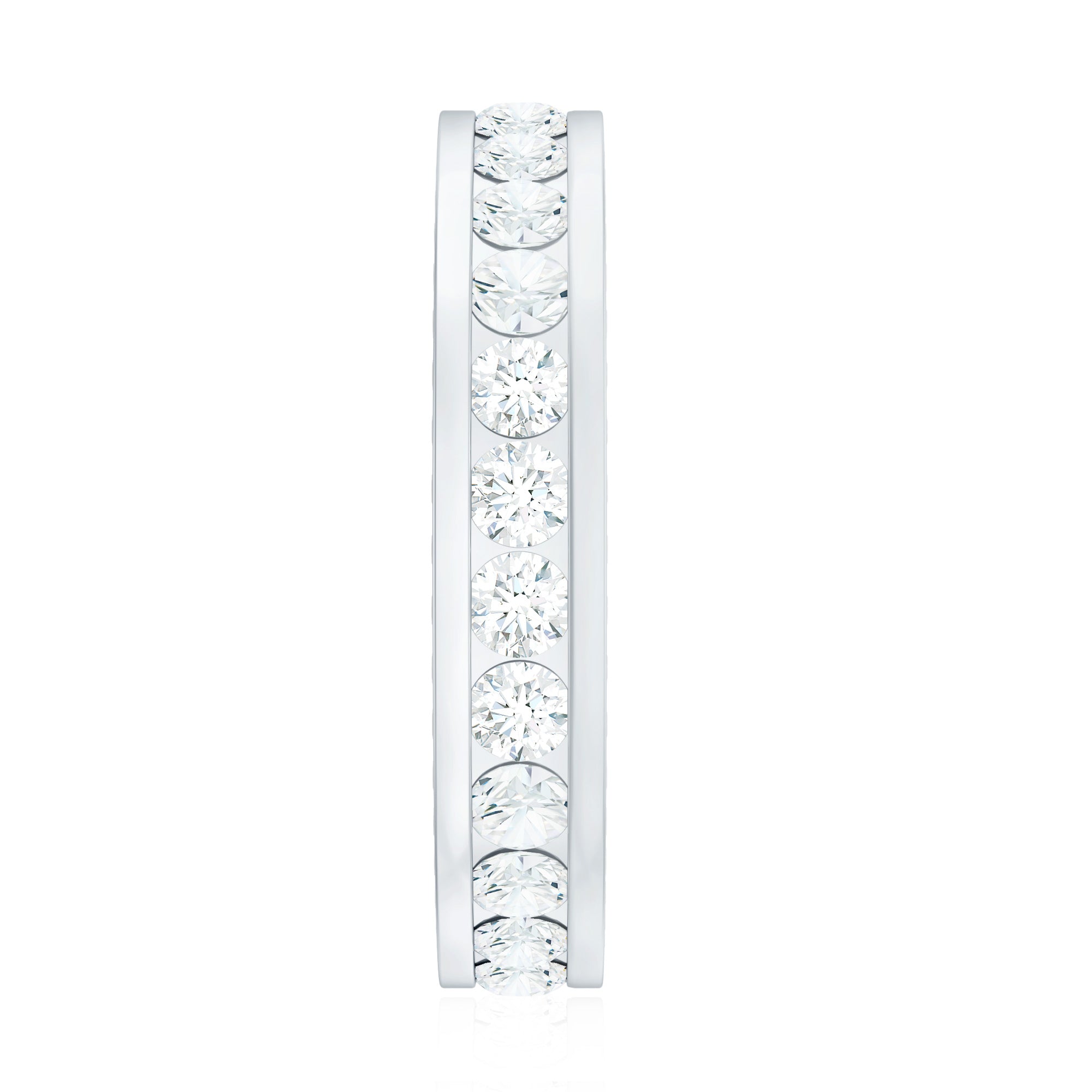 This Moissanite Wedding Band highlights exceptional brilliance and fire, making it a truly distinctive piece of jewelry that allows you to stand out from the crowd. Its harmonious combination creates a stunning visual impact and symbolizes everlasting love. Crafted with care and meticulous attention to detail, this Eternity Wedding Band features Round Shape Moissanite in Channel Setting. Both the front and back sides are also embellished with Round brilliant cut Moissanite, giving it a sparkle from every angle. With utmost care and attention to detail, this Wedding Anniversary Band showcases unparalleled beauty, adding an enchanting touch to your jewelry collection. It blends seamlessly, providing an undeniable touch of sparkle and elegance. The D Color VS1 Clarity Moissanite draws attention and ignites conversations wherever you go. This creates a truly unique Moissanite Eternity Ring that reflects your individuality and celebrates your relationship. It captures hearts and dazzles with its timeless elegance. This Full Eternity Ring forms a harmonious and captivating ring stack. For those seeking a meaningful, modern choice, it embodies those values.