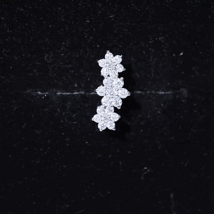 Introducing our Ear Climber Flower Earring, designed to capture attention with its stunning shine. Featuring round cut Moissanites in a secure prong setting, this earring is a true statement piece. The flat back closure ensures a comfortable and secure fit, while the versatile design can be worn on the helix, cartilage, or upper lobe piercings. Give the gift of enchanting beauty with this dreamy crawler earring, perfect for surprising your beloved at her birthday party.