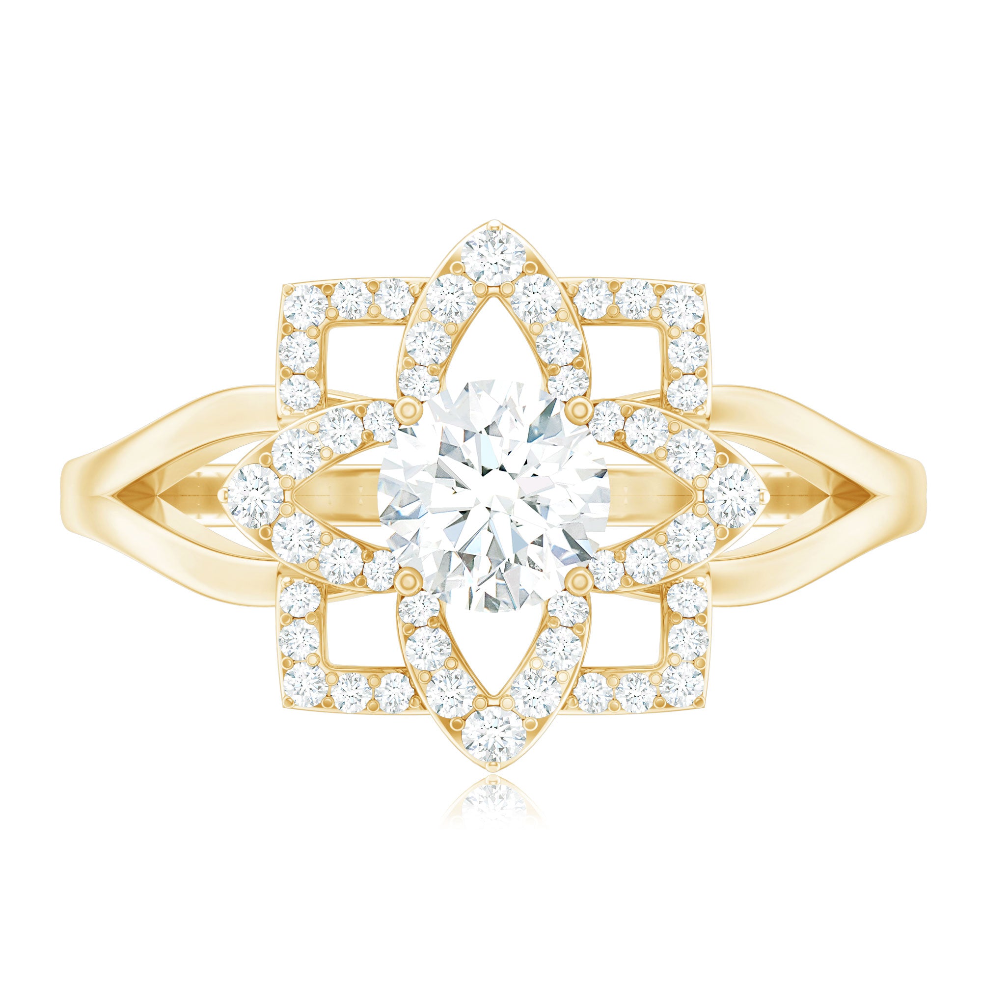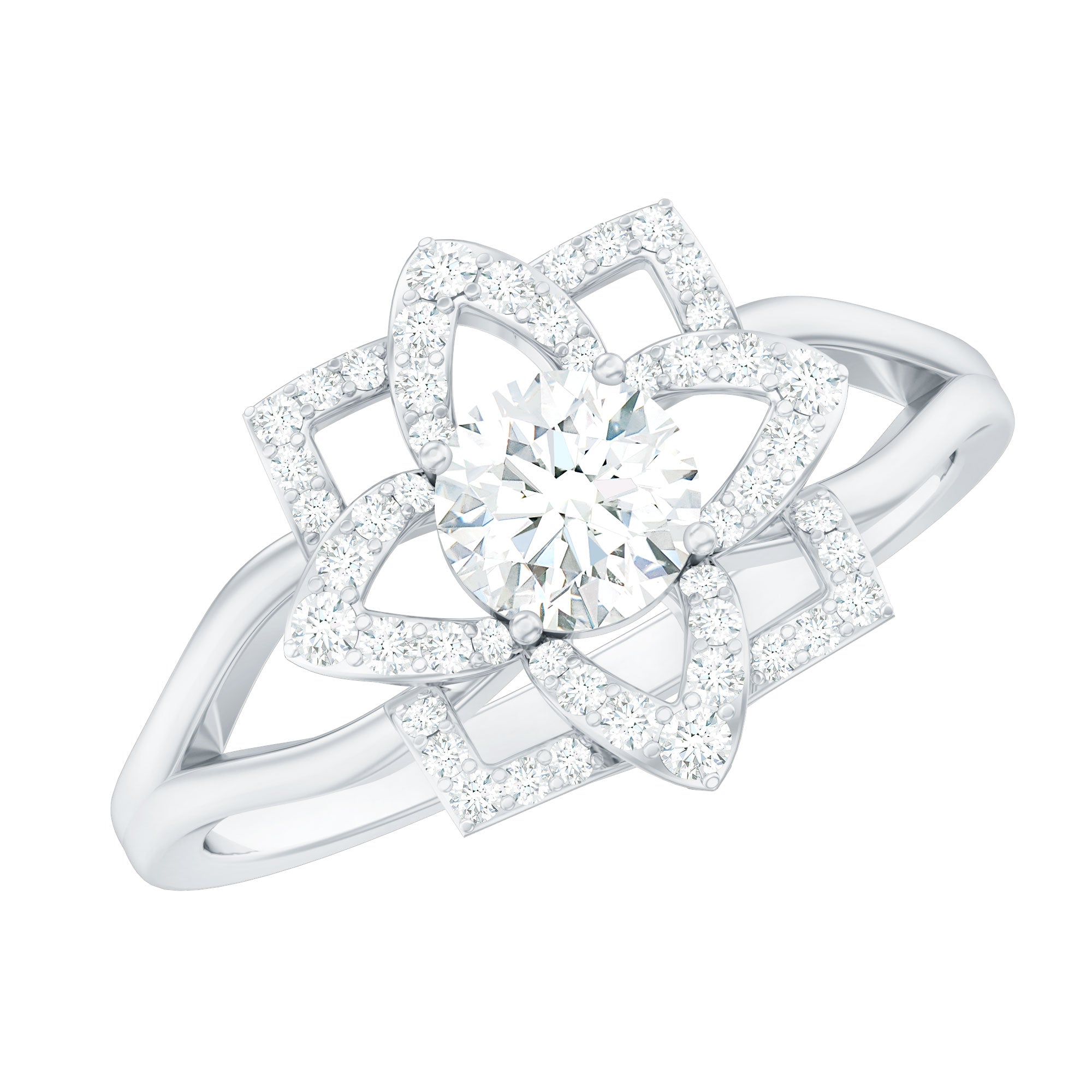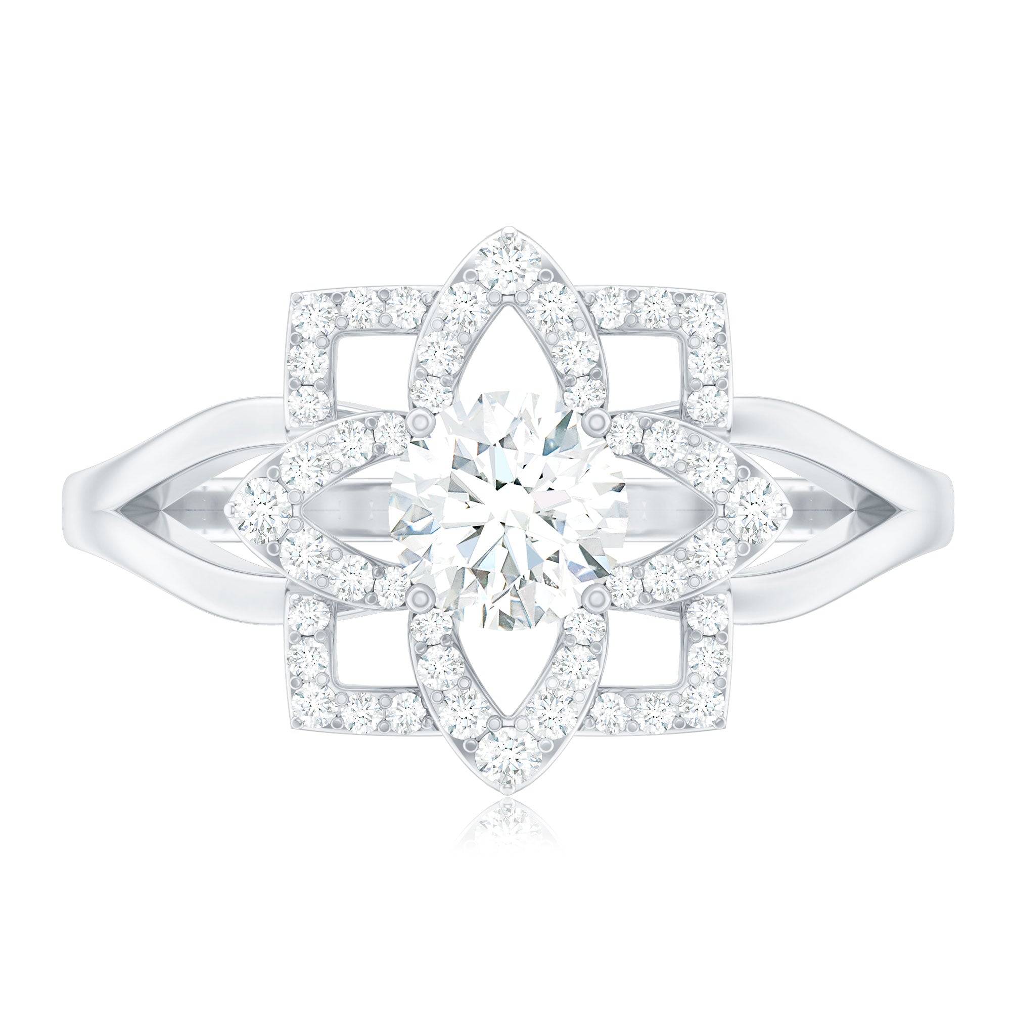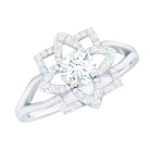 Certified Moissanite Floral Engagement Ring with Split Shank