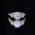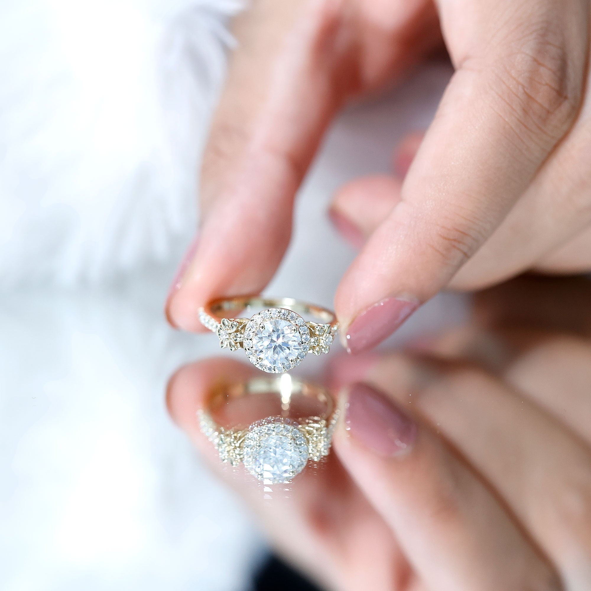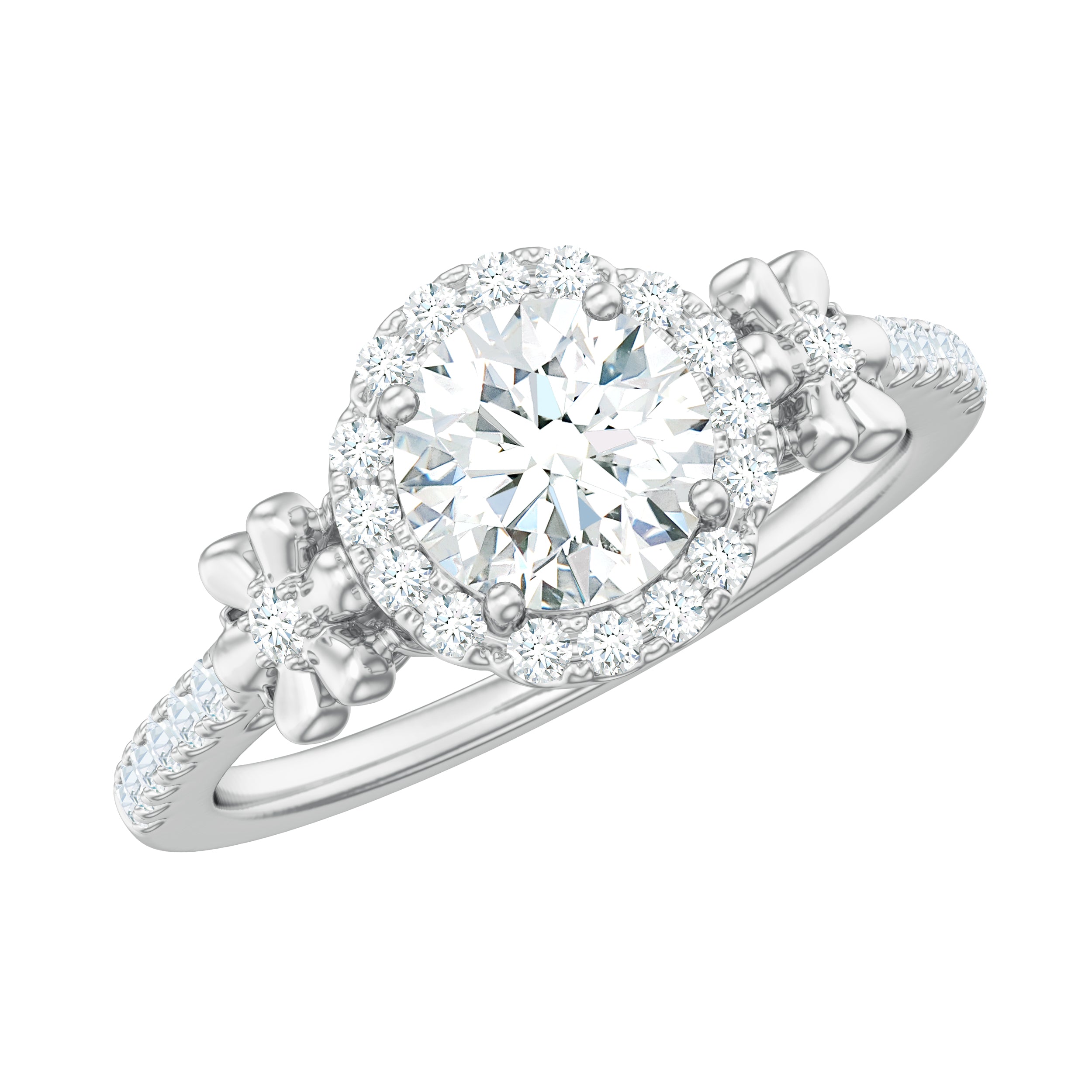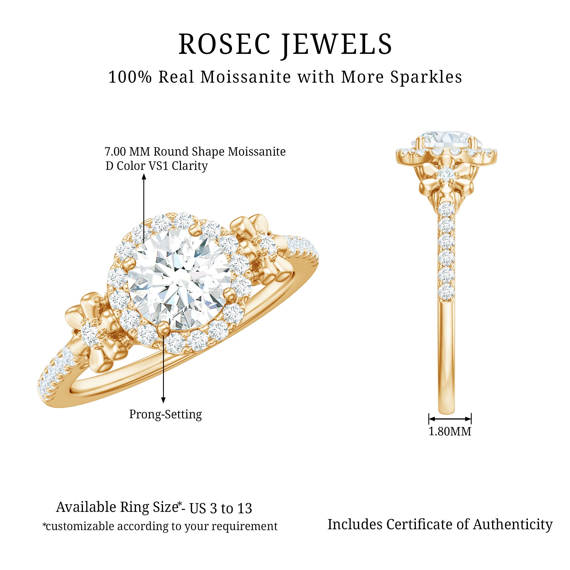 Make a bold statement with this sparkling Moissanite Halo Engagement Ring. The center round cut moissanite is surrounded by a halo of round moissanite, creating an eye-catching look. Crafted in a precious metal, this ring is the perfect way to add some glamour to your look and make your loved one feel special and loved.