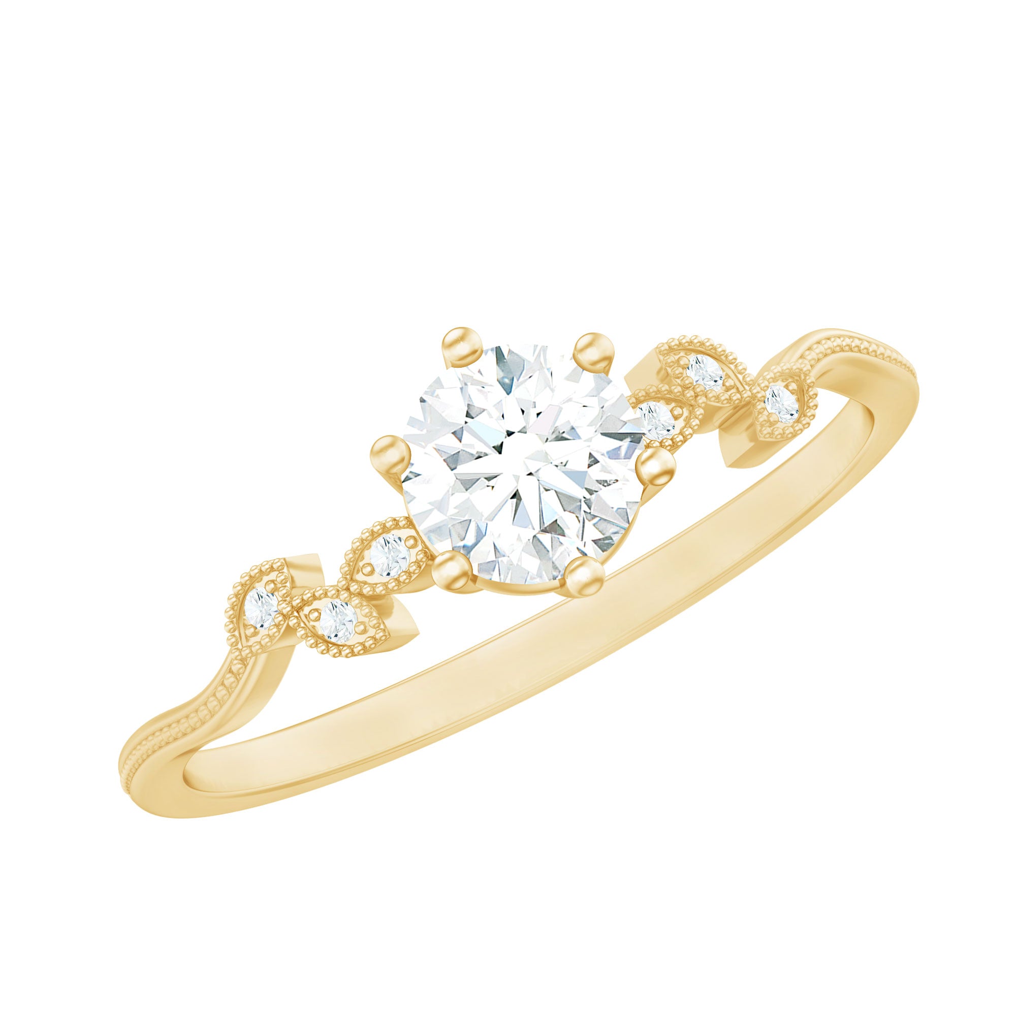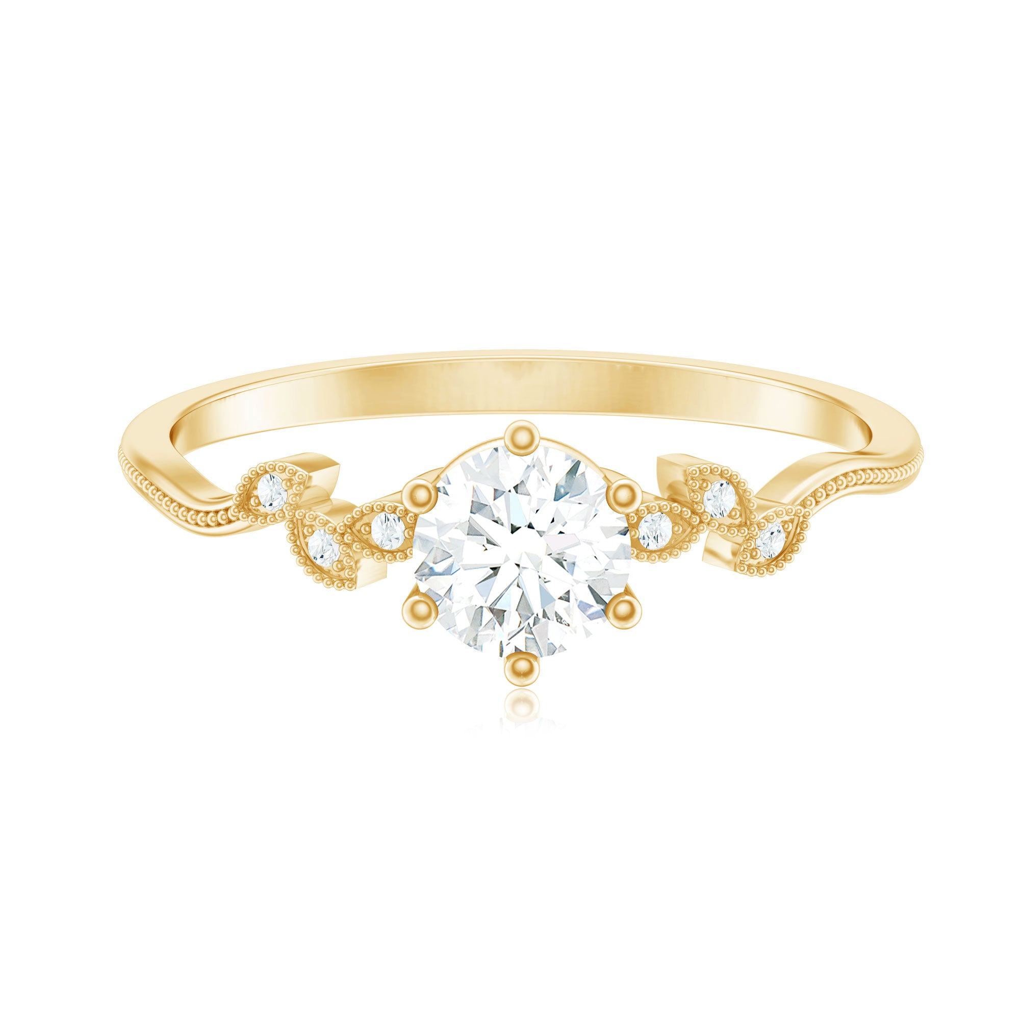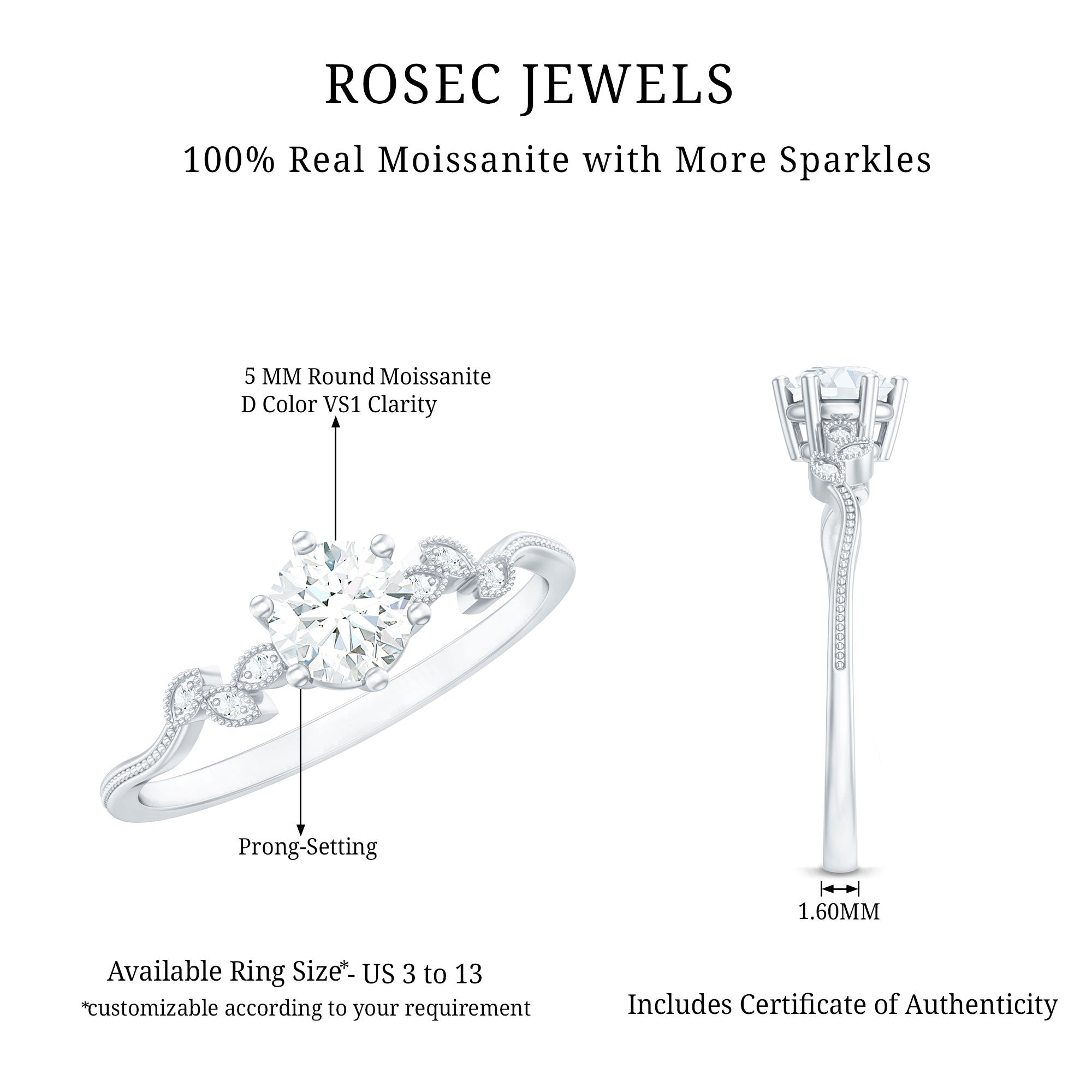 Certified Moissanite Flower Promise Ring with Beaded Detail
