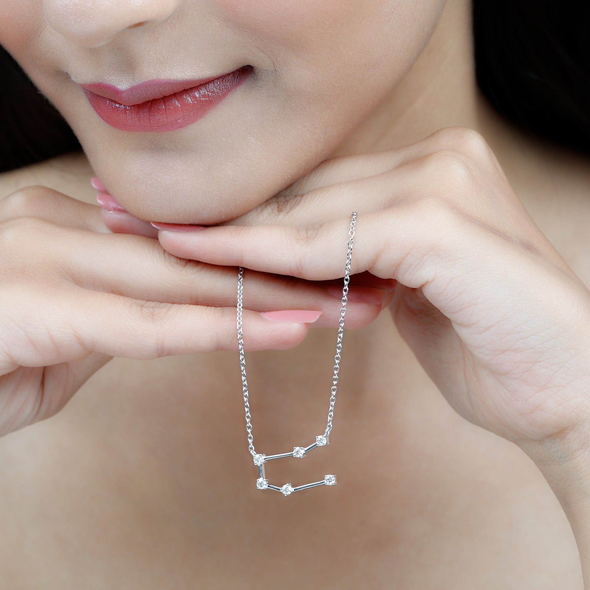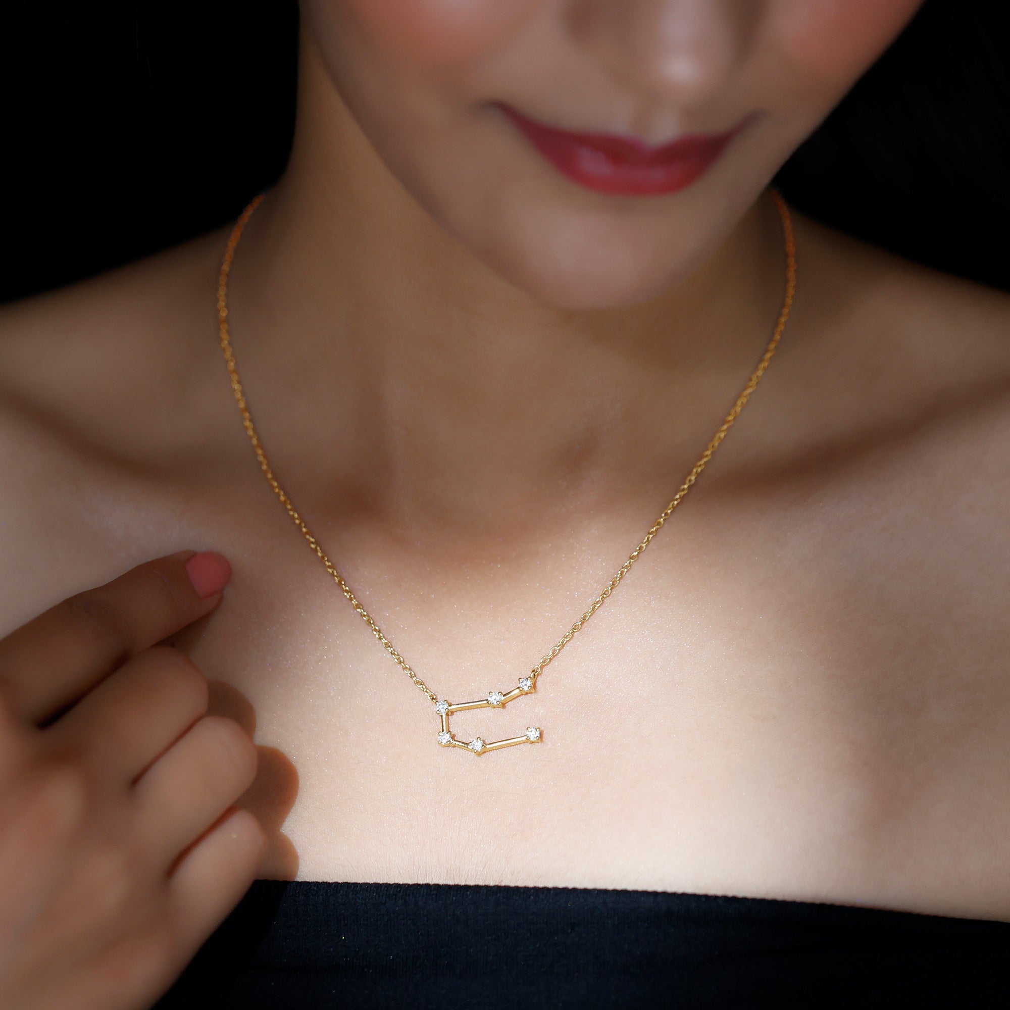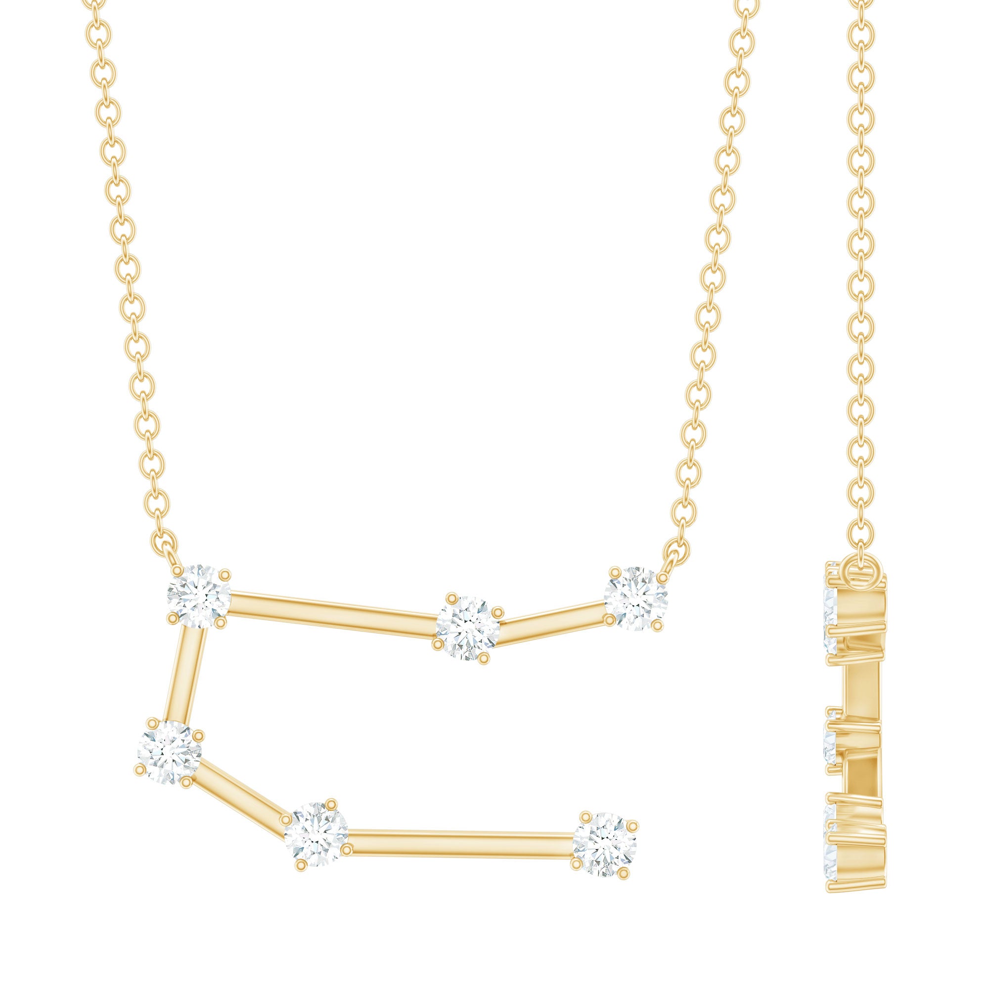 Add a meaningful touch to your jewelry collection with a piece designed for Gemini personalities. The Gemini Zodiac Necklace features the constellation of Gemini, crafted with sparkling round brilliant cut moissanite stones set in secure prongs. Each stone is carefully connected with delicate metal bars, forming the shape of the Gemini constellation, representing versatility, curiosity, and intelligence. Designed for both everyday wear and special occasions, the Gemini Moissanite Necklace adds a subtle sparkle to any outfit. Its elegant design pairs easily with casual or formal styles, making it a versatile accessory that highlights your zodiac identity. The D color VS1 clarity moissanites bring brilliance and radiance, creating a timeless piece that draws attention with understated sophistication. Ideal as a thoughtful birthday gift, a meaningful keepsake, or a personal statement piece, this Constellation Necklace symbolizes personality, charm, and self-expression. Hanging gracefully from a delicate cable chain, it ensures comfort throughout the day while making a celestial statement.