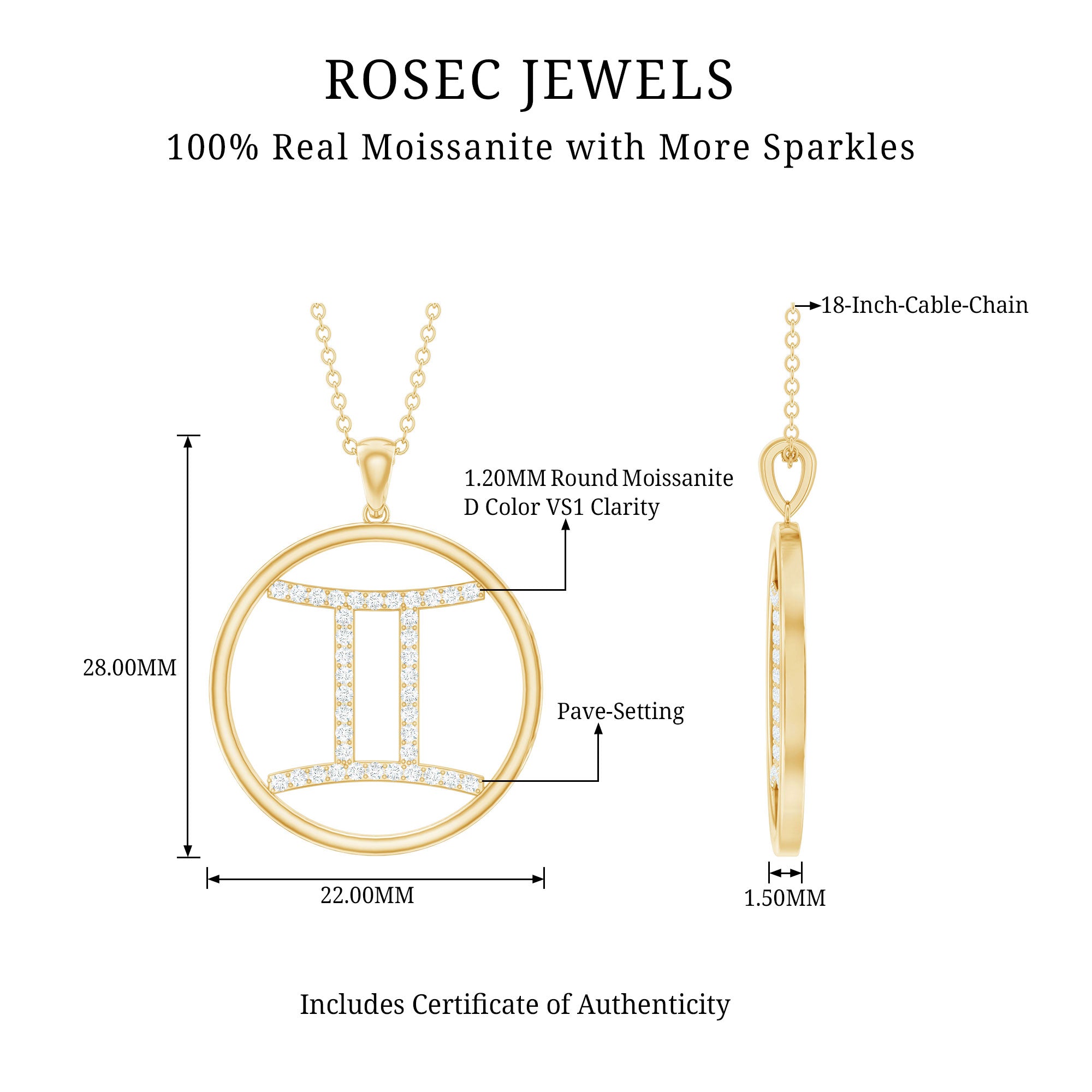 Certified Moissanite Gemini Zodiac Sign Pendant Necklace