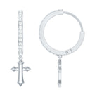 Certified Moissanite Gold Cross Hoop Drop Earrings