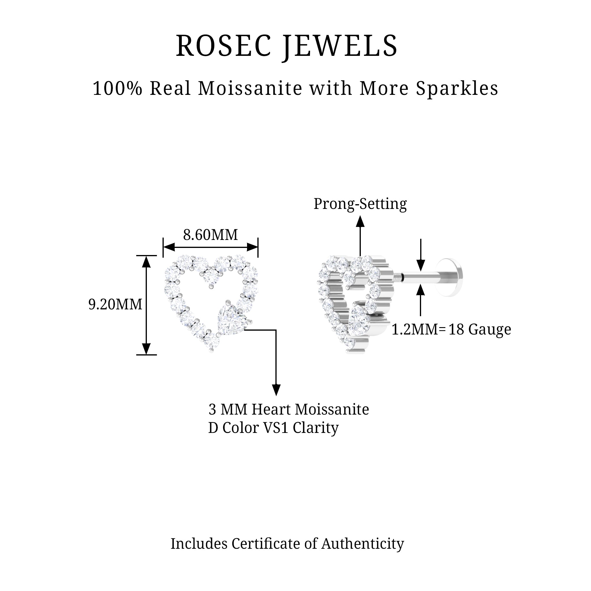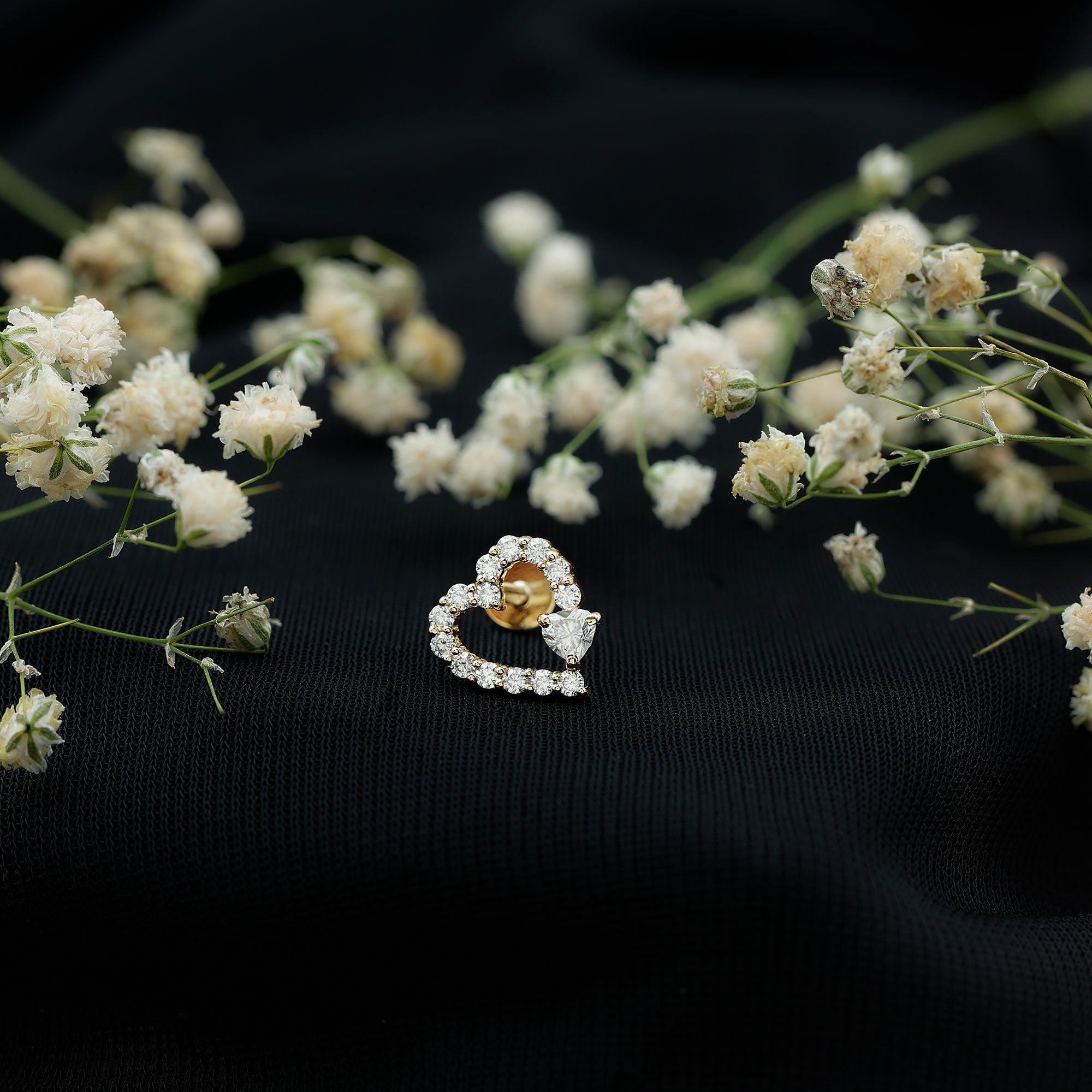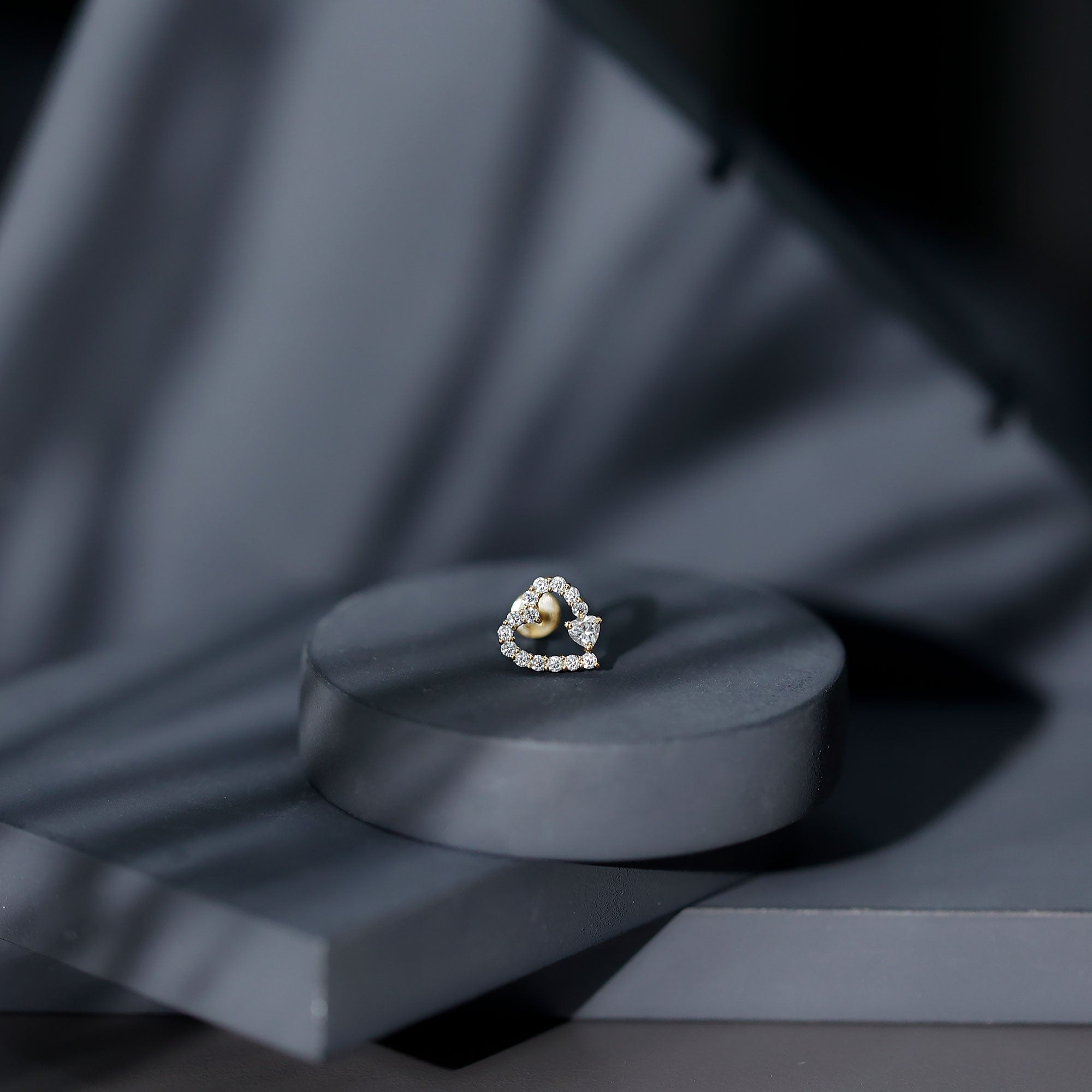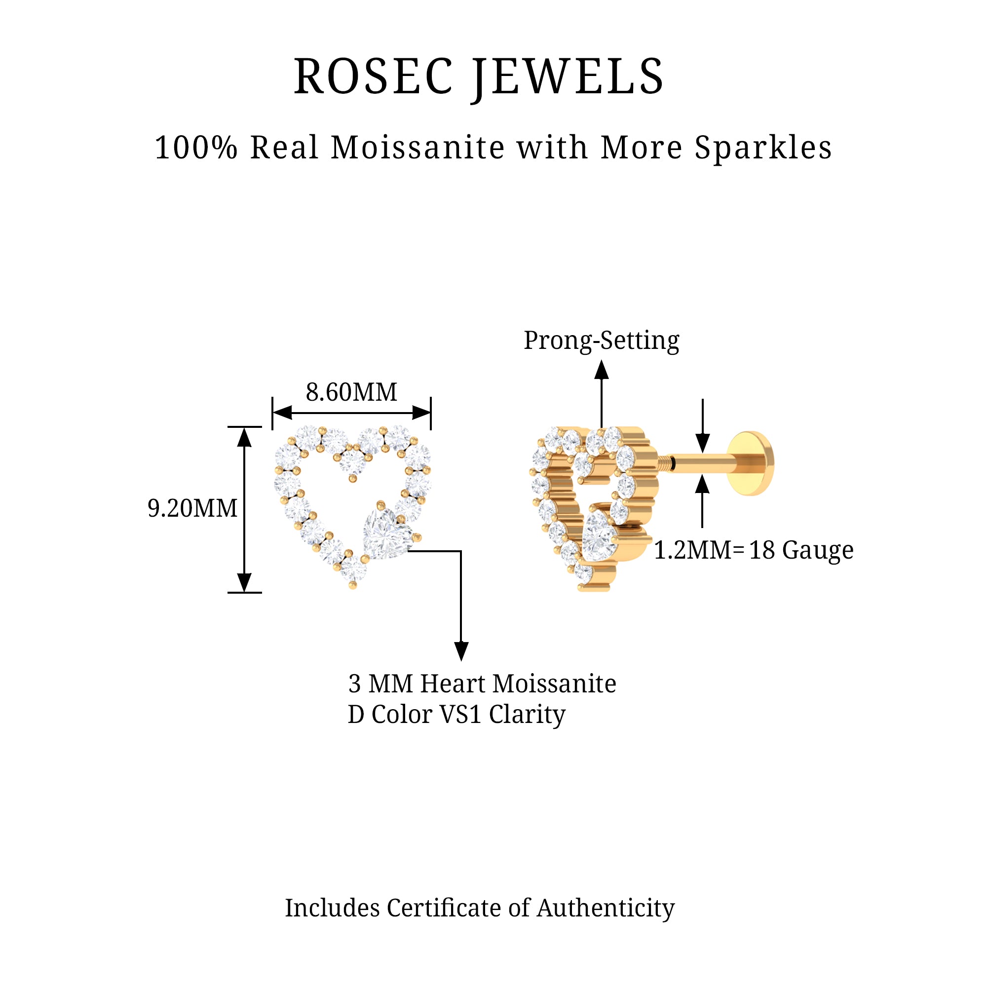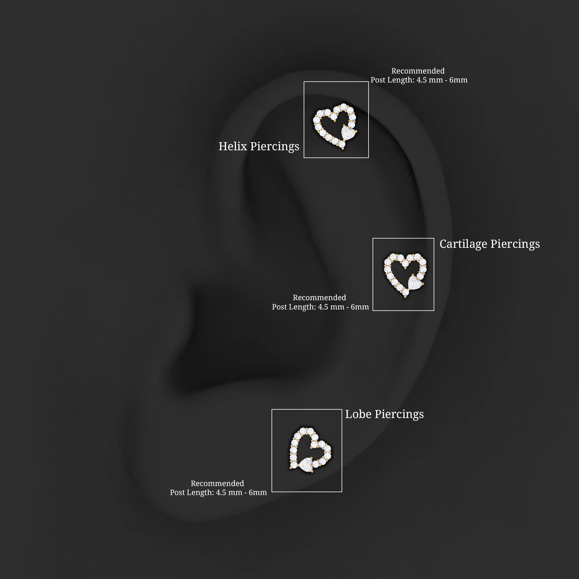 Get this forever fashionable, Moissanite Gold Heart Cartilage Earring adorned with Heart and Round Shape Moissanite assembled in a cute heart design. This Heart Earring can be worn on your Tragus, Helix, Cartilage, or Upper Lobe Piercing. Amaze your loved one with this Cute Earring and wait for her priceless reaction.