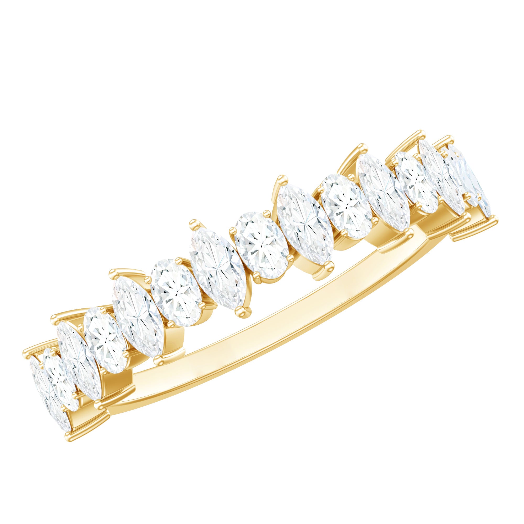 Elegant and full of sparkle, this Moissanite Band Ring is designed to reflect beauty, love, and timeless style. Perfect for celebrating life’s special moments, it makes a thoughtful gift for the one who means everything to you. The Half Eternity Wedding Ring features an eye-catching pattern of alternating oval and marquise shaped moissanite stones, all carefully set in secure prong setting across the front half of the band. Each D-VS1 quality moissanite is cut to shine brilliantly, offering a glow that mirrors the elegance of diamonds without the high cost. Whether you are wearing it on its own, with your engagement ring, or stacking it with other wedding bands, this Moissanite Eternity Ring adds a touch of brilliance that stands out. The half eternity style makes it ideal for everyday comfort, while still offering enough sparkle to shine on special occasions. Whether it is for a wedding, anniversary, birthday, or simply a moment you want to make memorable, this Moissanite Wedding Band is a beautiful reminder of love and connection. Carefully handcrafted with attention to detail, this Moissanite Stackable Ring comes in a lovely jewelry box, ready for gifting or safekeeping.