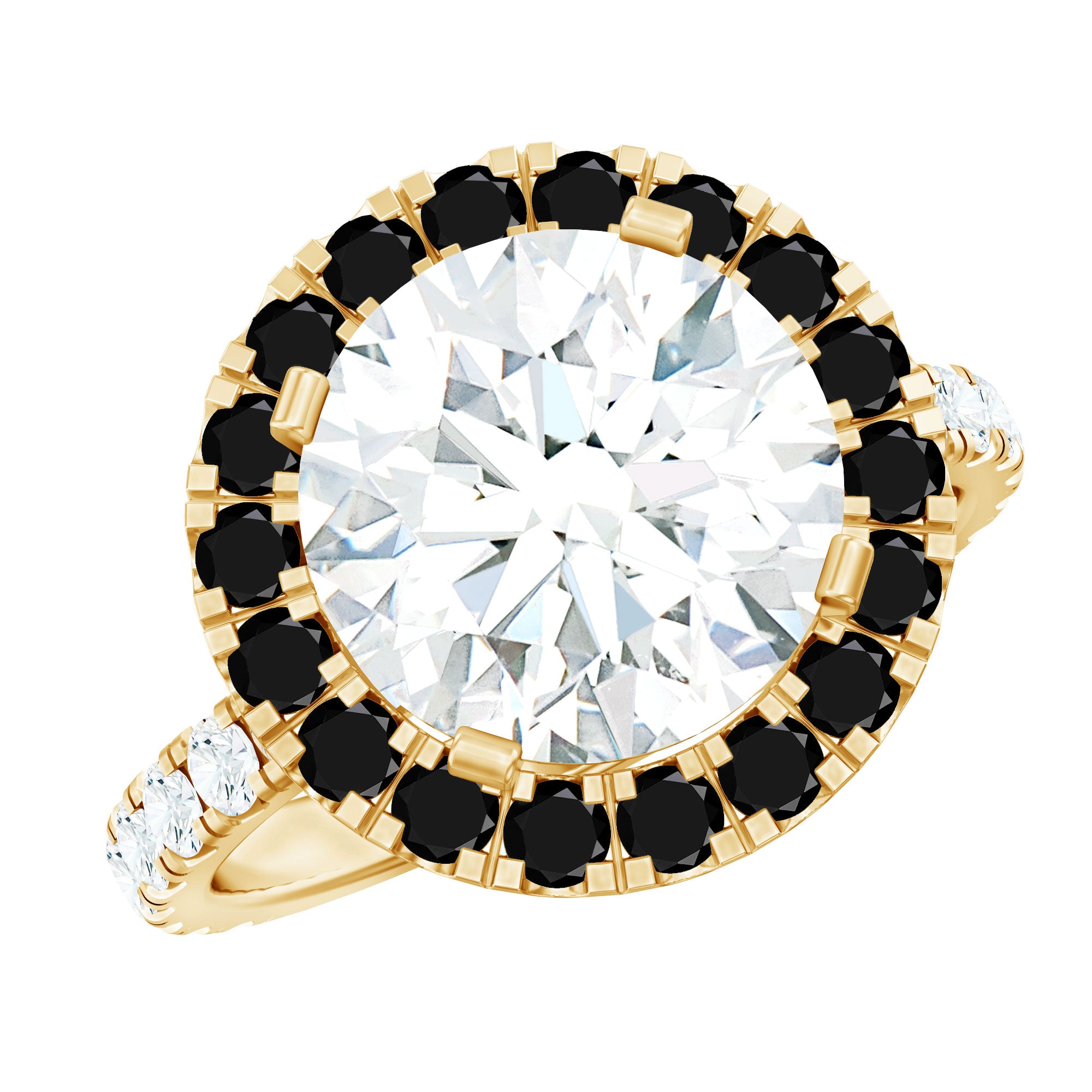 Certified 10 MM Moissanite Halo Engagement Ring With Lab Black Diamond