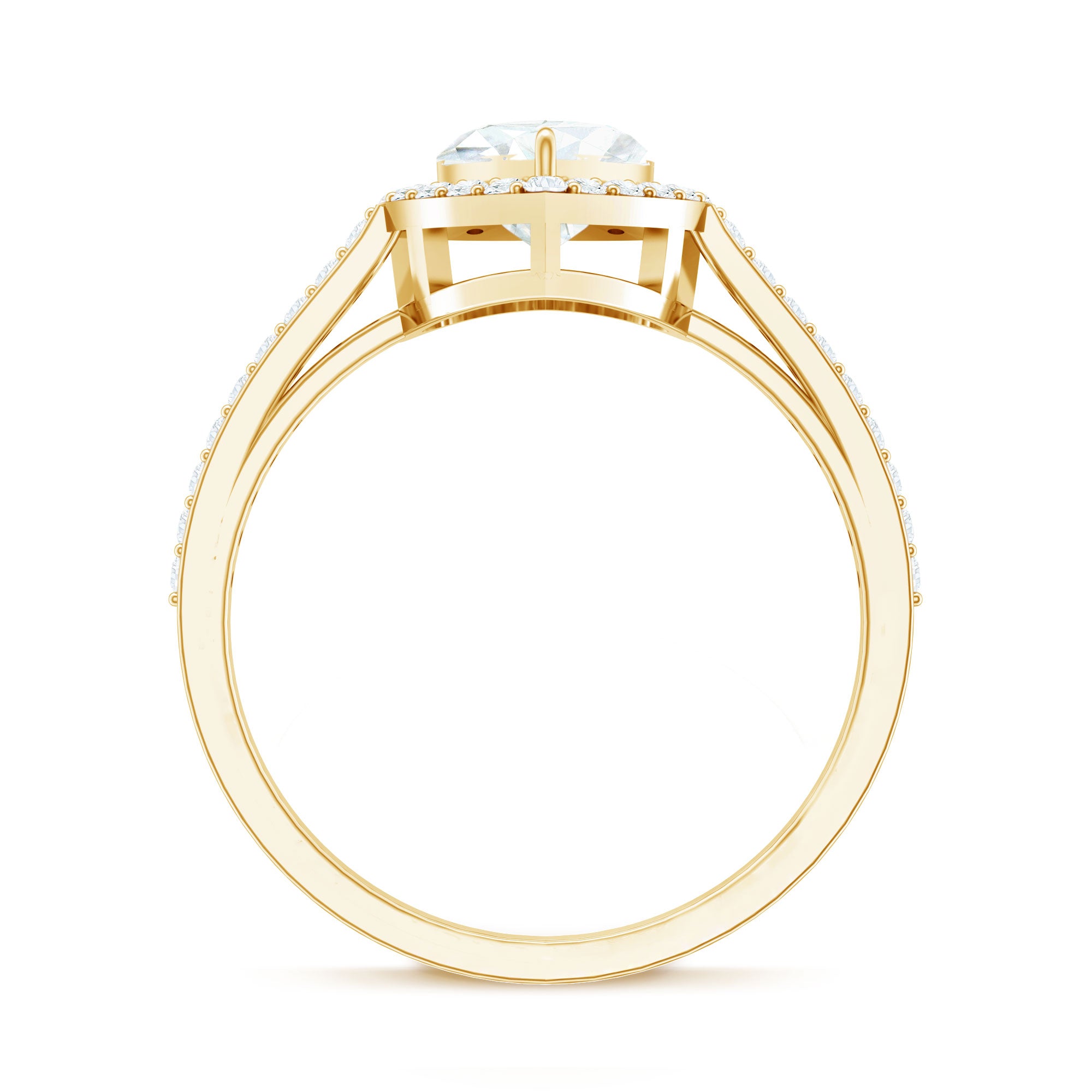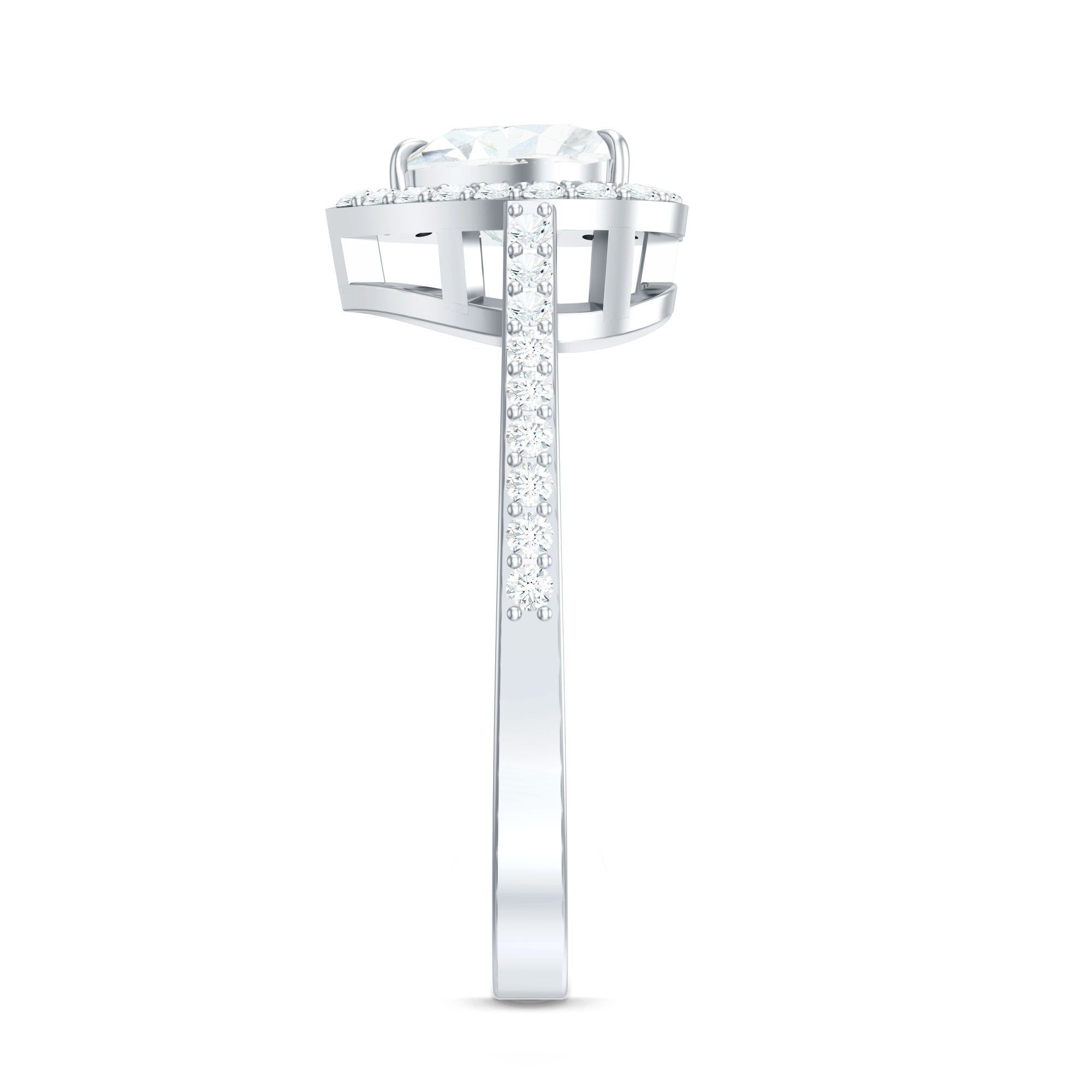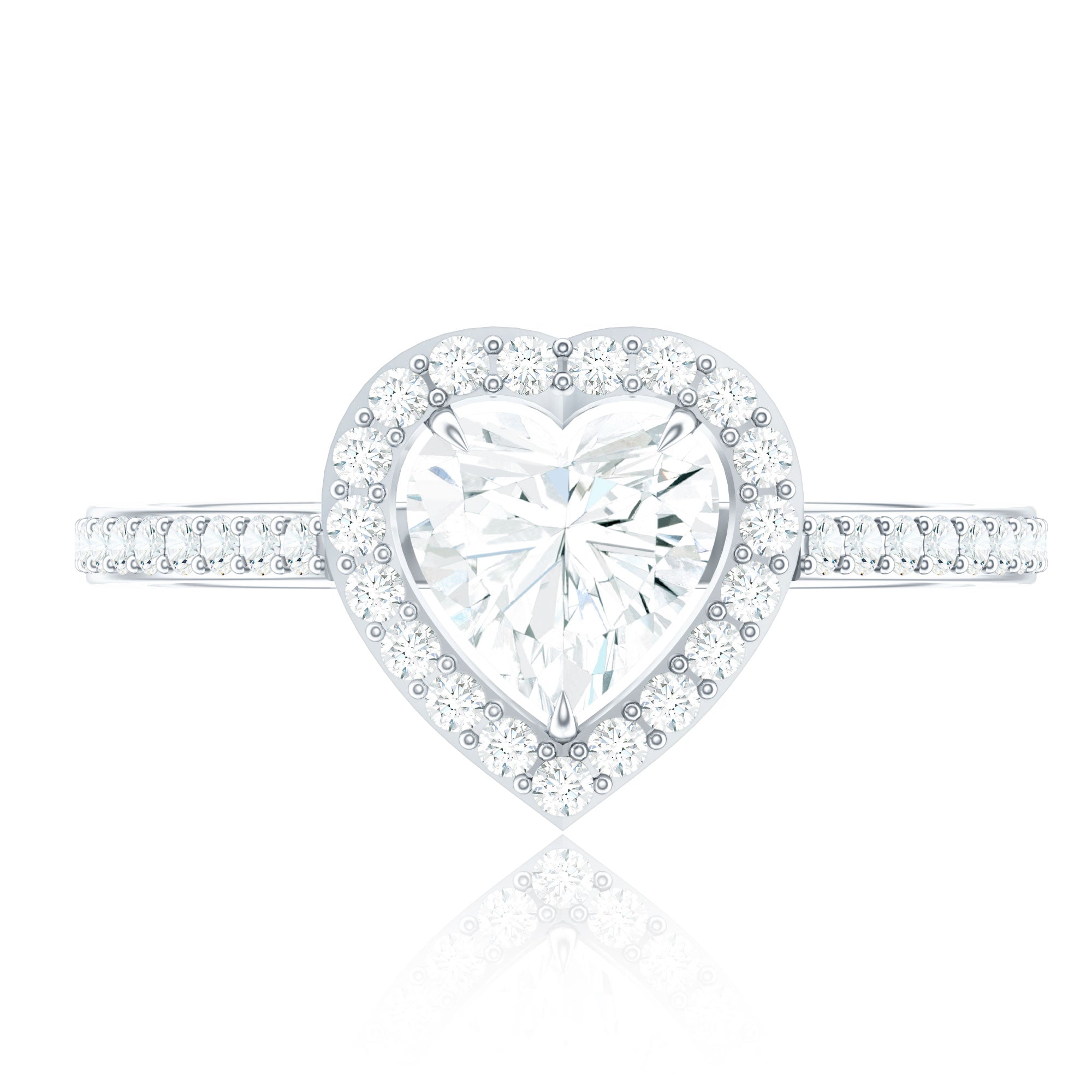 Take a look at this stunning Moissanite Engagement Ring that perfectly combines classic elegance with a modern flair. This Heart Engagement Ring symbolizes romance, designed to embody the essence of forever in one memorable piece. At the center of this captivating design is a 7 MM heart shaped moissanite set in claw setting and sparkling with brilliance, fire, and exceptional clarity. Its romantic shape is elegantly surrounded by a floating halo of delicate round moissanite stones, enhancing the shine of the center gem while providing a gentle, radiant sparkle from every angle. The band features a line of extra round moissanite gems, positioned to catch the light with every movement and add a graceful sparkle to her hand. This Heart Shaped Moissanite Ring is an ideal symbol of commitment for your one true love. Carefully crafted and thoughtfully designed, this Moissanite Halo Engagement Ring comes in various sizes to ensure a perfect, comfortable fit. Whether you are planning a magical proposal or marking a special occasion, this Moissanite Heart Ring is sure to make her heart skip a beat.