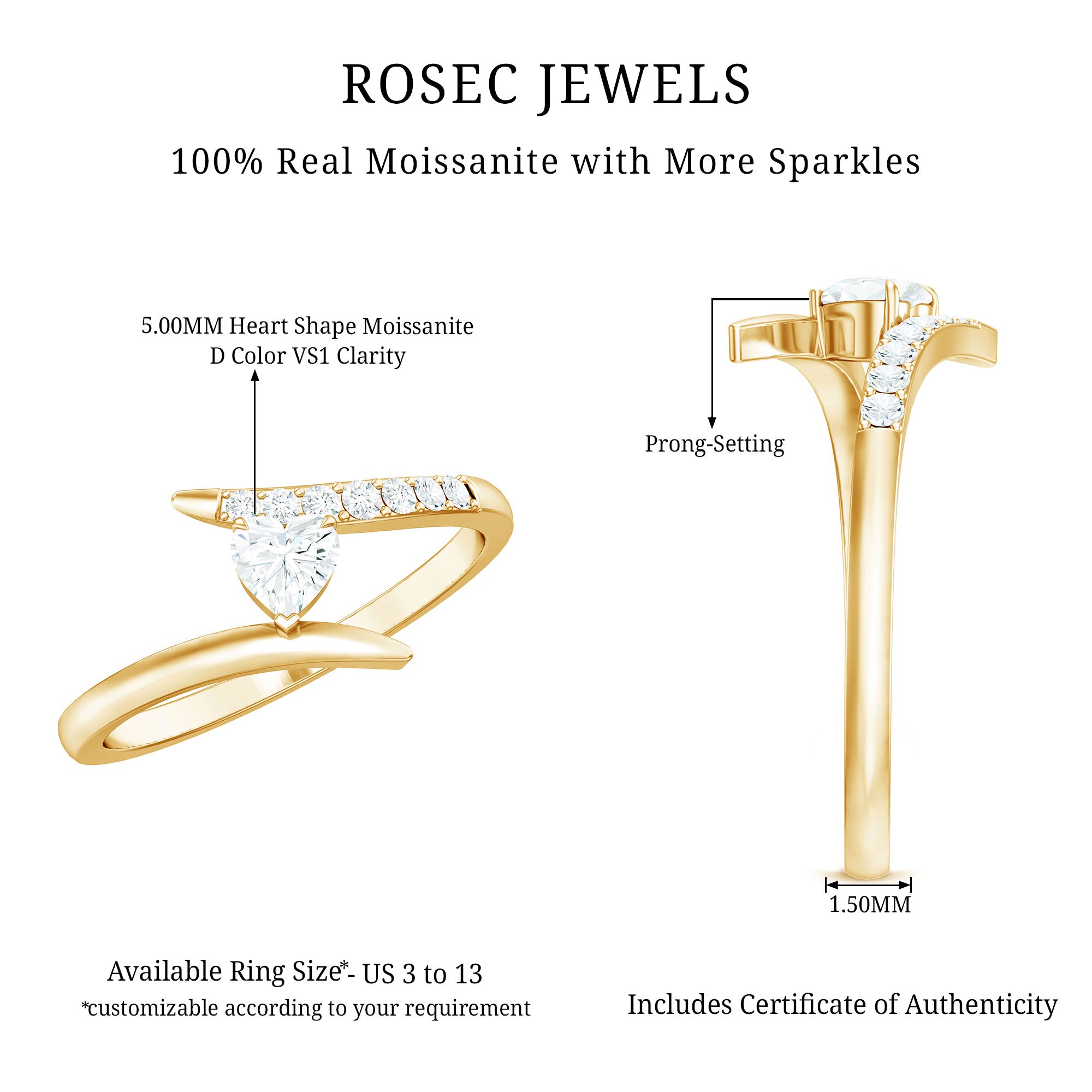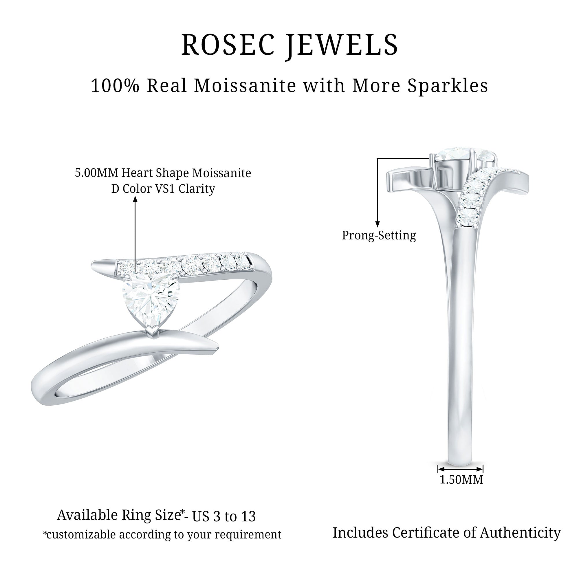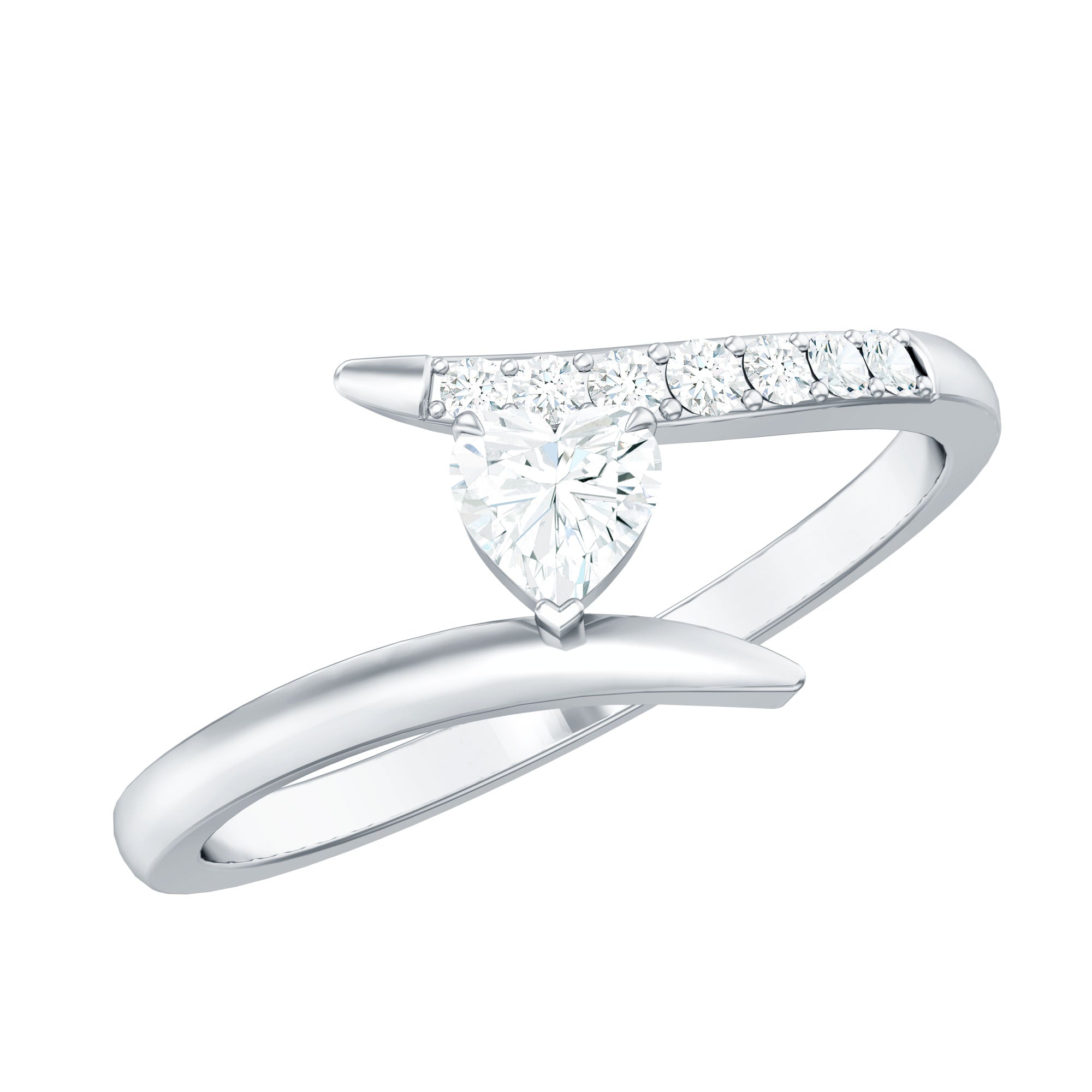 Certified Moissanite Heart Promise Ring in Bypass Shank