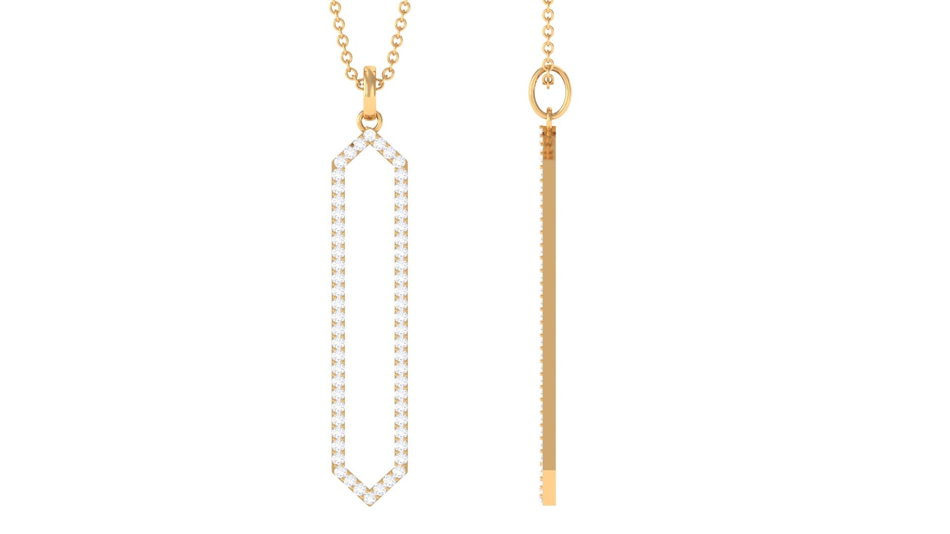 Make her heart skip a beat with this Geometric Pendant Necklace. Featuring Round Shape Moissanite in Pave Setting over a unique hexagon design. Crafted with Hallmarked Metal, this Moissanite Pendant is sure to give you the look you want when you will style it with your casual or special attires.