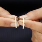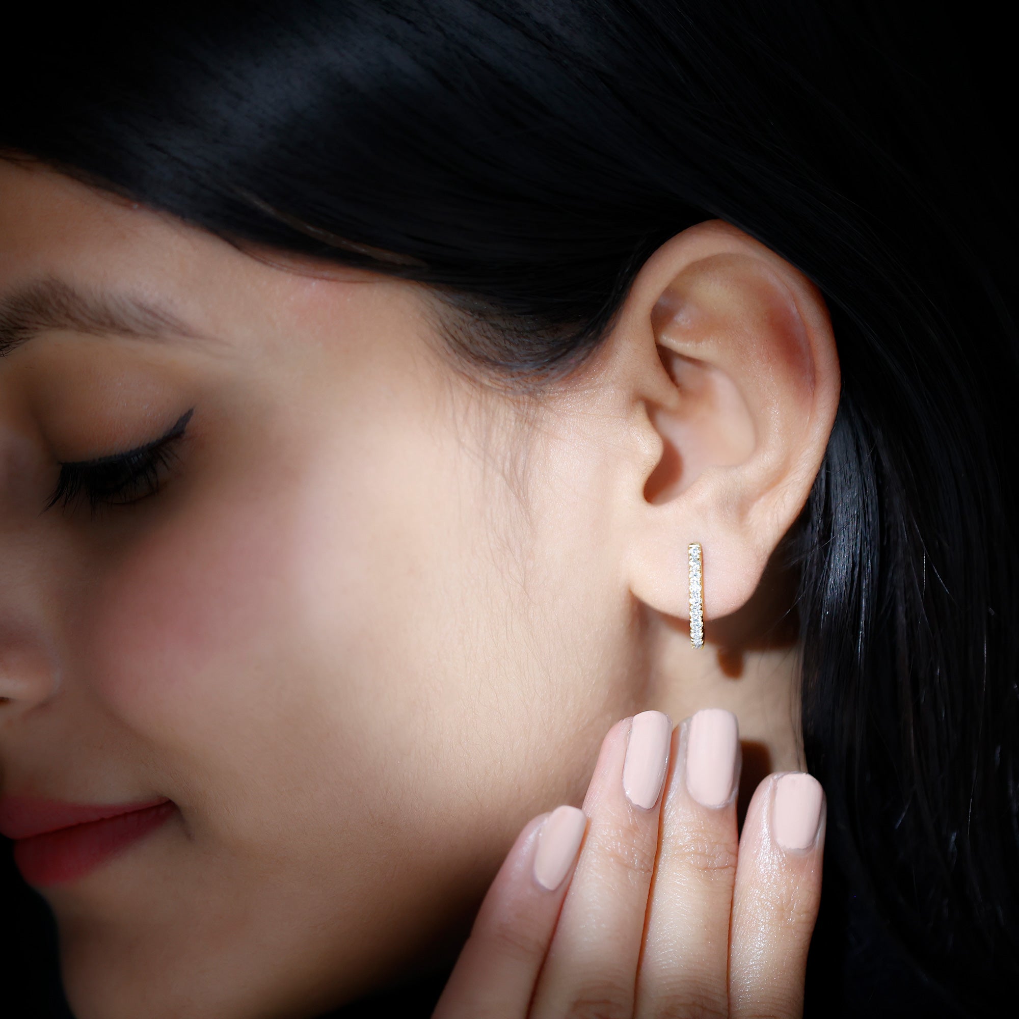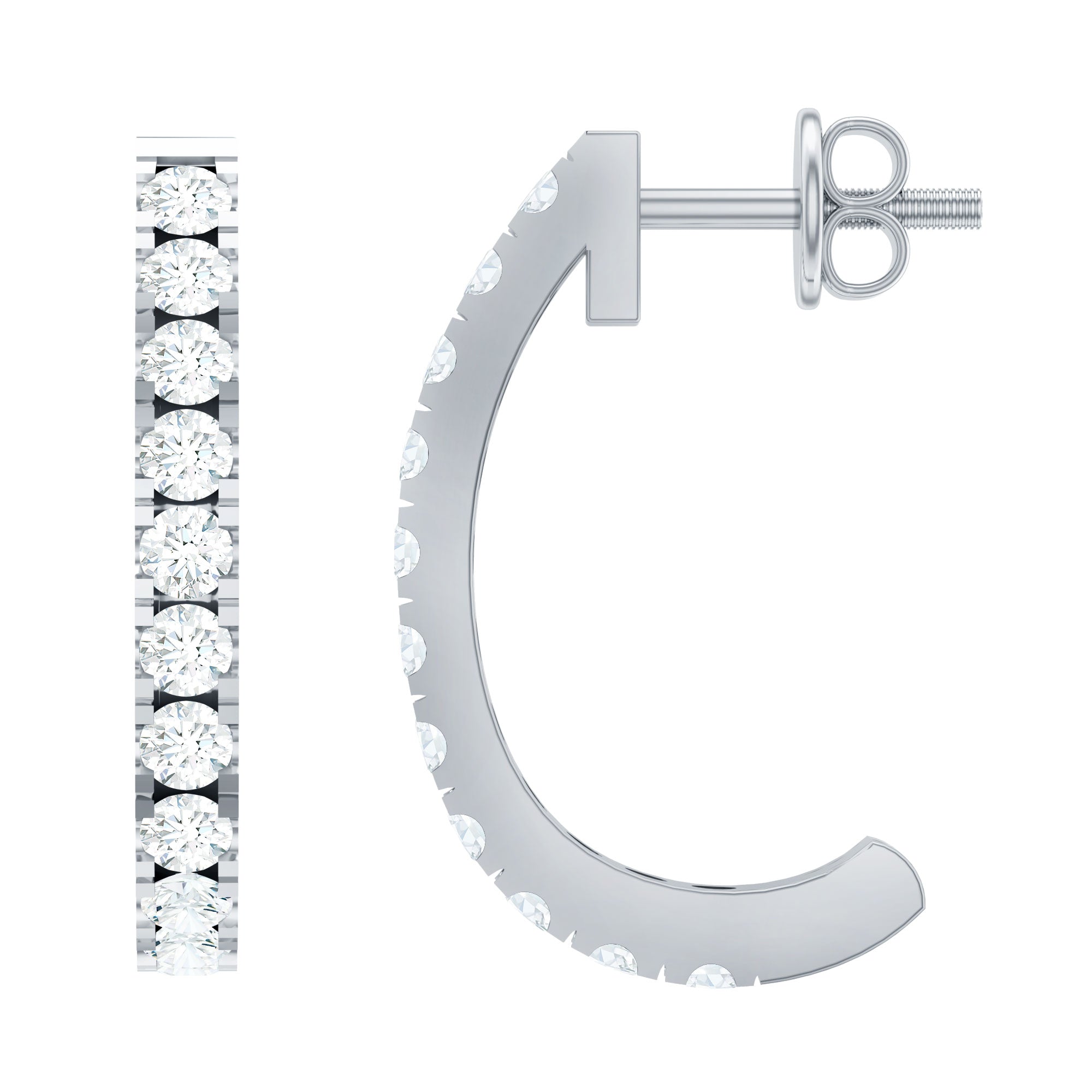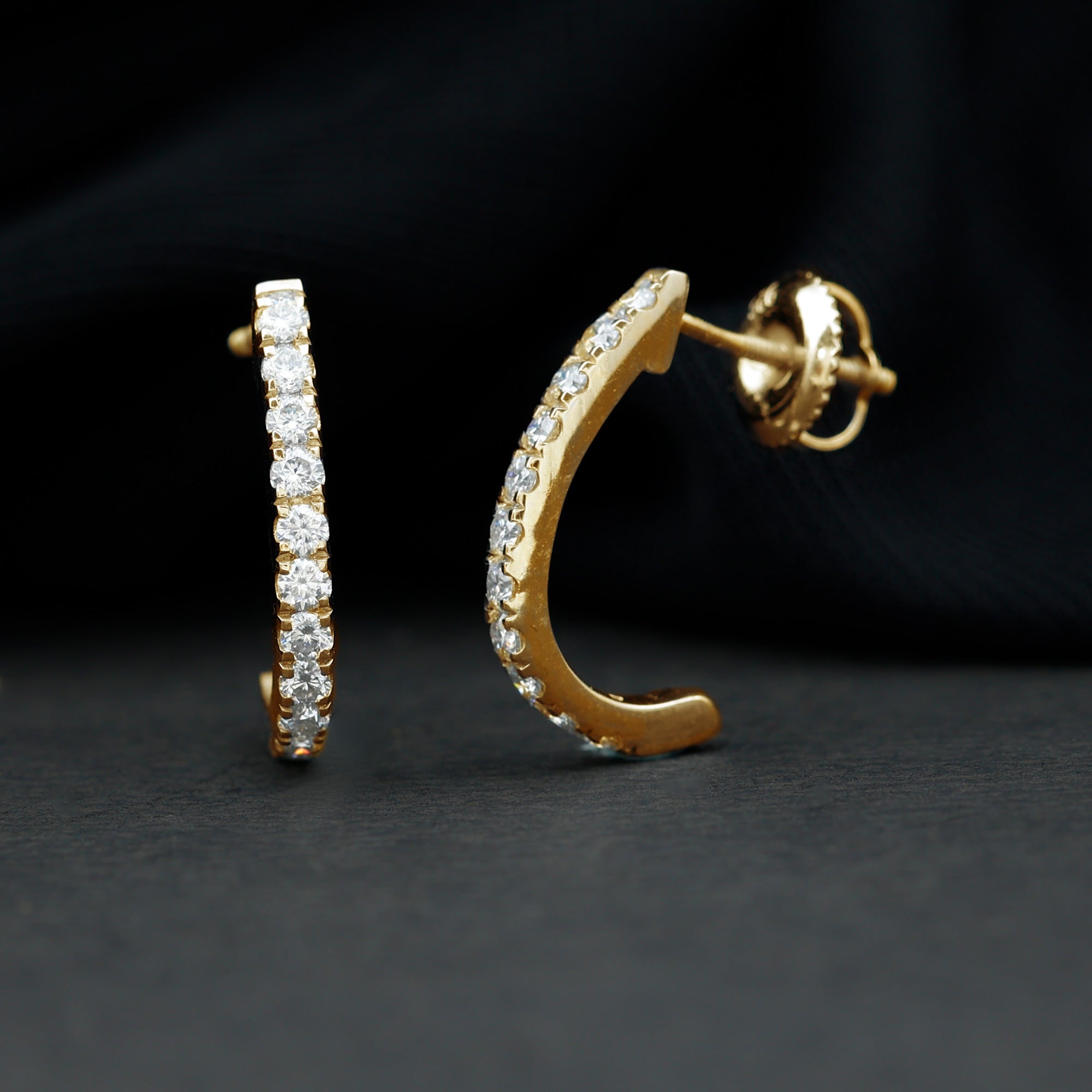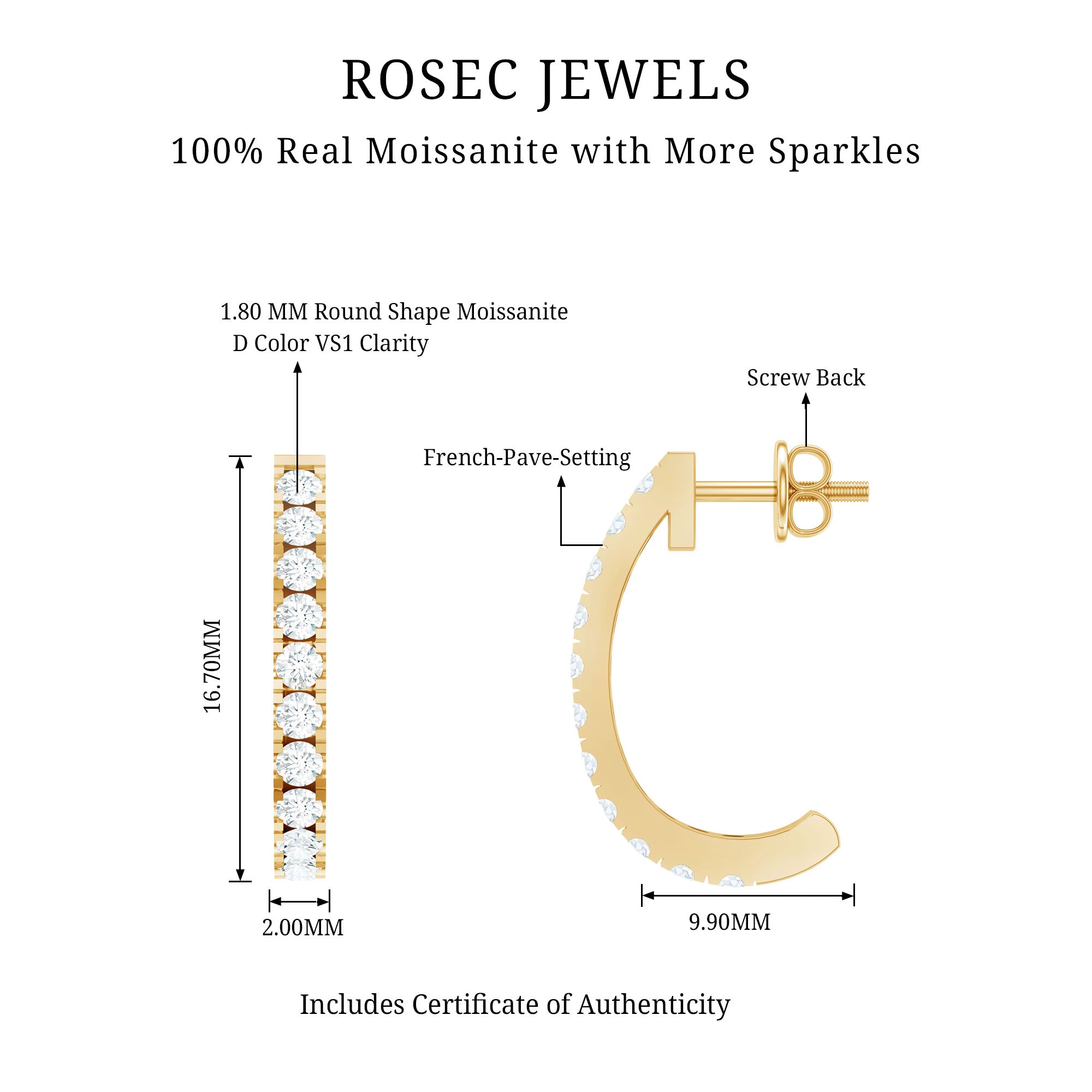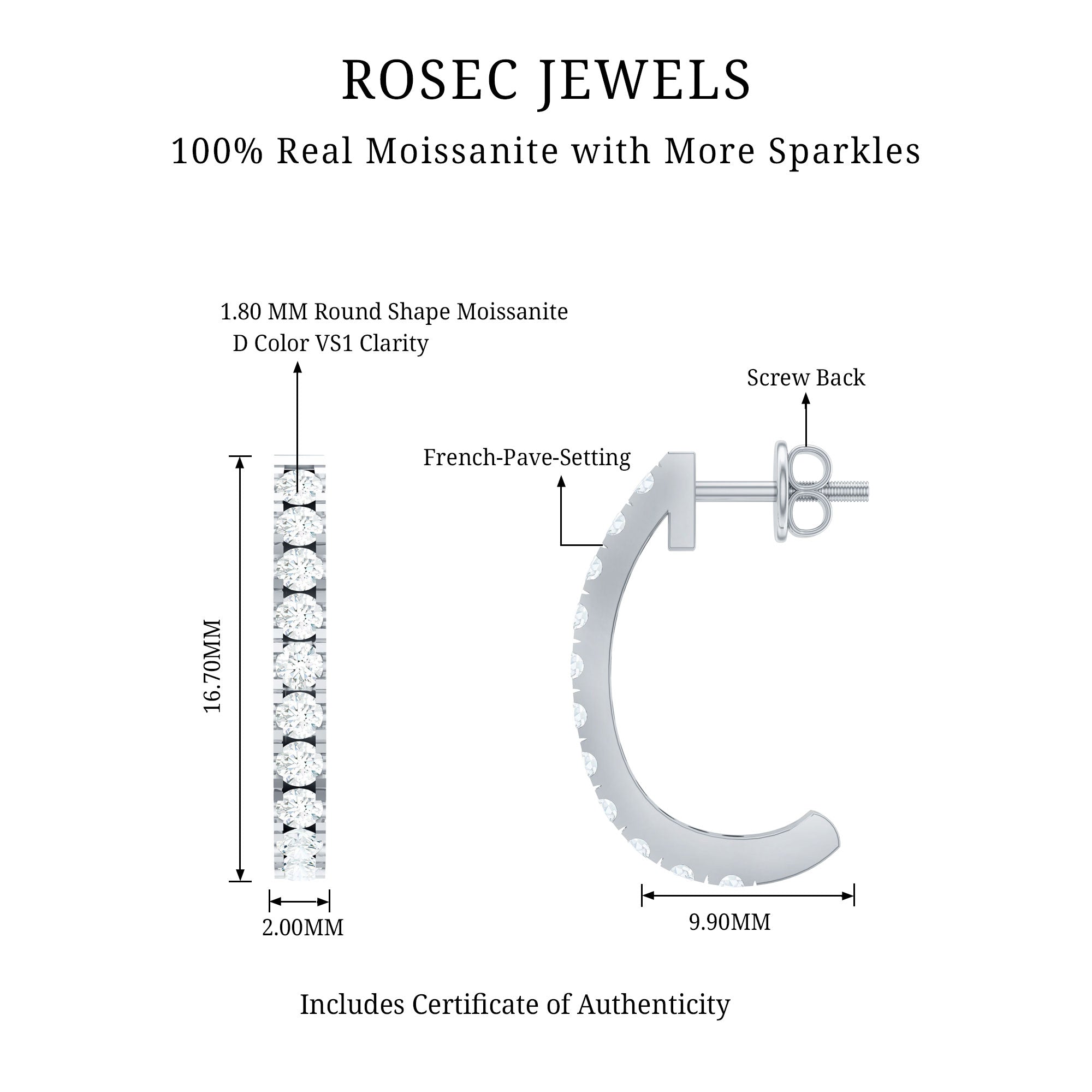 Rosec Jewels Half Hoop Earrings are a perfect blend of elegance and sparkle, designed to complement any outfit with effortless style. The J Hoop Earrings feature round cut moissanite stones set in French pave setting. Crafted with precision, this pair uses D-VS1 quality moissanites, ensuring exceptional clarity, shine, and long-lasting beauty. The screw back closure keeps the Moissanite Hoop Earrings secure and comfortable, making them ideal for all-day wear, whether at work, a casual outing, or a special event. Perfect as a thoughtful gift, these Moissanite Earrings for Women are suitable for mothers, wives, daughters, girlfriends, or friends who appreciate high-quality jewelry. This pair comes beautifully packaged in a jewelry box with a certificate of authenticity, making it ready to gift for birthdays, anniversaries, or any meaningful occasion. With their elegant design, dazzling sparkle, and versatile style, these Half Circle Earrings are a sophisticated accessory that adds a touch of luxury to any jewelry collection.