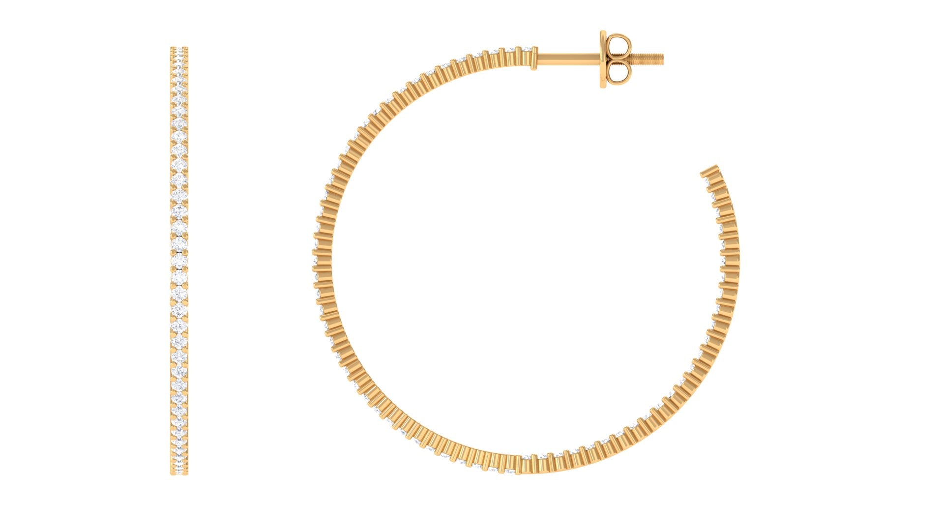 Adorn yourself in exquisite elegance with these Moissanite Hoop Earrings featuring dazzling Moissanite gemstones set in Flush Setting. Crafted with perfection, these Big Hoop Earrings exude timeless sophistication. The Screw Back Closure ensures a secure and comfortable fit, while the scintillating moissanite gemstones catch and reflect light with unparalleled brilliance. Elevate any ensemble with these glamorous Moissanite Earrings that effortlessly blend classic style with modern allure.
