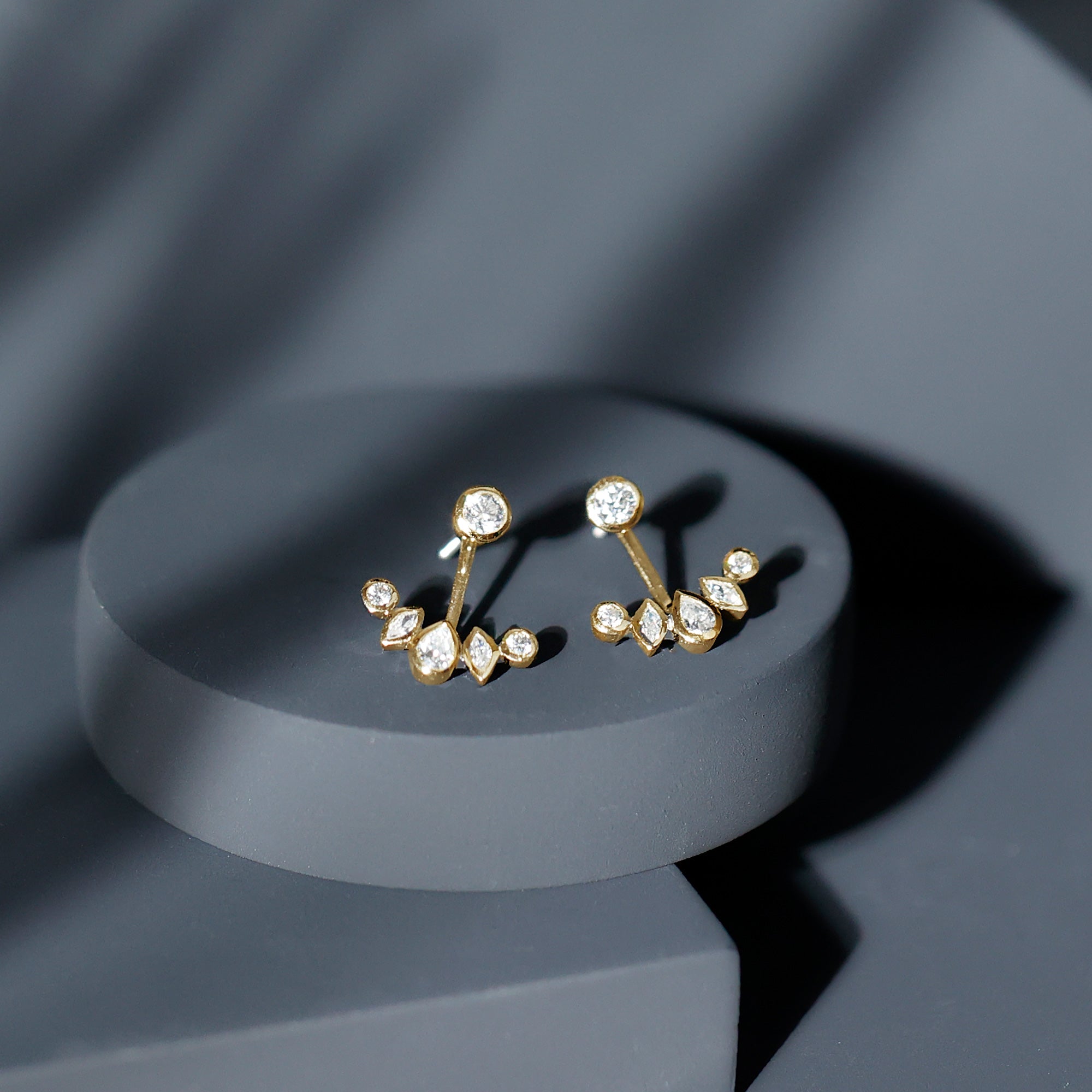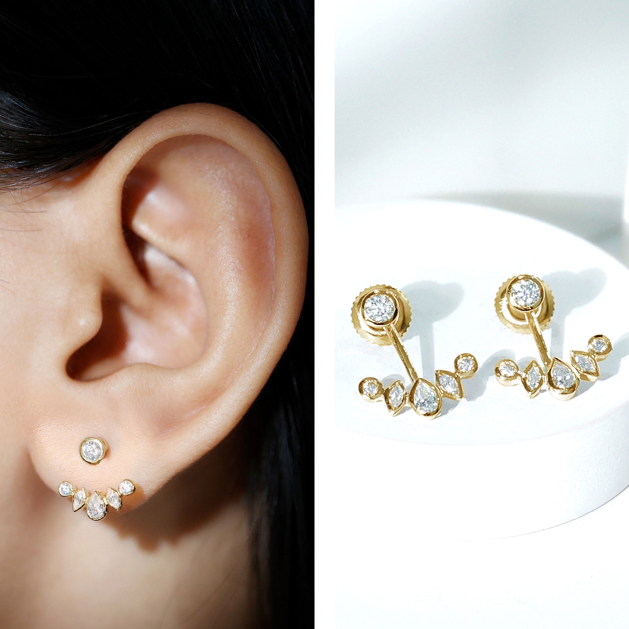 Complement your style with these shimmering Moissanite Jacket Earrings, designed to bring a luxurious touch of sparkle to every moment. Crafted in Yellow Gold Plated Silver, these Fine Earrings feature a versatile two piece design, a brilliant Round Moissanite Stud paired with a dazzling Jacket adorned with Pear, Marquise and Round Shaped Moissanite stones set in Bezel Setting. Together, they create a breathtaking piece of jewelry that catches every angle, giving you a look that feels modern, elegant and effortlessly eye-catching. Whether worn with the jacket for a bold, glamorous statement or as simple studs for a more minimal vibe, these Ear Jacket Earrings adapt beautifully to any outfit or occasion. The secure Screw Back Closure ensures both comfort and confidence, letting you sparkle worry-free from day to night. Packaged in a charming jewelry box, these Bezel Set Earrings make a heartfelt gift for Christmas, birthdays, anniversaries or any special moment where you want to celebrate someone with timeless shine. These Moissanite Diamond Earrings are the perfect finishing touch that elevates your style with radiant beauty and endless versatility.