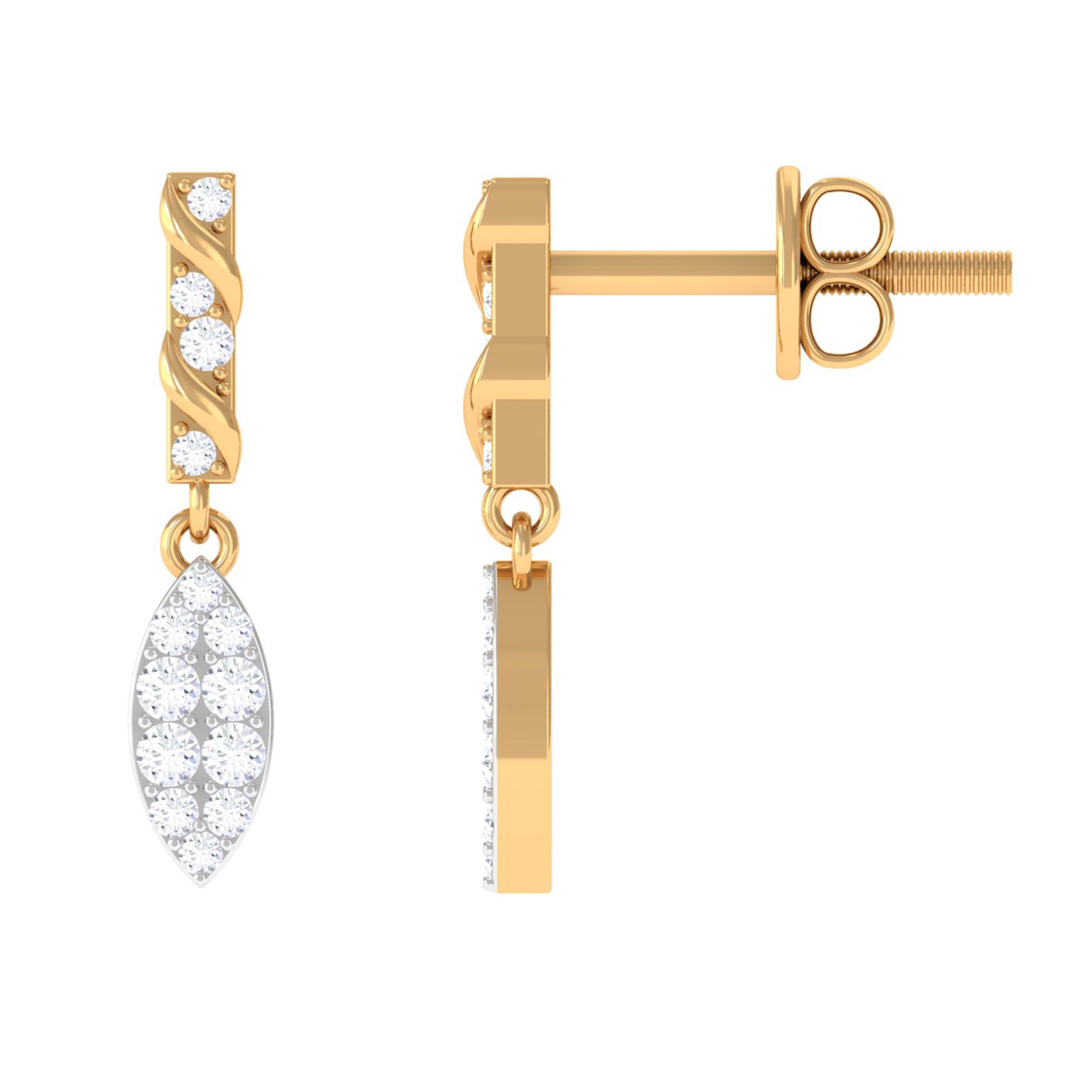 Add some dazzle to your days with these Sparkling Moissanite Leaf Dangle Earrings. These Moissanite earrings feature a dangle pattern adorned with round Moissanite in an illusion setting, and secured with a screw back. Crafted from solid gold, these Moissanite drop earrings radiate a brilliant sparkle that will enhance your appearance and catch the eye of those around you. Make a statement with these exquisite drop earrings that are sure to bedazzle any outfit.