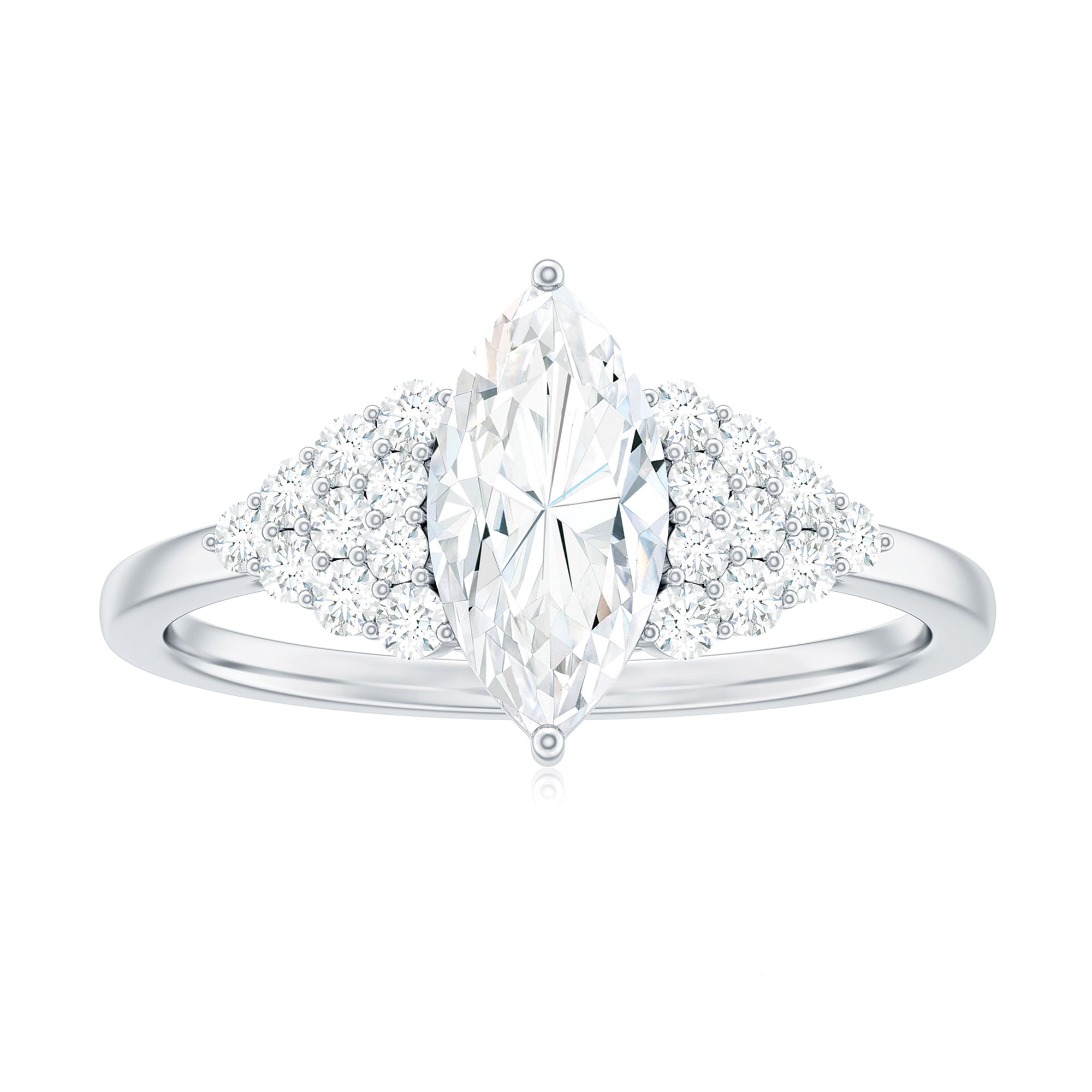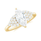 Discover the allure of enduring elegance with this Moissanite Engagement Ring, a design that radiates sophistication and uniqueness. At the heart of this enchanting piece is a 5X10 MM marquise cut moissanite of D-VS1 quality, securely set in a prong setting. The exquisite arrangement of cluster side stones is elegantly positioned along the shoulders, imparting a distinctive flair to the Designer Engagement Ring. Meticulously handcrafted, this Marquise Cut Engagement Ring is tailored for the contemporary bride who values the blend of traditional elements with a striking, modern twist. Ideal for engagements, anniversaries, or any memorable occasion, it transcends mere jewelry, becoming a timeless heirloom in the making. Beautifully presented in a signature jewelry box, this Statement Ring is poised to commemorate your most treasured moments with grace and brilliance. A tribute to clarity, artistry, and everlasting beauty, this Marquise Moissanite Ring serves as a sophisticated representation of your love story—bold, radiant, and eternally one-of-a-kind.