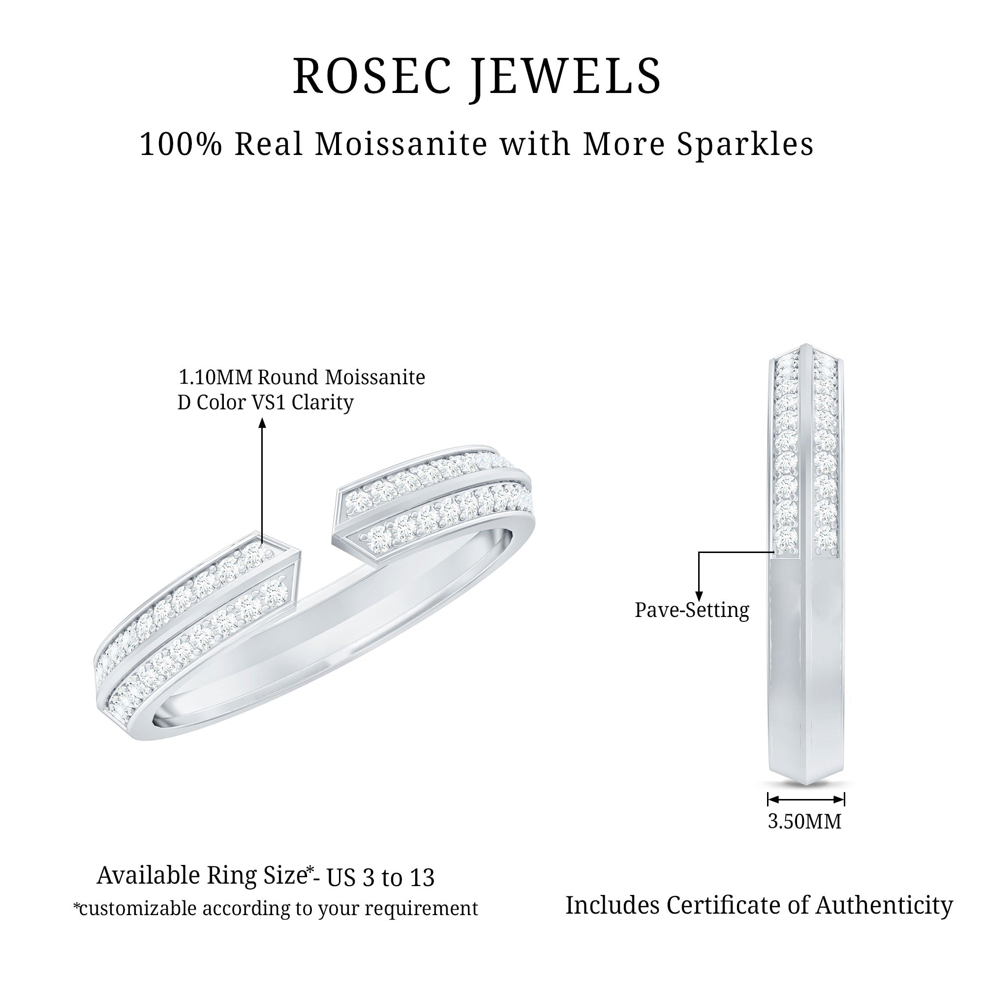 This Moissanite Cuff Ring is a beautiful reminder that true beauty lies in being unique. Designed with a stylish open-ended band, this Open Cuff Ring features two rows of sparkling round cut moissanite stones set in safe pave setting. At both ends of the cuff, arrow-shaped tips point toward each other, adding a bold and modern touch. Whether you are celebrating an anniversary, wedding, or simply want to give a meaningful gift, this Moissanite Ring Guard makes a thoughtful and lasting choice. Its elegant design allows it to be worn alone for a minimal look or stacked with other rings for a more personal, layered style. Crafted with care, this Moissanite Stackable Ring comes with a certificate of authenticity and is presented in a signature jewelry box, perfect for gifting or safe storage. The moissanite stones offer brilliant sparkle with D color and VS1 clarity, making this Wrap Ring shine bright in any light. You can customize it by choosing your preferred metal type and color from the available options, so it suits your style perfectly. Available in US sizes 3 to 13, it is designed to fit comfortably and look beautiful on any finger. This Open Wedding Ring is a piece that tells your story.