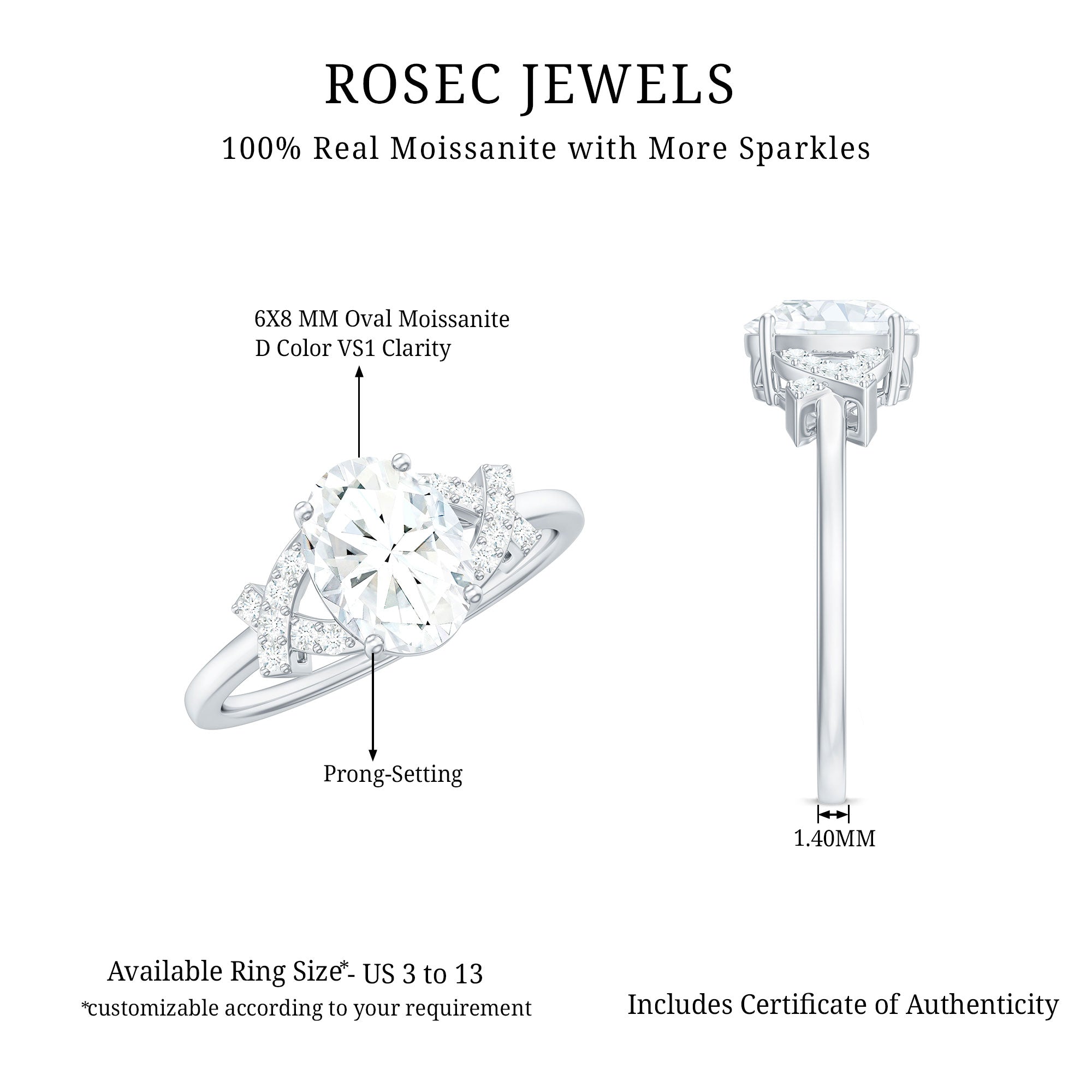 Certified Moissanite Oval Engagement Ring in Split Shank