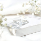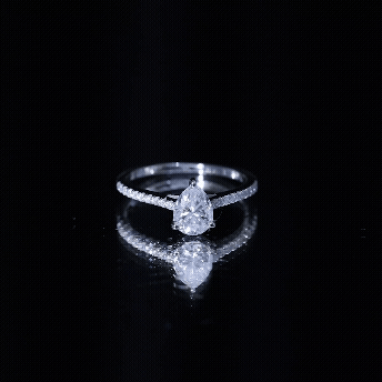 Looking for a perfect ring for her, we have your back with this Moissanite Engagement Ring. This is crafted with 14K White Gold Plated Silver and embedded with 6X8 MM Pear Shape Moissanite securely placed in Prong Setting along with the side stones. This Cathedral Setting Ring reflects the adorable shine of D-VS1 Quality Moissanite making it a perfect dazzler for the occasion. This Teardrop Engagement Ring is precisely crafted for special day of your beloved. The ring will be delivered to you in premium quality packaging with the certificate of authenticity.