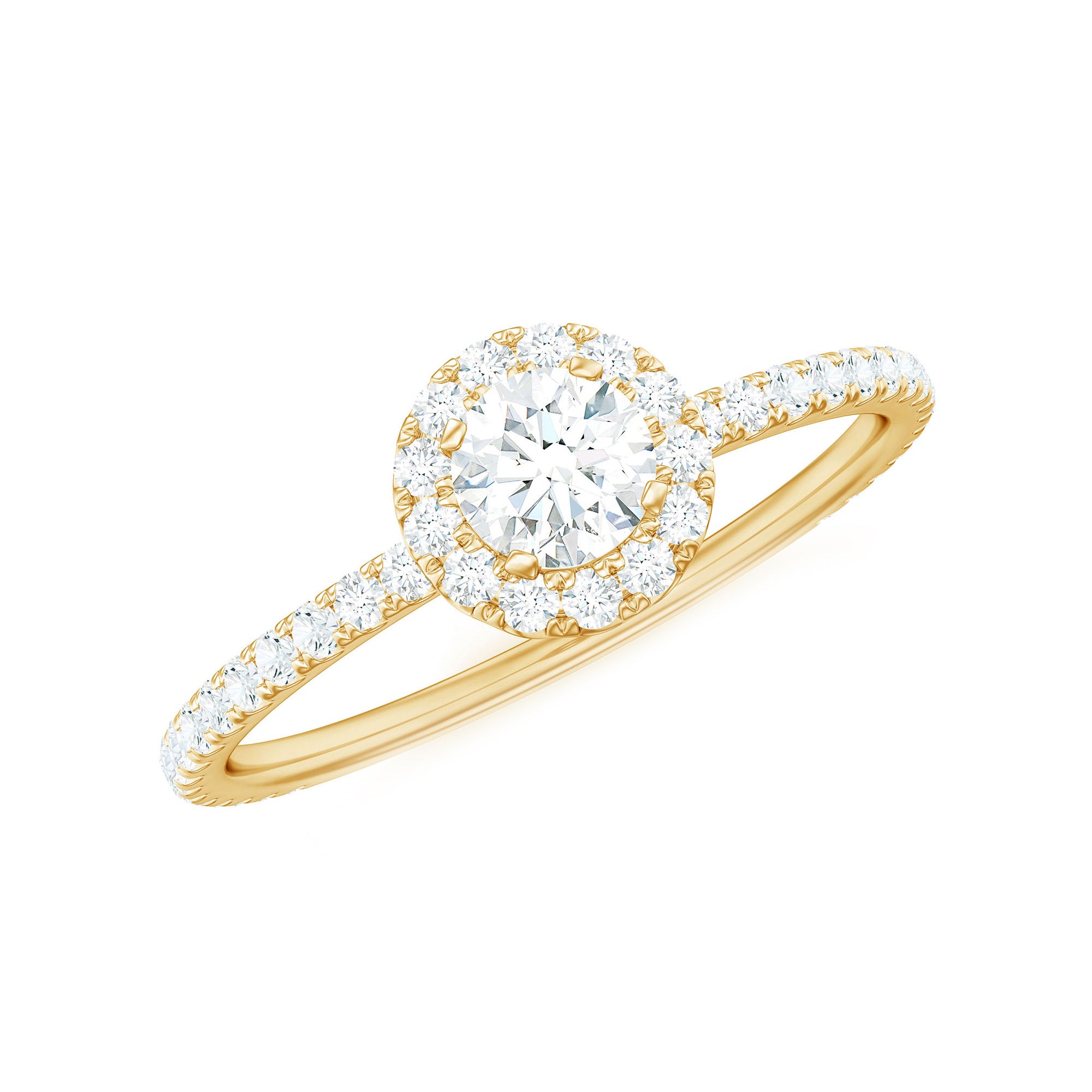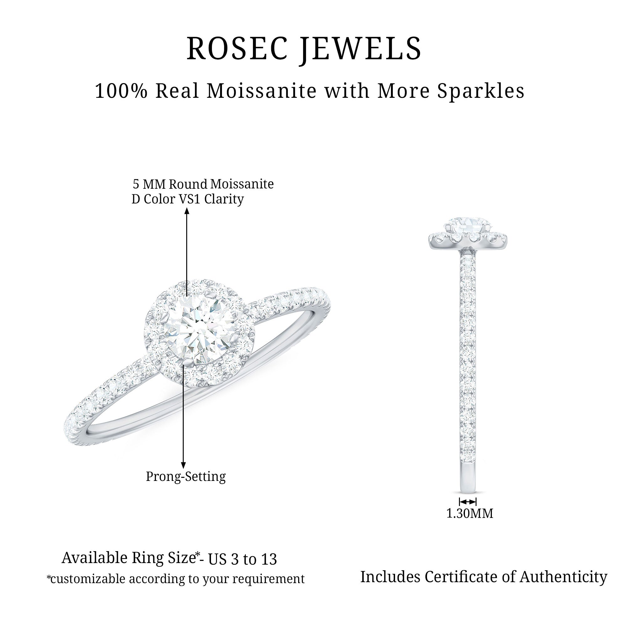 Add a little sparkle and meaning to her day with this charming Moissanite Promise Ring. At the center shines a 5 MM round Moissanite, radiating brilliance with D-VS1 quality for stunning clarity and shine. Surrounding the main stone is a delicate Moissanite halo that accentuates its glow and creates a sparkle that catches the eye from every angle. The band is decorated with petite moissanites on each side, giving the Halo Engagement Ring a graceful, elegant look. Every stone is carefully set to ensure maximum sparkle and lasting beauty. Its timeless style suits any outfit and any occasion, whether it is a romantic gesture, a promise, or a thoughtful gift for someone dear. Crafted with attention to detail, this Moissanite Proposal Ring is a sparkling symbol of affection and devotion. This Pre Engagement Ring makes every moment special and leaves a lasting impression, expressing care and devotion without saying a word.