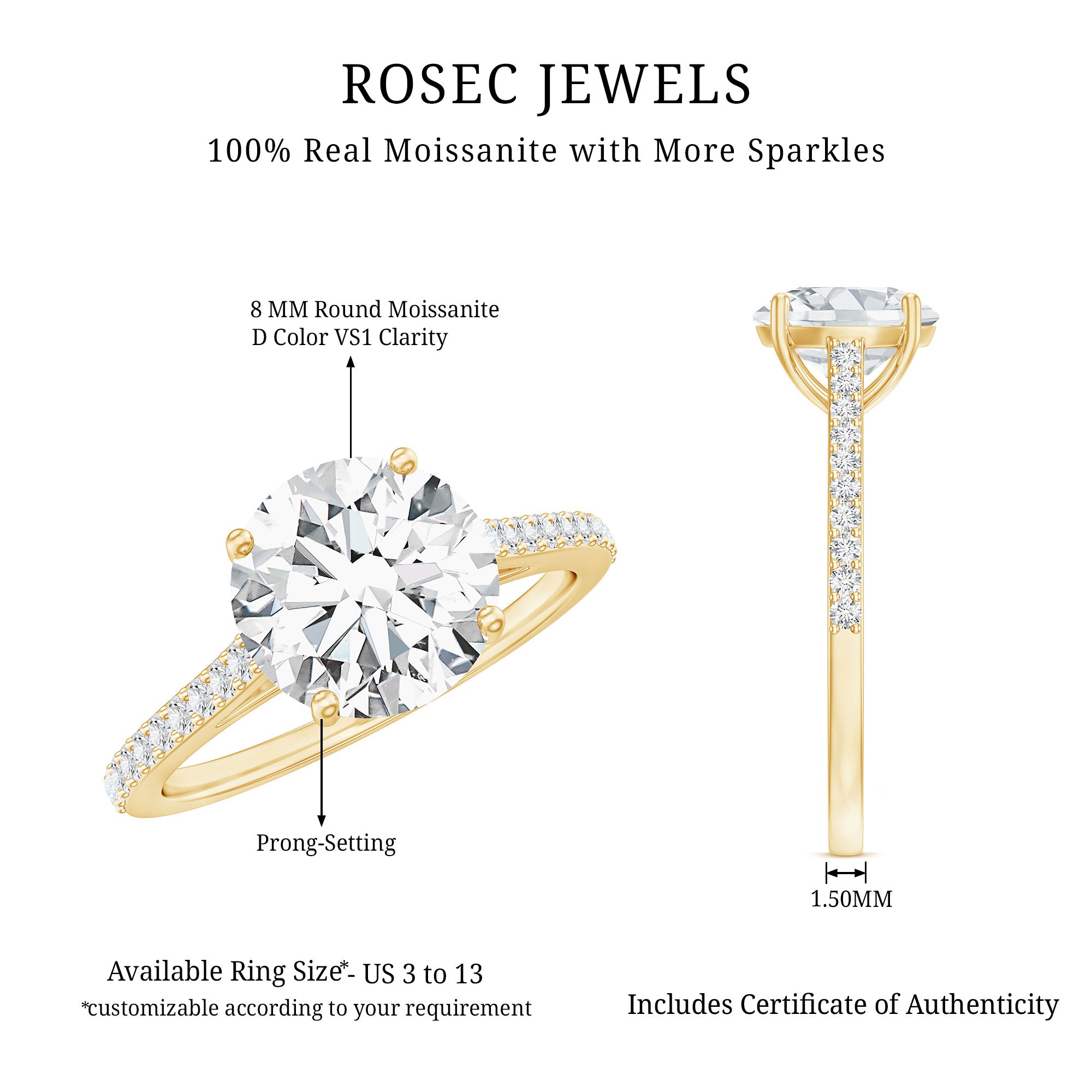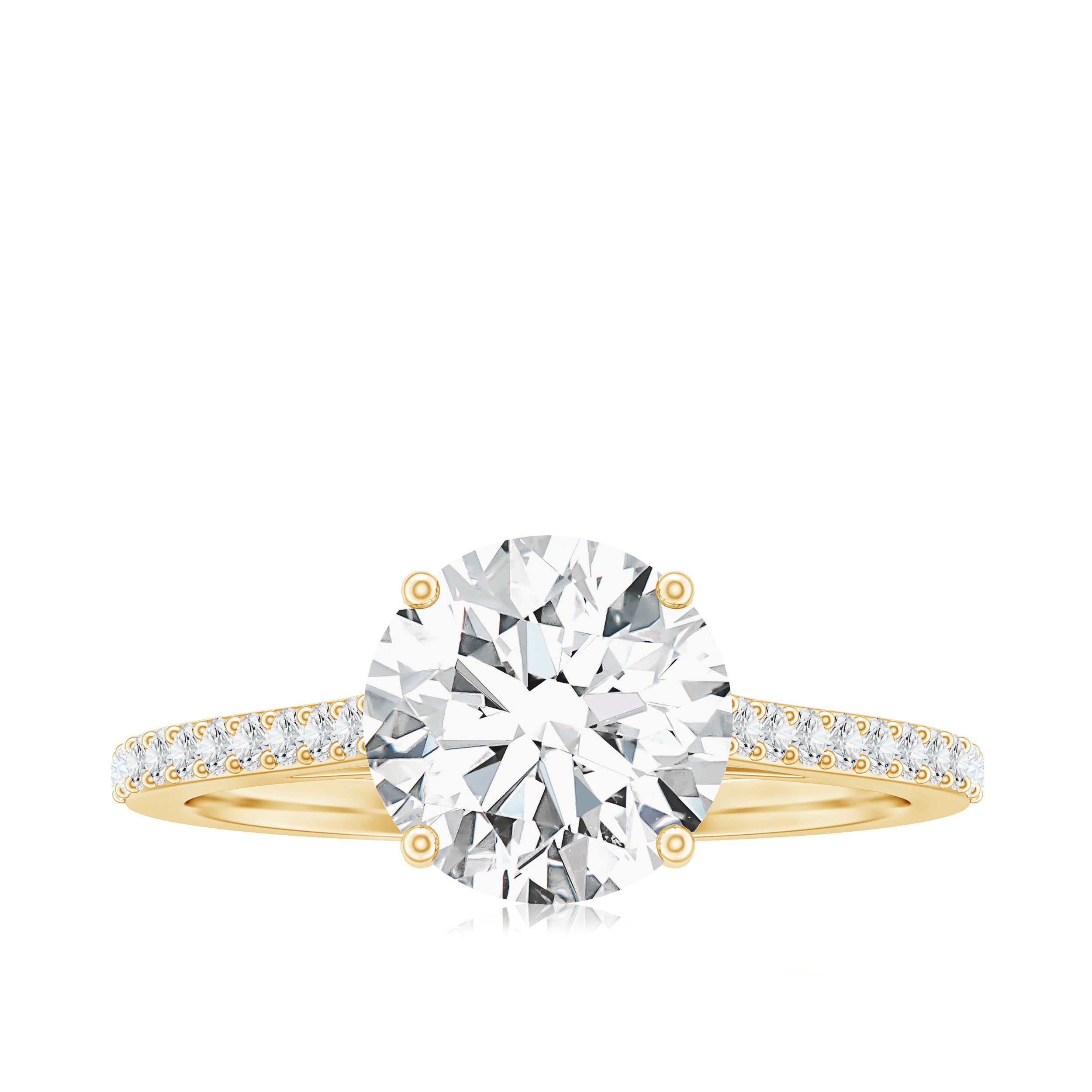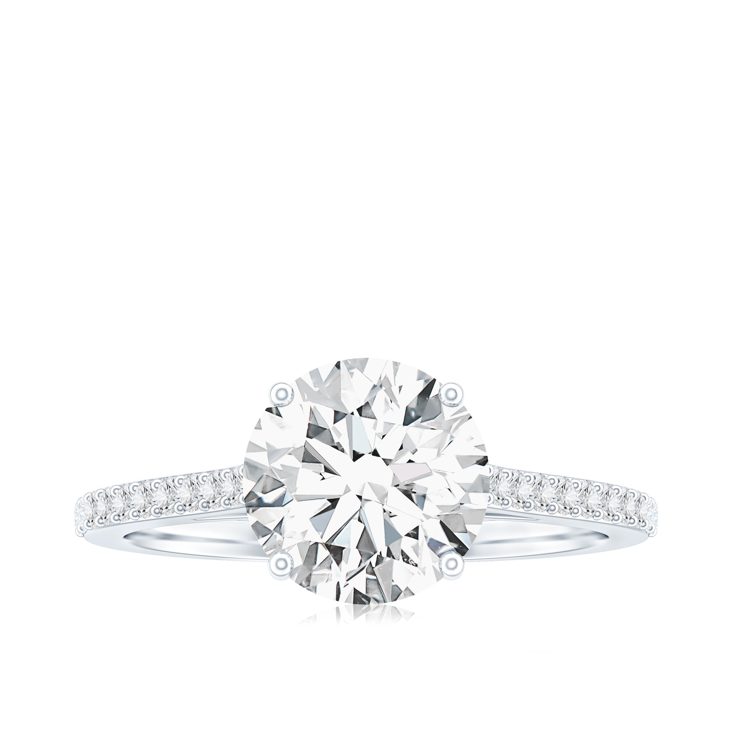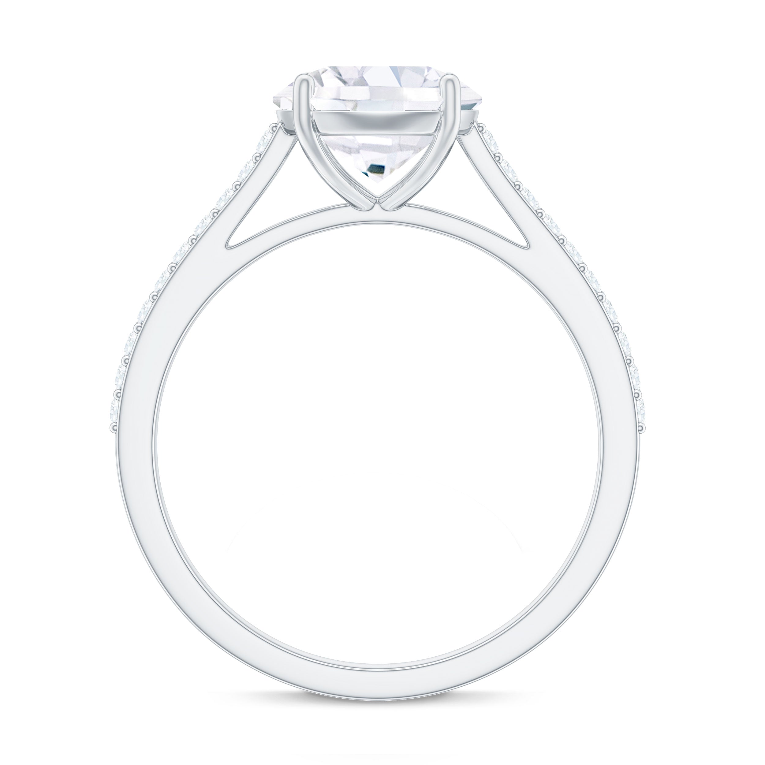 Certified Moissanite Round Cut Solitaire Ring with Side Stones